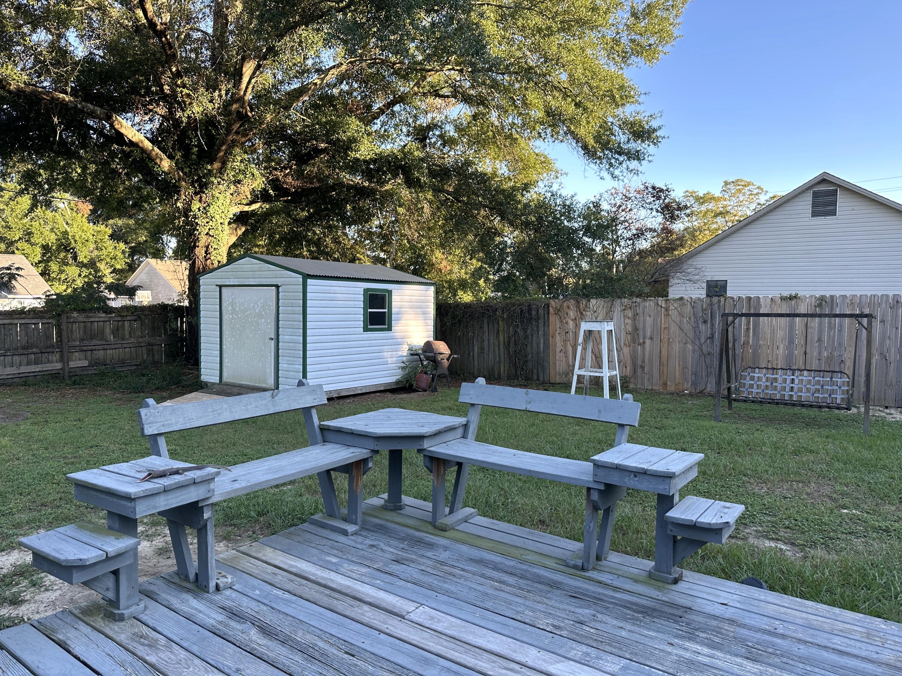 Move-in ready home on a corner lot with major updates completed. New AC (2022), water heater (2023), roof (2023), and new windows. The interior features new LVP flooring throughout with tile in the kitchen and bathrooms, plus a fresh coat of paint on walls, doors and trim. The hall bath features a new vanity and the primary suite includes a new walk-in shower, walk-in closet, and access to the backyard. The property sits on a corner lot with a large fenced backyard, deck, covered patio, and storage shed. A two-car garage provides additional convenience. Located in South Crestview, it offers quick access to I-10.