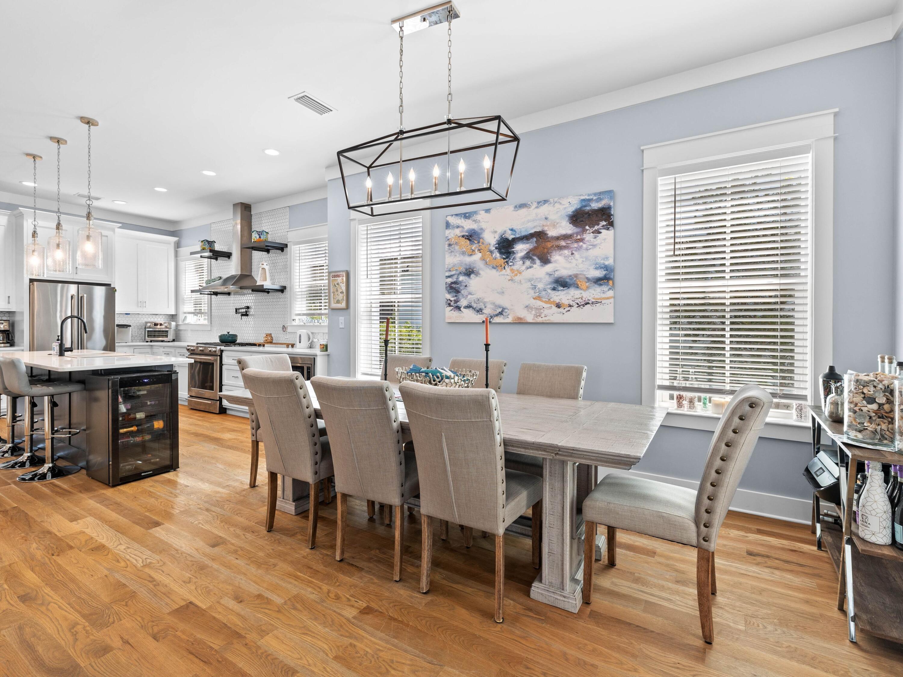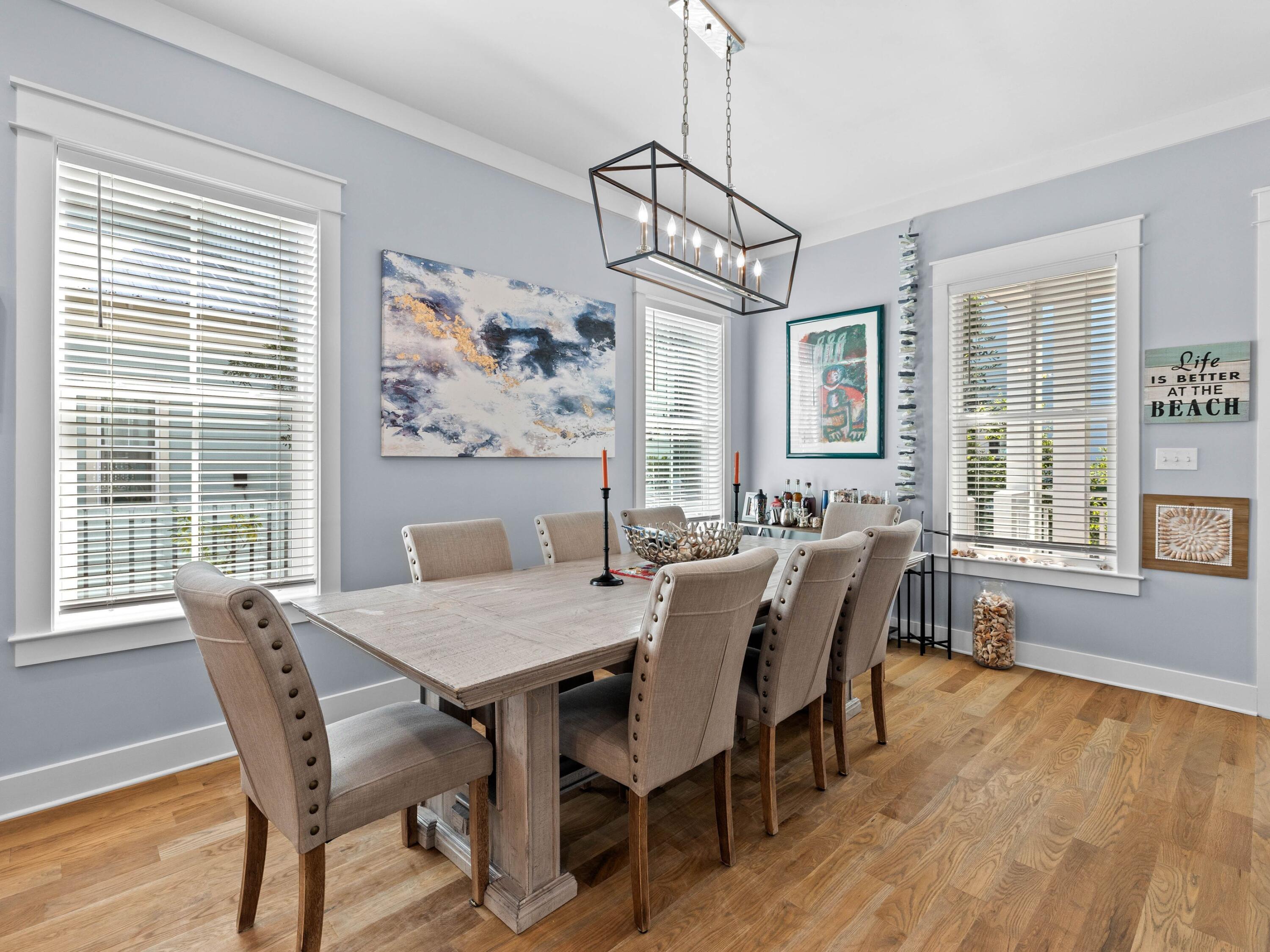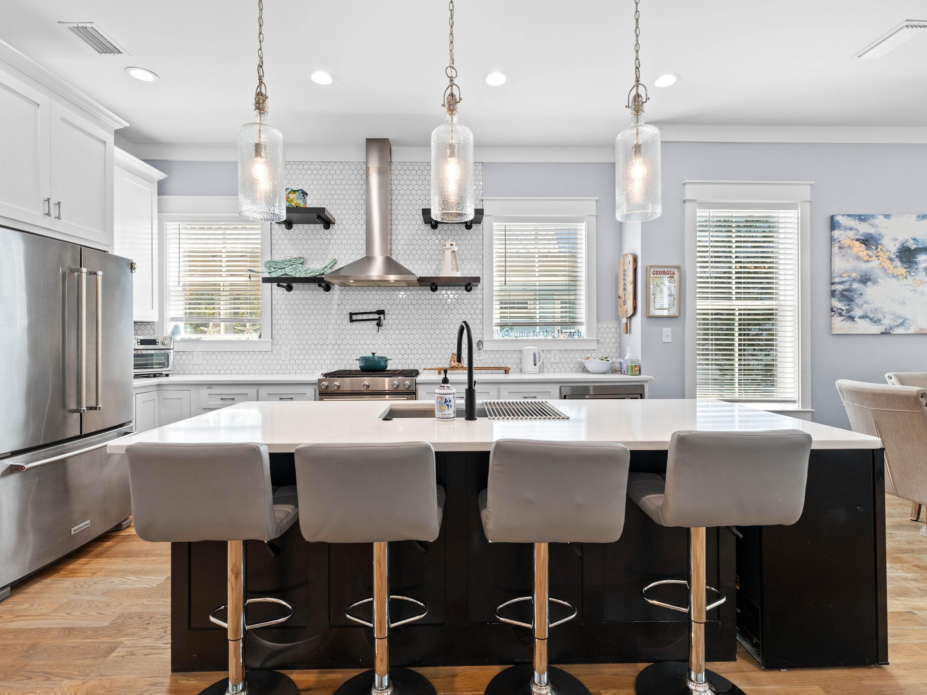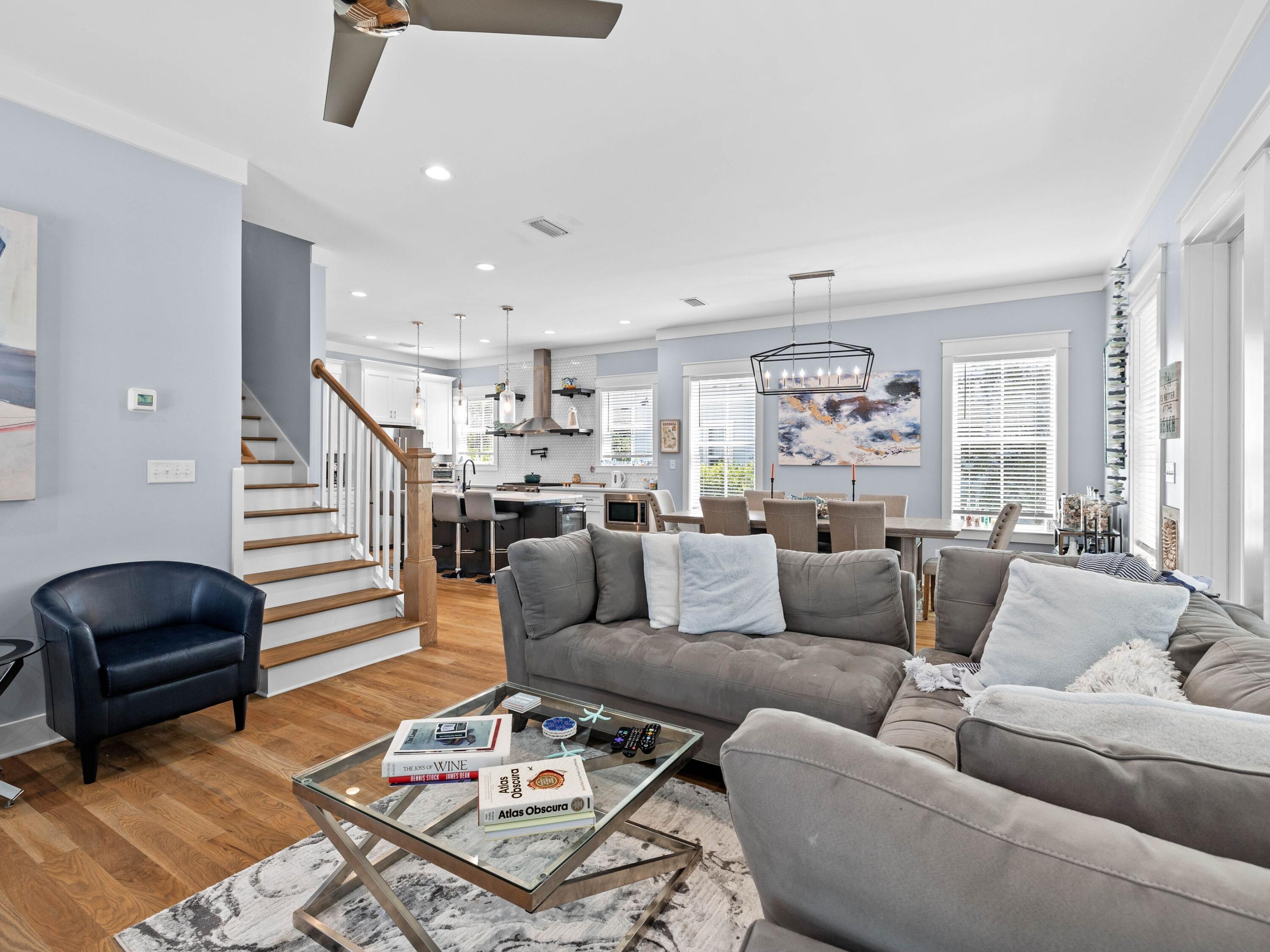 Welcome to your dream coastal retreat, nestled on a prime corner lot in the highly sought-after Seacrest Beach community. This stunning beach home, never rented and meticulously maintained by its original owners, offers the perfect blend of luxury, comfort and convenience. With four spacious porches, each equipped with misters and fans, this home is designed for outdoor living at its finest. This elegantly furnished property is ideal for a primary residence, vacation home or rental investment. Inside, you'll find exquisite fixtures and finishes, including polished hardwood floors and a gourmet kitchen with quartz countertops and high-end KitchenAid appliances. The open-concept living area is perfect for family gatherings, featuring an informal dining room that seats 10 and additional seating at the kitchen island, all beneath charming pendant lighting. The home boasts two master suitesone on each flooralong with a queen guest suite, a bunk room with built-in bunks and a second bunk room with a twin over queen. Every detail has been thoughtfully considered, from the generous laundry room to the ample outdoor storage space. The outdoor kitchen and expansive porches provide ample space for entertaining after a day spent at the largest community pool on 30A or the nearby deeded Seacrest Beach. With the convenience of tram service to and from the beach, 24-hour security, and easy access to Seacrest's shopping and dining, this property is truly a rare find. Additionally, the home's landscaping features six fruit trees, adding to the charm and appeal of this exceptional residence. This is a unique opportunity to own a piece of paradise in Seacrest Beach, where you can enjoy the perfect balance of tranquility, luxury, and proximity to all the best that 30A offers.