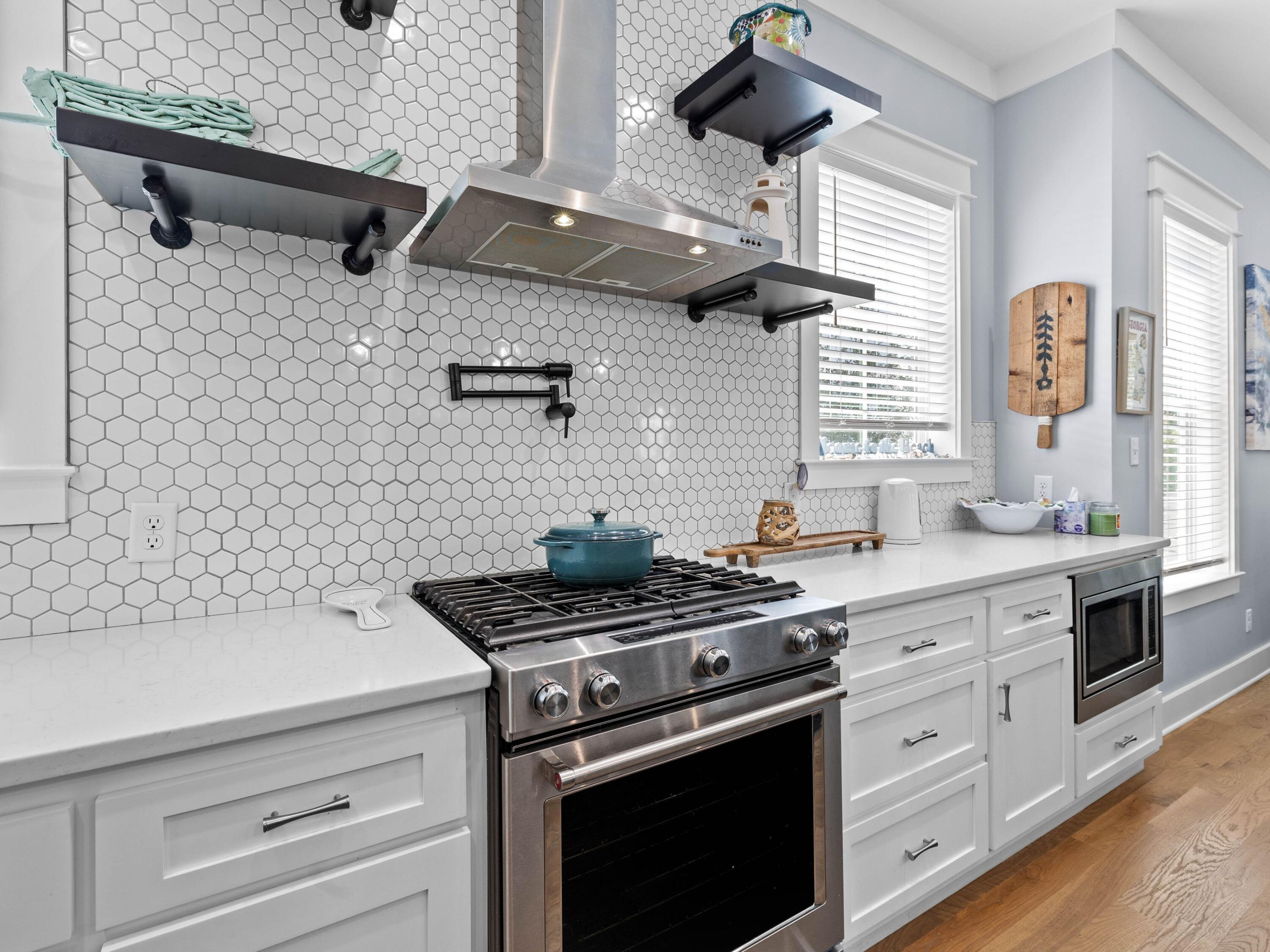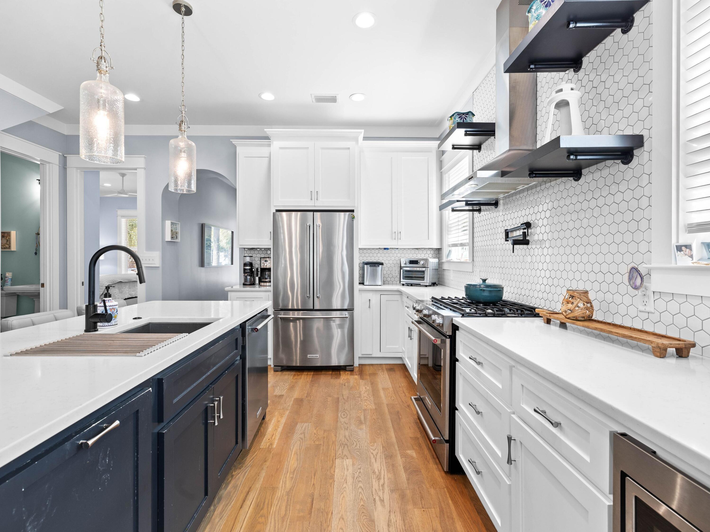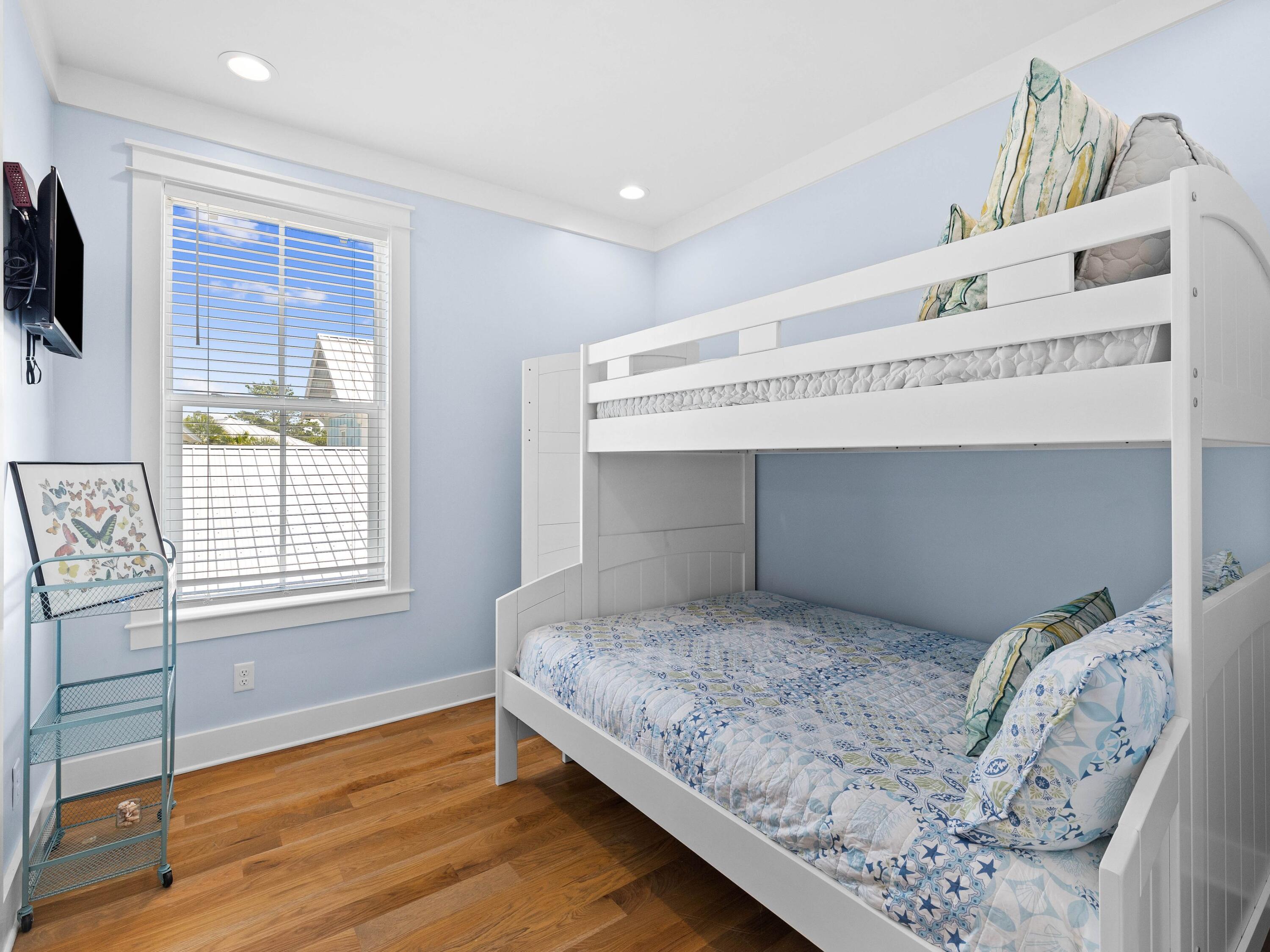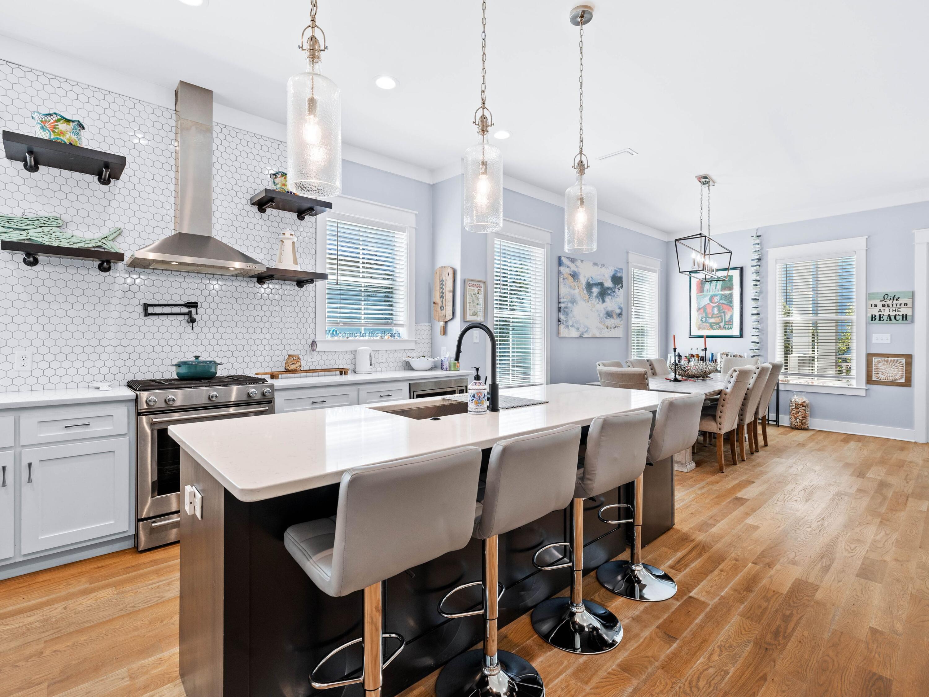 Welcome to your dream coastal retreat, nestled on a prime corner lot in the highly sought-after Seacrest Beach community. This stunning beach home, never rented and meticulously maintained by its original owners, offers the perfect blend of luxury, comfort and convenience. With four spacious porches, each equipped with misters and fans, this home is designed for outdoor living at its finest. This elegantly furnished property is ideal for a primary residence, vacation home or rental investment. Inside, you'll find exquisite fixtures and finishes, including polished hardwood floors and a gourmet kitchen with quartz countertops and high-end KitchenAid appliances. The open-concept living area is perfect for family gatherings, featuring an informal dining room that seats 10 and additional seating at the kitchen island, all beneath charming pendant lighting. The home boasts two master suitesone on each flooralong with a queen guest suite, a bunk room with built-in bunks and a second bunk room with a twin over queen. Every detail has been thoughtfully considered, from the generous laundry room to the ample outdoor storage space. The outdoor kitchen and expansive porches provide ample space for entertaining after a day spent at the largest community pool on 30A or the nearby deeded Seacrest Beach. With the convenience of tram service to and from the beach, 24-hour security, and easy access to Seacrest's shopping and dining, this property is truly a rare find. Additionally, the home's landscaping features six fruit trees, adding to the charm and appeal of this exceptional residence. This is a unique opportunity to own a piece of paradise in Seacrest Beach, where you can enjoy the perfect balance of tranquility, luxury, and proximity to all the best that 30A offers.