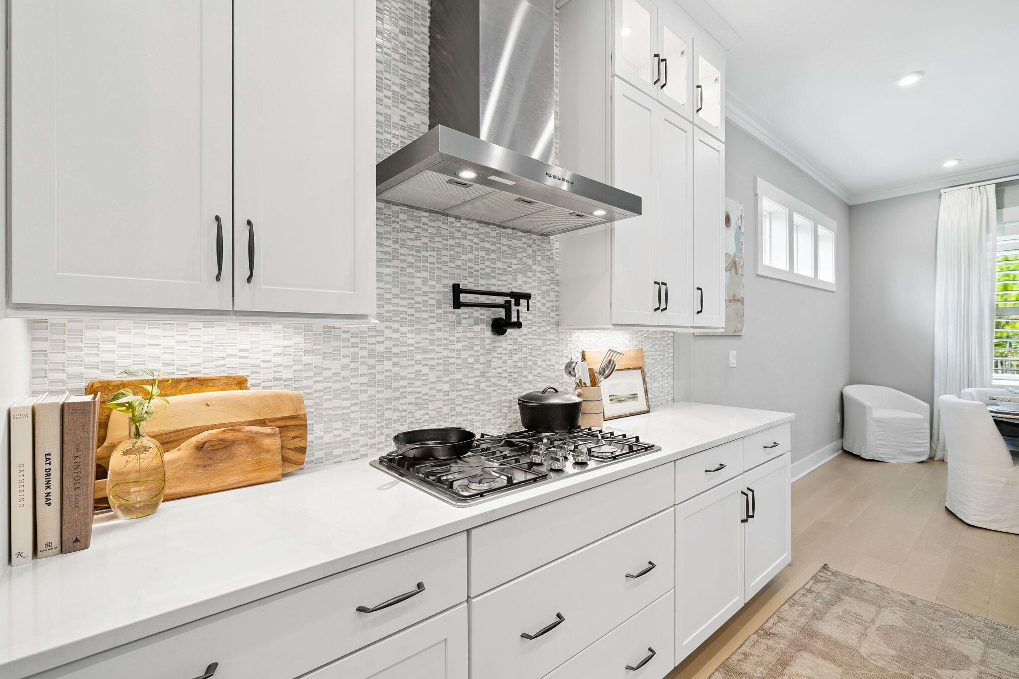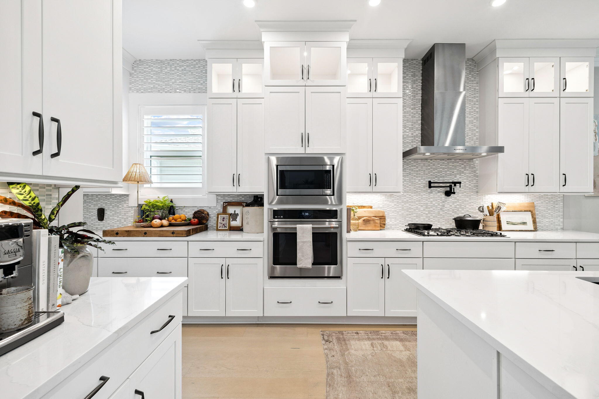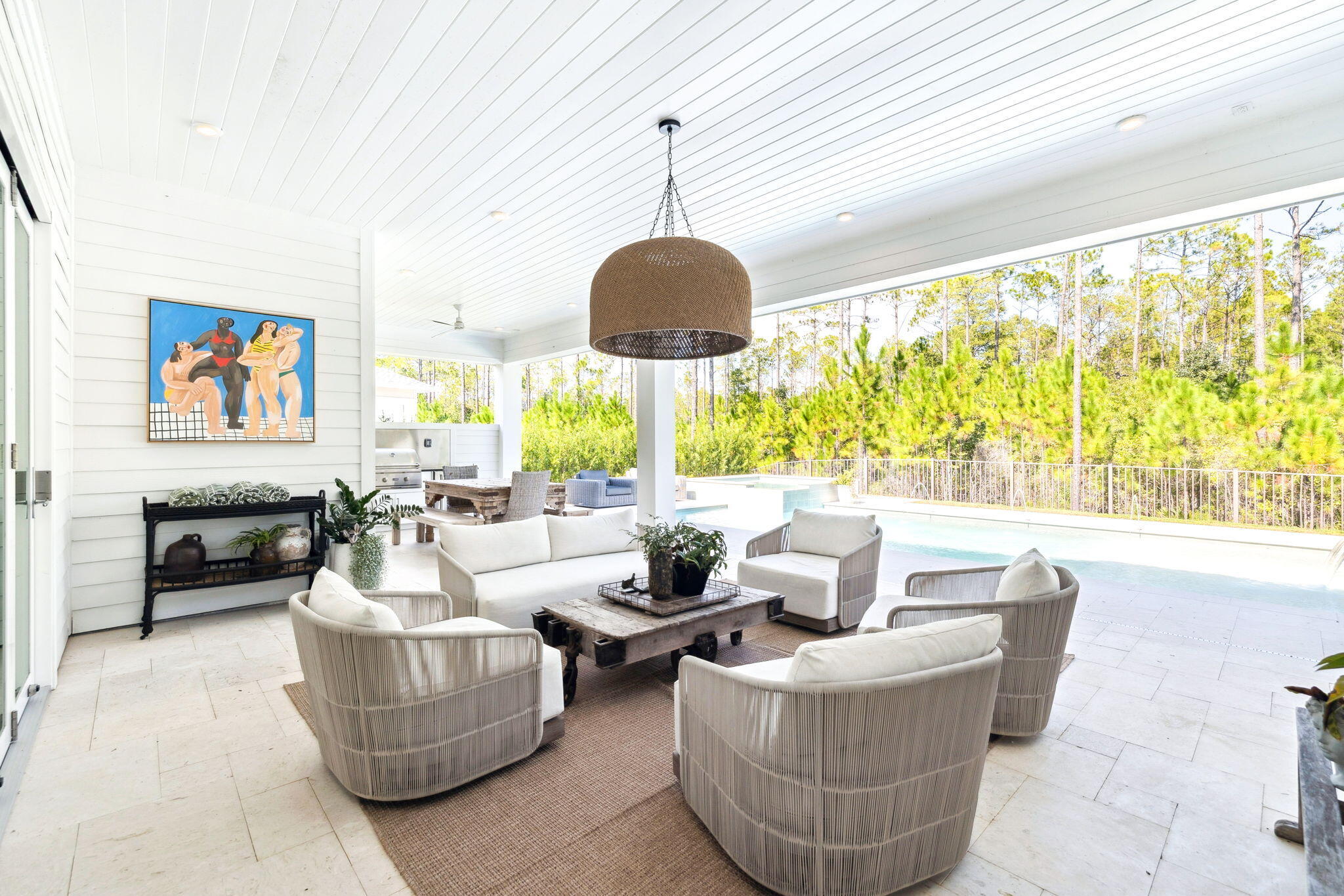Step outside to a resort-inspired sanctuary featuring a heated pool, oversized spa, expansive shellstone deck, full outdoor kitchen, and lush landscapingall backed by a preservation area for maximum privacy. With three garages, white oak flooring, designer lighting, and timeless gas lanterns, every detail reflects quality and sophistication.
