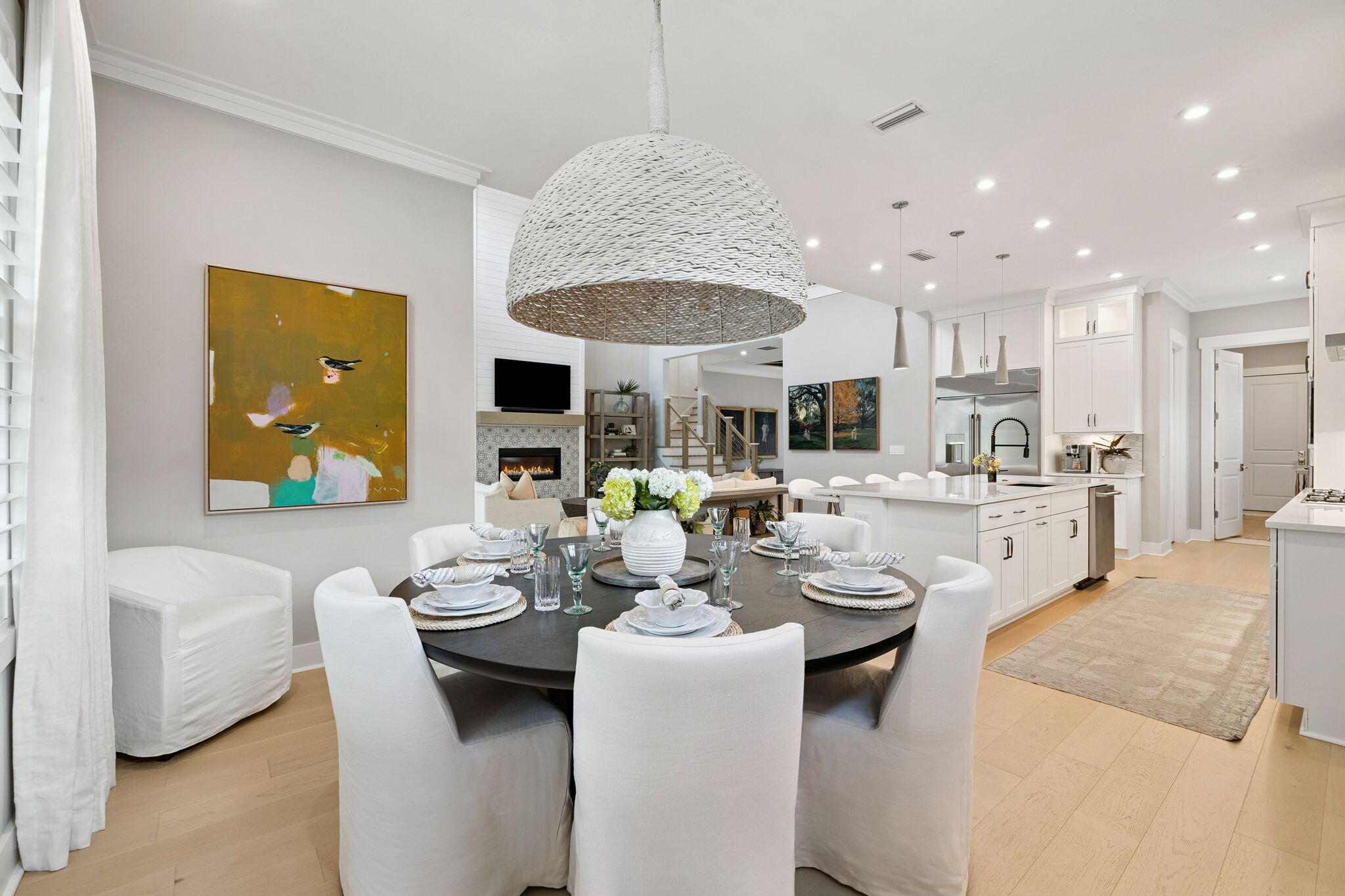 Welcome to 394 W Lafayette Road, a stunning residence that epitomizes luxury coastal living. Built by Kolter Homes, this Venice plan showcases nearly every available upgrade. The thoughtfully designed 4-bedroom, 3.5-bath, 3,736 sq. ft. layout offers an exceptional blend of craftsmanship, elegance, and functionality--all within the highly sought-after gated community of NatureWalk at Watersound Origins.Step inside to soaring 20+ foot ceilings in the great room, anchored by a grand fireplace and bathed in natural light. A dramatic wall of bi-folding glass doors seamlessly connects the interiors to an extraordinary outdoor oasis, creating the ultimate setting for entertaining or relaxed everyday living.The chef's kitchen is a showpiece, boasting a professional-grade gas cooktop, built-in refrigeration, expansive island, custom cabinetry, and an oversized walk-in pantry. A stylish mudroom with laundry and abundant storage ensures the home is as functional as it is beautiful.