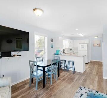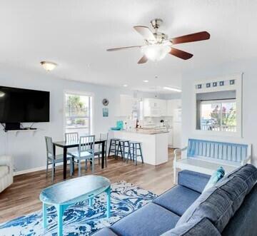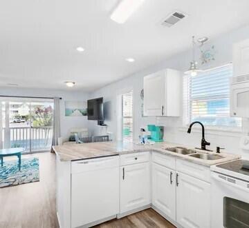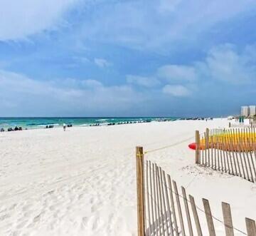 LOOK NO FURTHER!! This newly renovated 2 bedroom condo corner unit is the CLOSEST unit to Deeded Beach Access. Enjoy the warm gulf breezes and sugar white sand with private gate access. The kitchen boasts gorgeous granite countertops, a custom backsplash, and new appliances. Brand-new washer/dryer! New windows throughout. Comfortably accommodating 6 guests with a king bed in the master, a bunk bed in the guest room, and a sleeper sofa in the living room. NO CARPET! NEW LVP flooring throughout. Fully furnished and the tasteful decor provides the ultimate relaxing beach experience .Soak in the sun at the large beautiful community pool, expansive decks, picnic area w/ BBQ grills. This unit provides proximity to Destin Harbor, Big Kahuna's water park, local restaurants, and shopping.