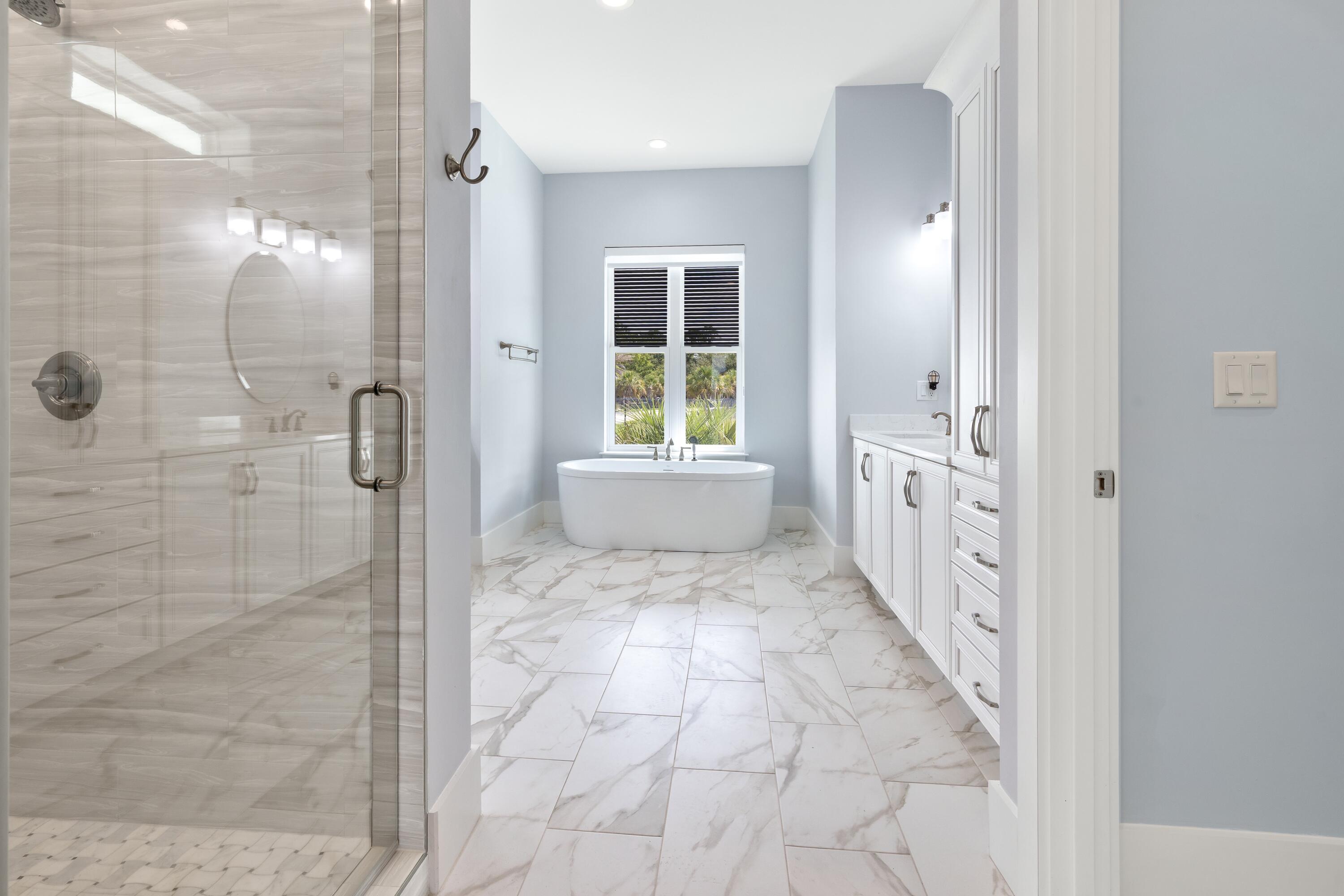 The waterfront primary retreat offers its own private covered porch and a spa-worthy ensuite with dual vanities, walk-in shower, soaking tub, and dual walk-in closets.