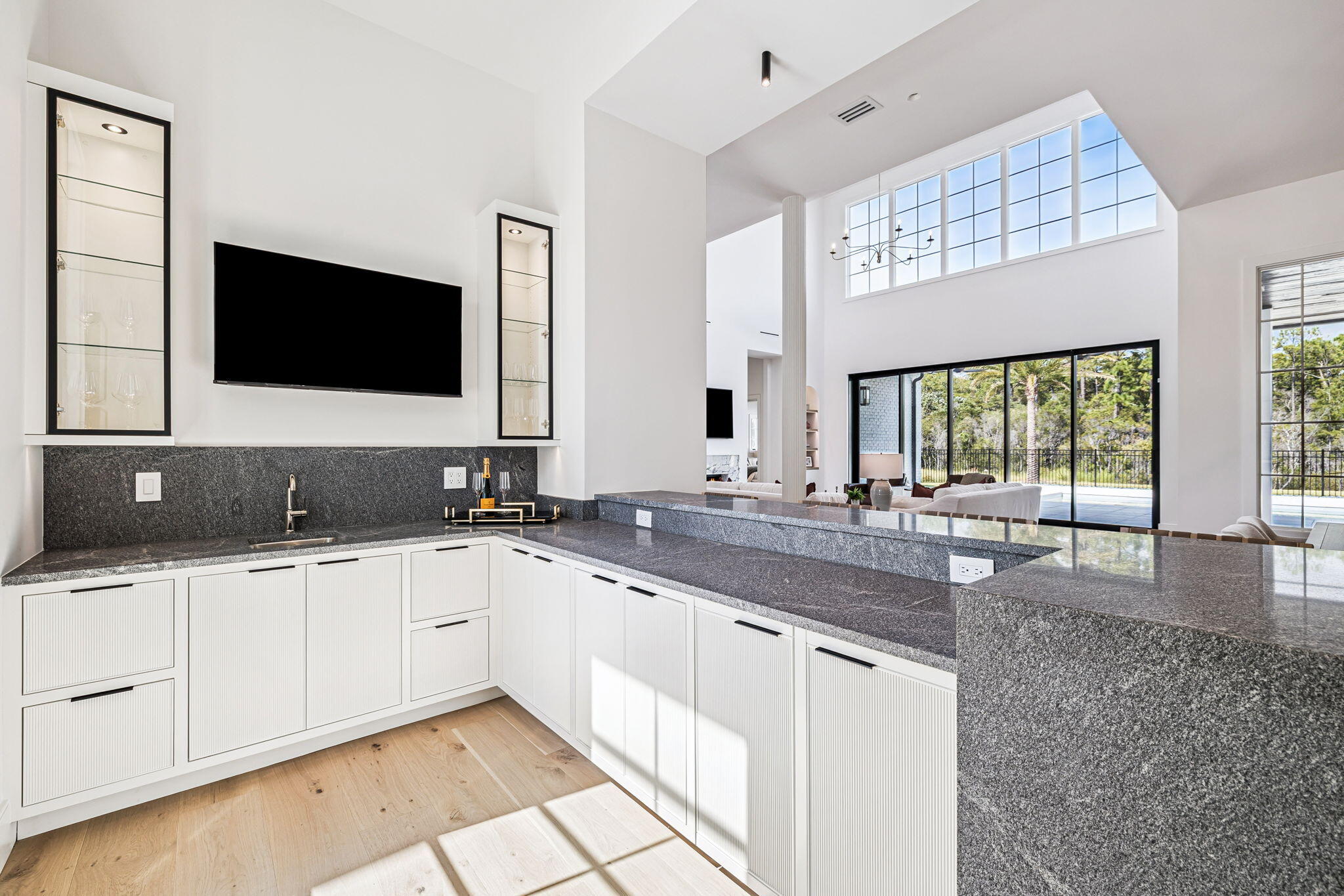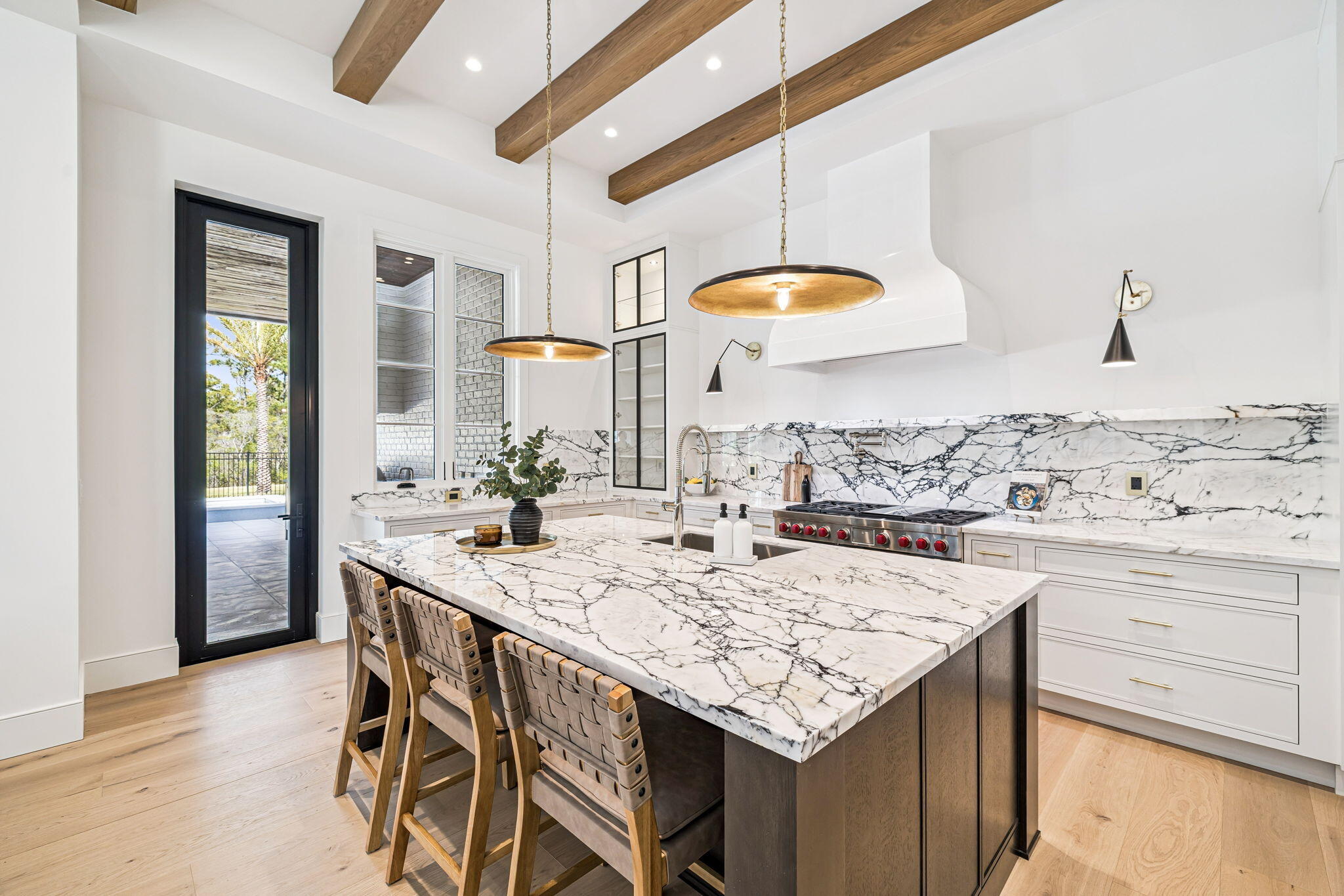 A masterclass in modern luxury, 724 Windsong effortlessly blends the clean, contemporary lines of South Florida design with the laid-back elegance of 30A coastal living. Thoughtfully conceived and expertly executed by Cardella Homes -- an acclaimed builder known for bespoke residences and iconic commercial projects such as the Watersound Camp Creek Inn -- this residence is a testament to timeless craftsmanship and architectural excellence. Constructed with solid block and wrapped in smooth white stucco beneath a true concrete tile roof, the home offers enduring quality matched by aesthetic sophistication. Inside, curated finishes elevate every space from bookmatched marble countertops and backsplash in the kitchen to the hand-carved marble mantel and artisan tilework in the primary bath.