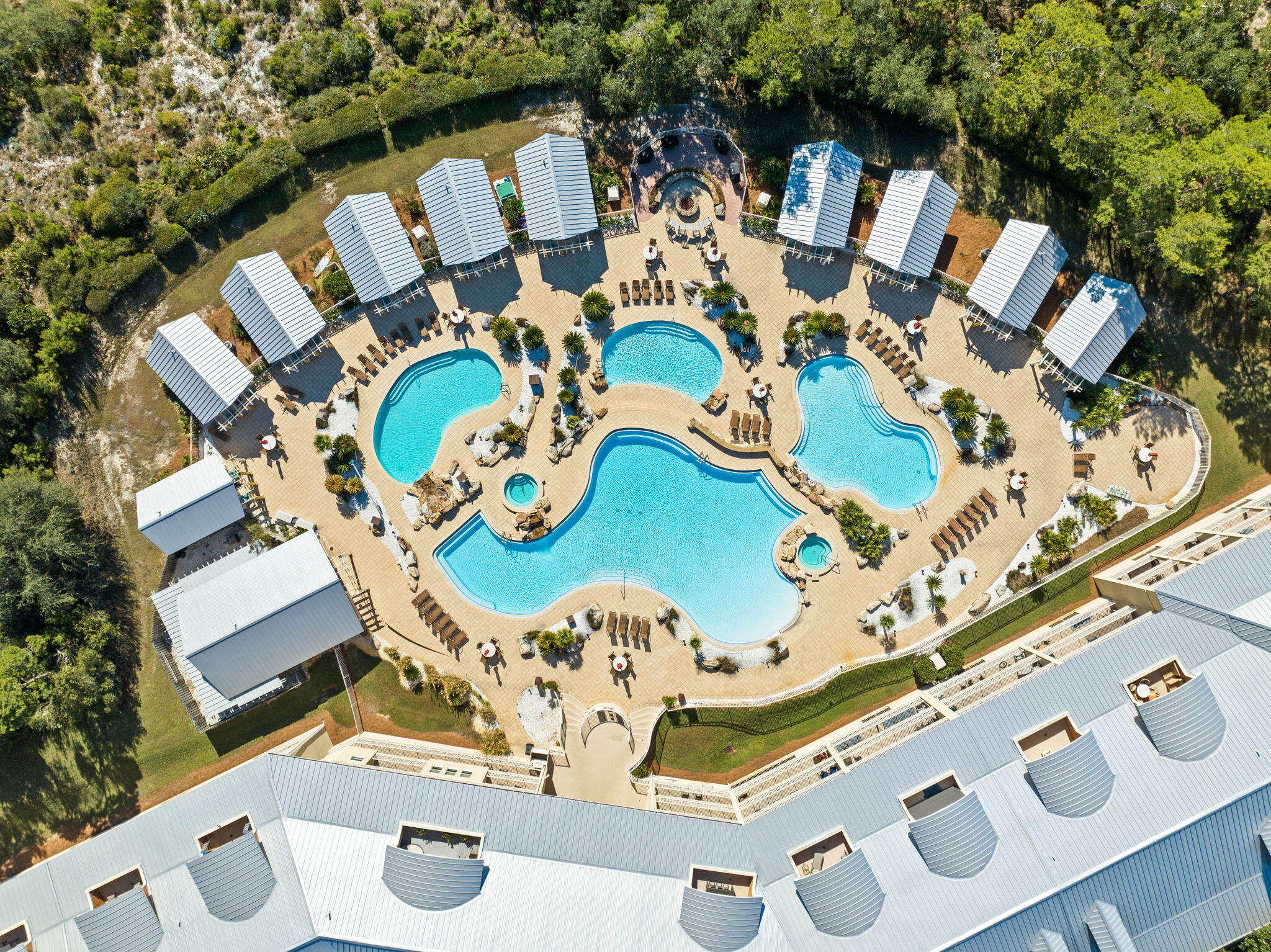 The beach access is effortless, with a private captained pontoon boat available seasonally from the community dock and complimentary golf cart rides in the off-season. For those who prefer a leisurely walk, the gated beach access along Scenic 30A is just a short stroll away.