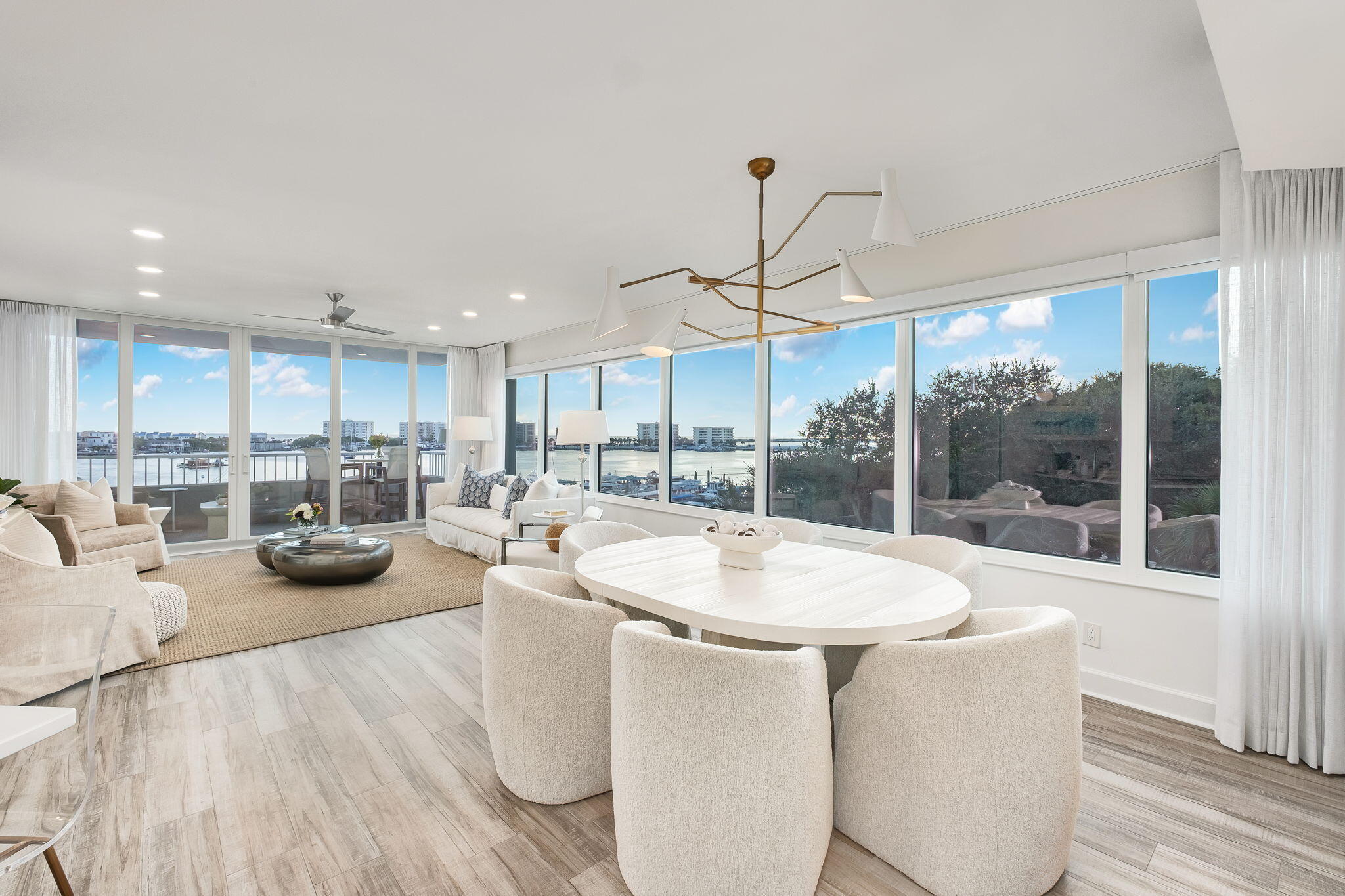 Unit 305 is a rare West end unit at the coveted Destin Yacht Club! This incredible condominium has been fully renovated and includes a deep water boat slip (#6) with a 30,000lb boat lift. Offered fully furnished turn key and ready to enjoy now! Professionally decorated with bright and airy furnishings offering timeless enjoyment! With a stunning full wall of windows on the West side, you are able to capture some of the best sunsets on the Emerald Coast! This low floor unit offers amazing views of the Destin Harbor, Gulf, and beautiful established trees right beside the building. Walk to some of the best dining and entertainment in Destin. The iconic Harborwalk leads right up to this complex, so no need to drive! The complex has gorgeous common areas, fitness center, and pool. Destin Yacht Club recently had all new windows and doors installed in all units, new exterior paint, and a new roof installed. Opening the sliding doors of this condo really opens up the living space and truly gives you that coastal experience.