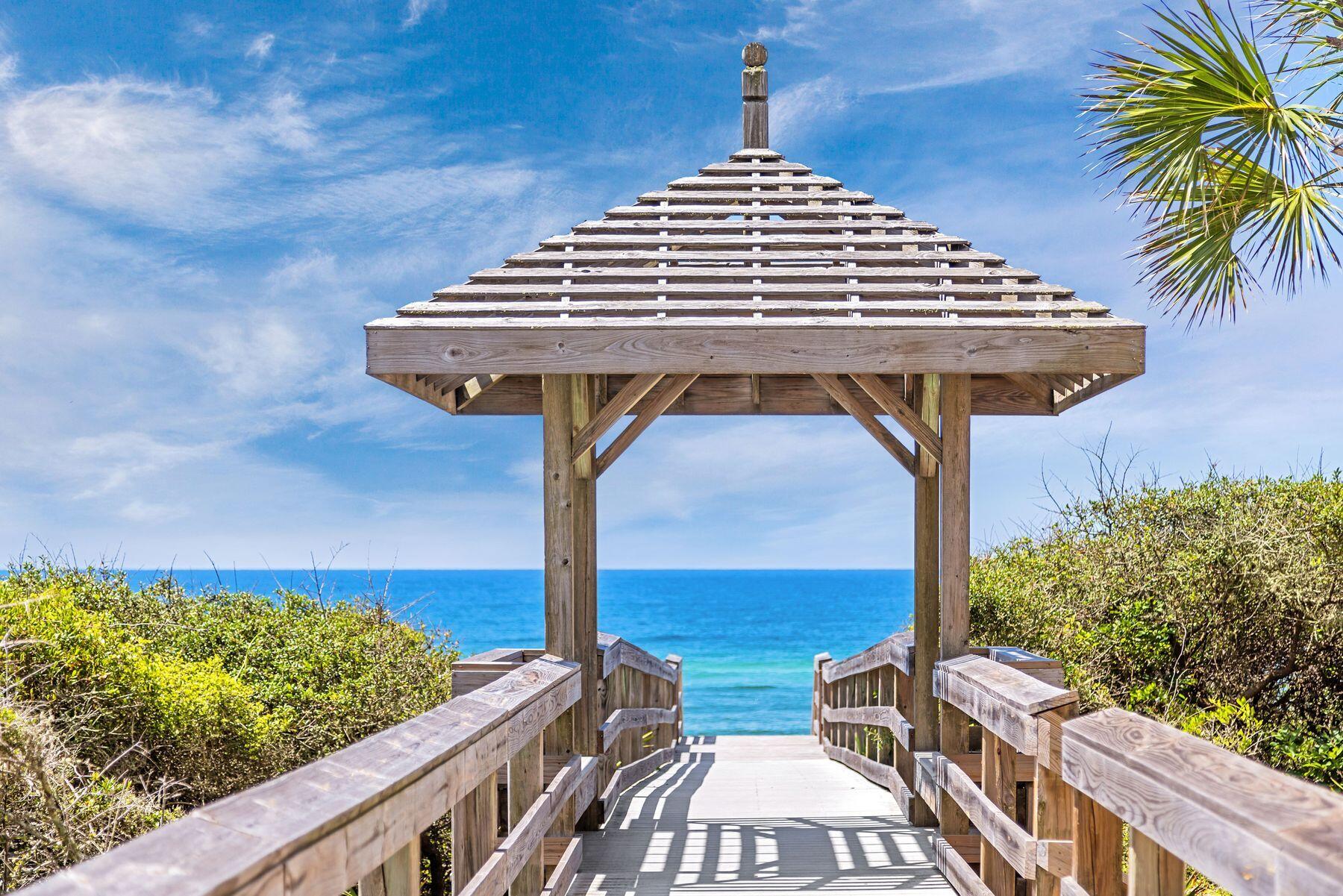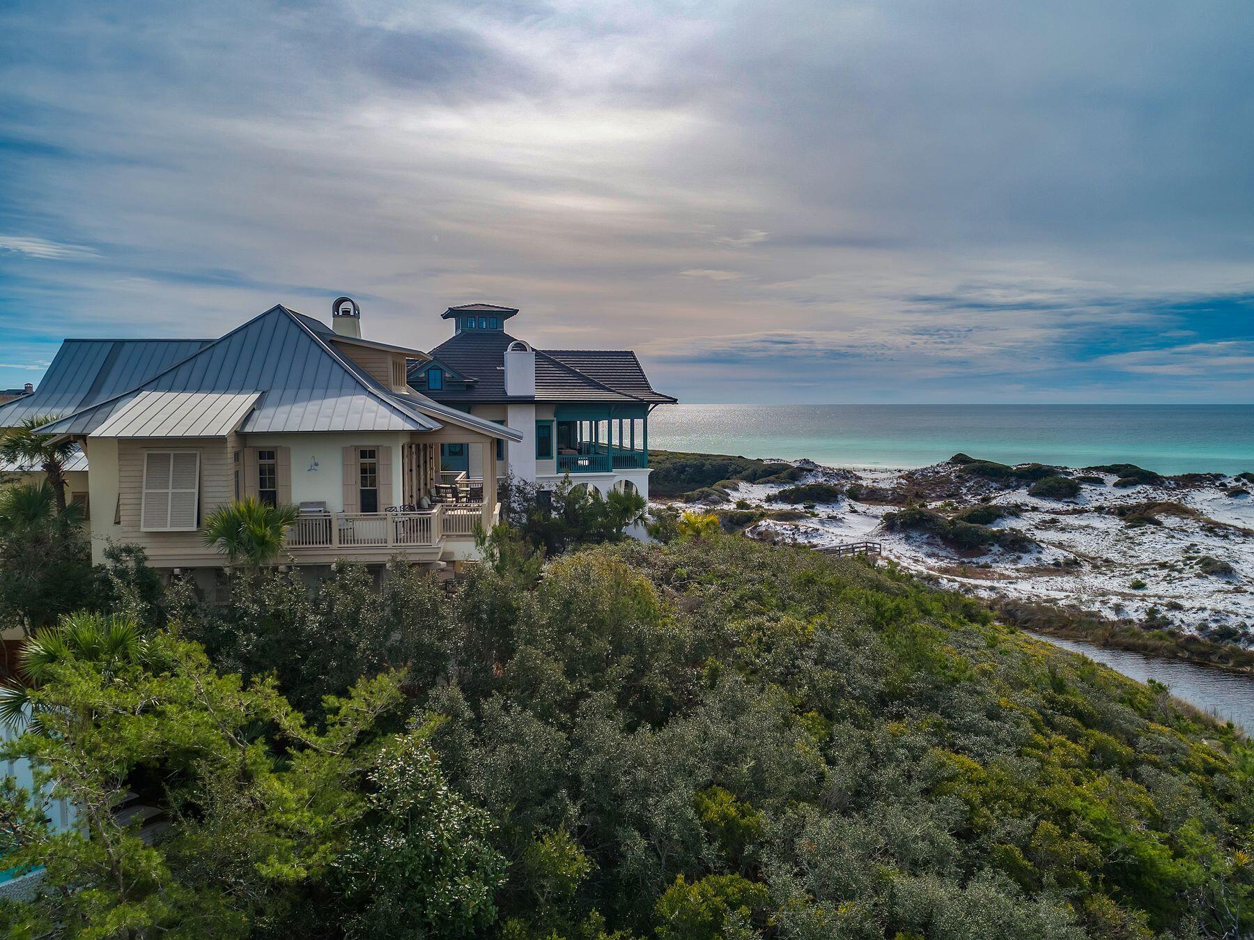 Set on one of the most coveted parcels along 30A, this iconic residence in the private community of The Retreat delivers a truly rare opportunity. Perched high above the dunes, it commands breathtaking vistas of Draper Lake's outfall and the shimmering Gulf of America. Offering an extraordinary blend of elevated privacy and generous lot size, this Tom Christ-designed concrete block masterpiece sits gracefully within a 90-acre enclave boasting 3,000 feet of private beach. Inside, reclaimed heart pine floors infuse warmth throughout the reverse floor plan, while pro-line appliances, a two-car garage, and timeless finishes elevate everyday living. This is not just a coastal residence, it's a rare chance to own one of The Retreat's most extraordinary homes!