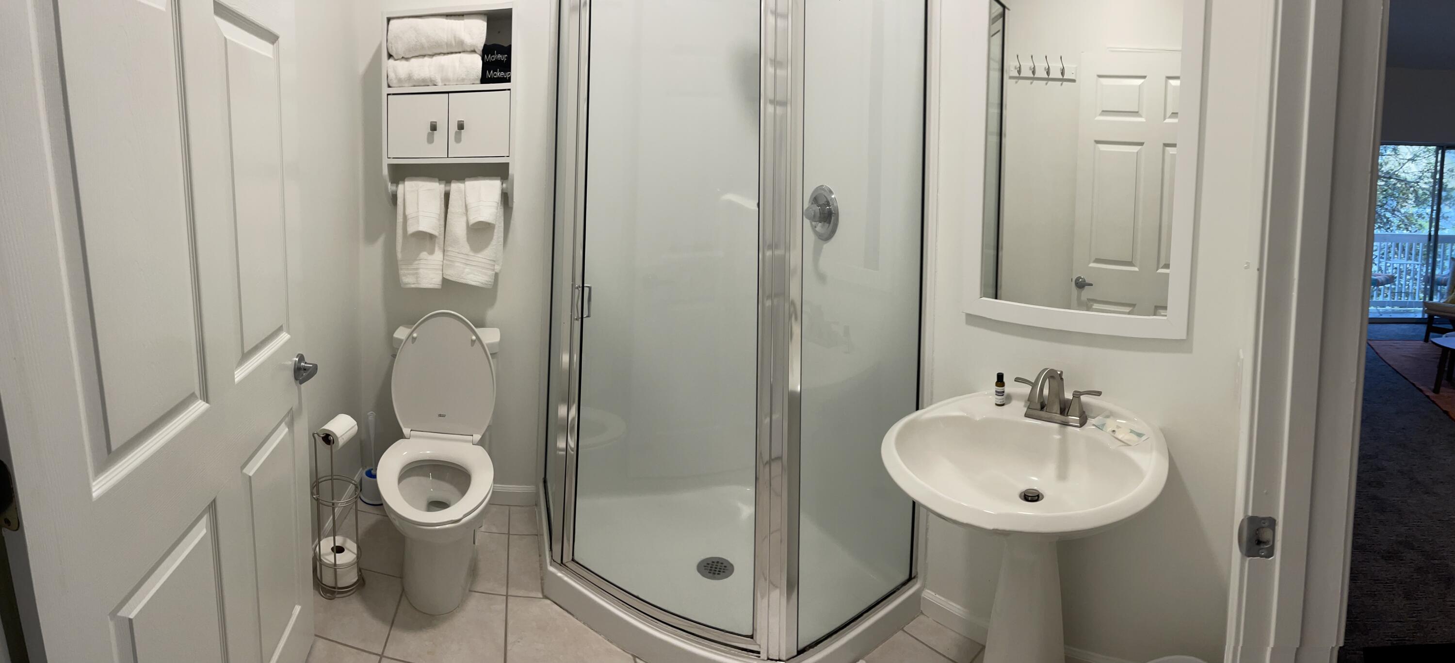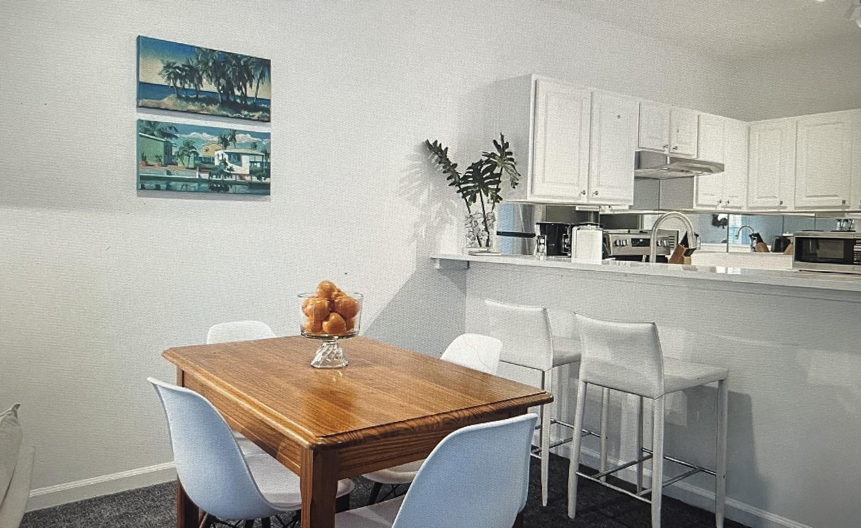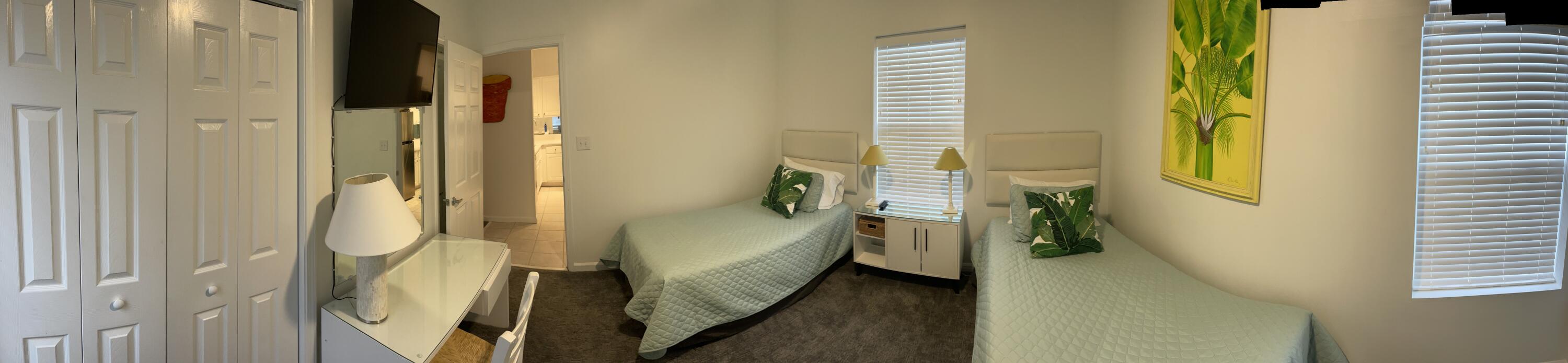 Light, bright and airy, all in a modern styled condominium, which is definitely a rarity at this price on 30-A. It's centrally located off the shores and Village of Eastern Lake and surrounded by the Pt Washington State Forest. It's a top story corner unit with windows on three sides. This 2nd Building 2BD/2BA location was recently renovated in early 2022 and is a top floor unit at the Heron's Watch Condominium. The bright and open 940sq ft floor plan boasts a large king bedroom with an en-suite bathroom and an additional double twin room, spacious enough for a desk.The well-appointed kitchen offers solid surface counters, recently updated stainless steel appliances, and ample cabinet storage