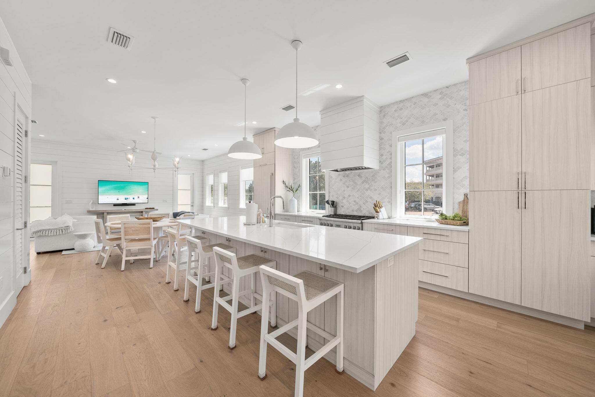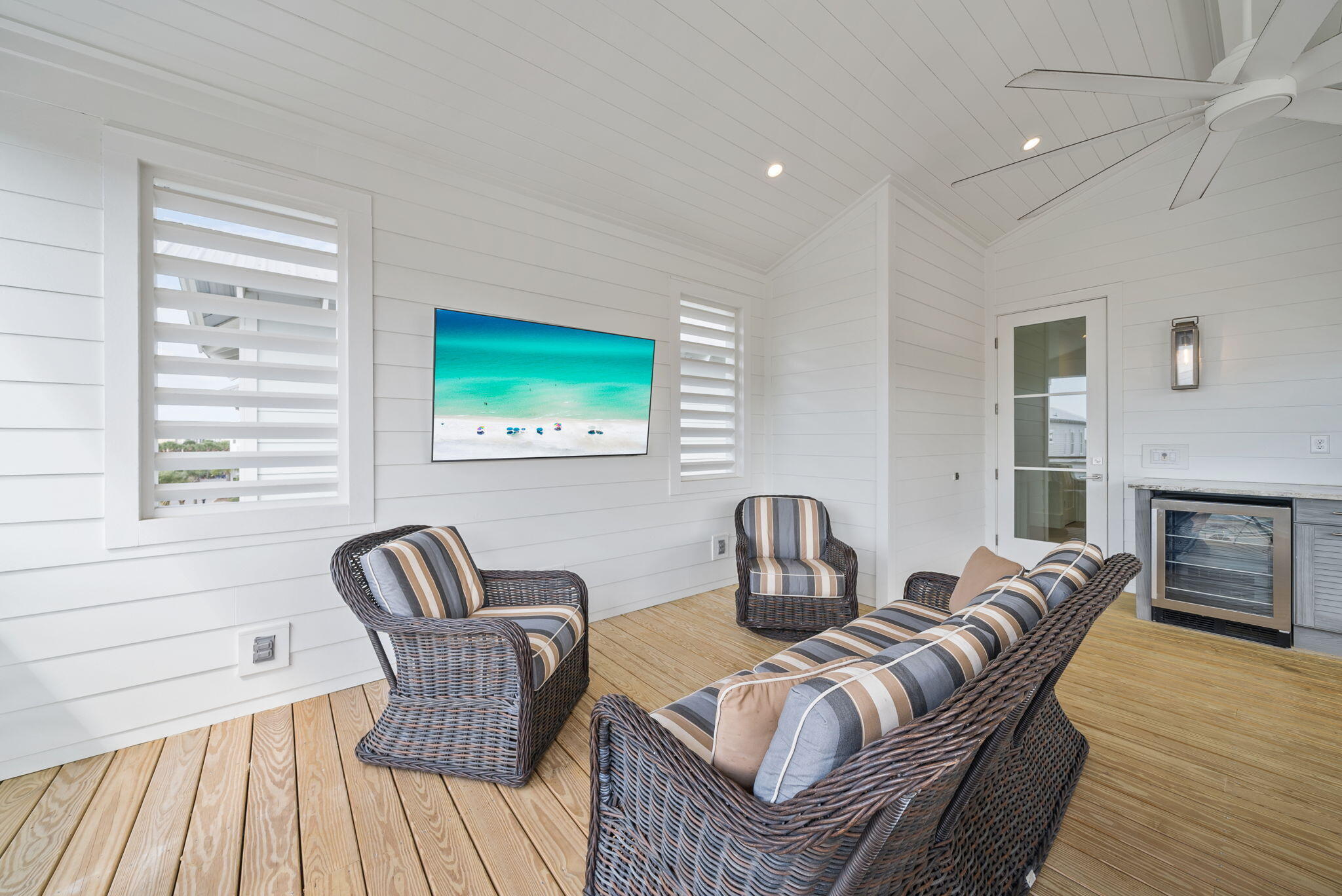 Nestled in the coveted enclave of Seacrest Beach, 69 E Trigger Trail is a superb example of coastal luxury built to last. From its superior craftsmanship to its designer-appointed interiors, this residence offers both a sublime escape and a high-performing investment opportunity.Distinctive Highlights & Features:Architectural & Construction Excellence:Built with uncompromising materials and attention to detail, this home features premium coastal-grade siding, solid-core doors, impact-rated windows, and superior insulation. Every element -- from the crisp millwork to the engineered hardwood floors -- reflects a commitment to lasting quality. Luxurious Interiors & Finishes: