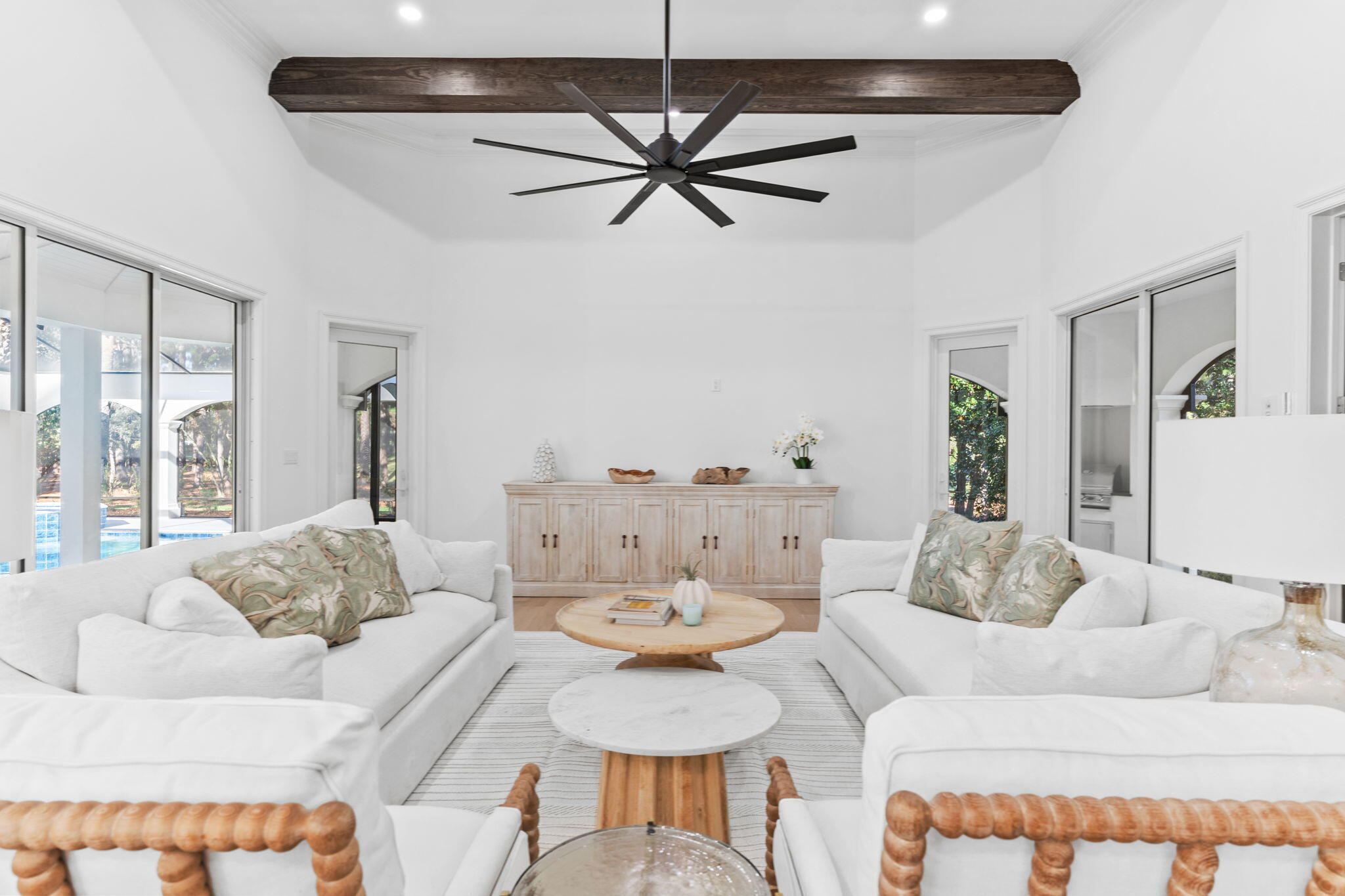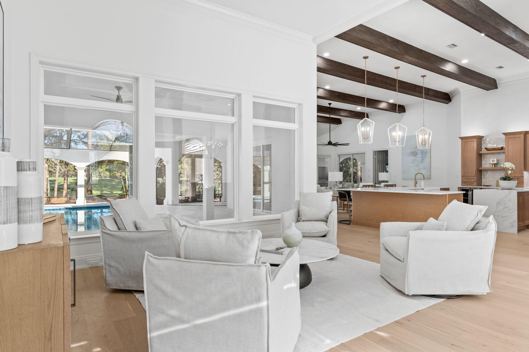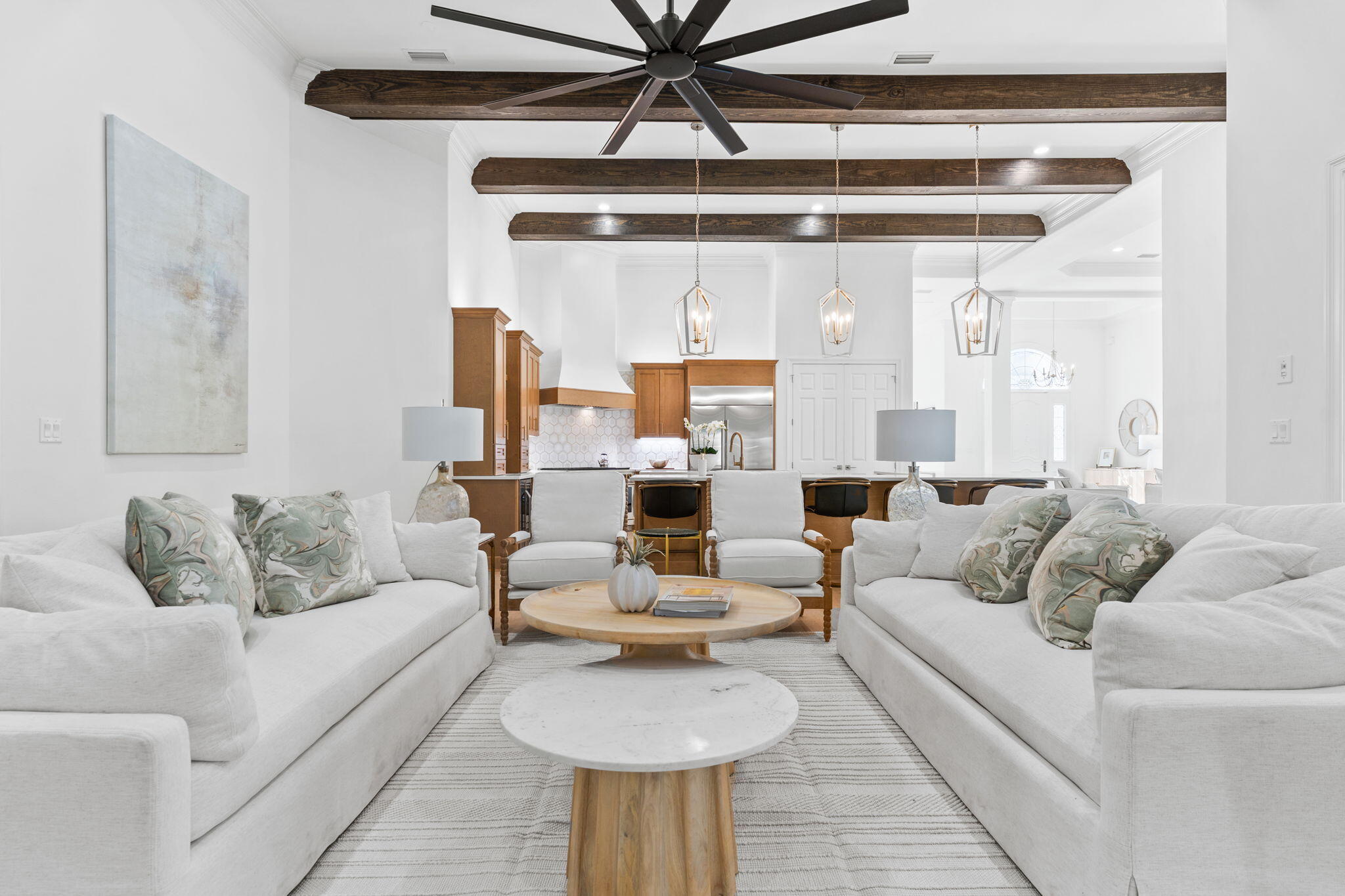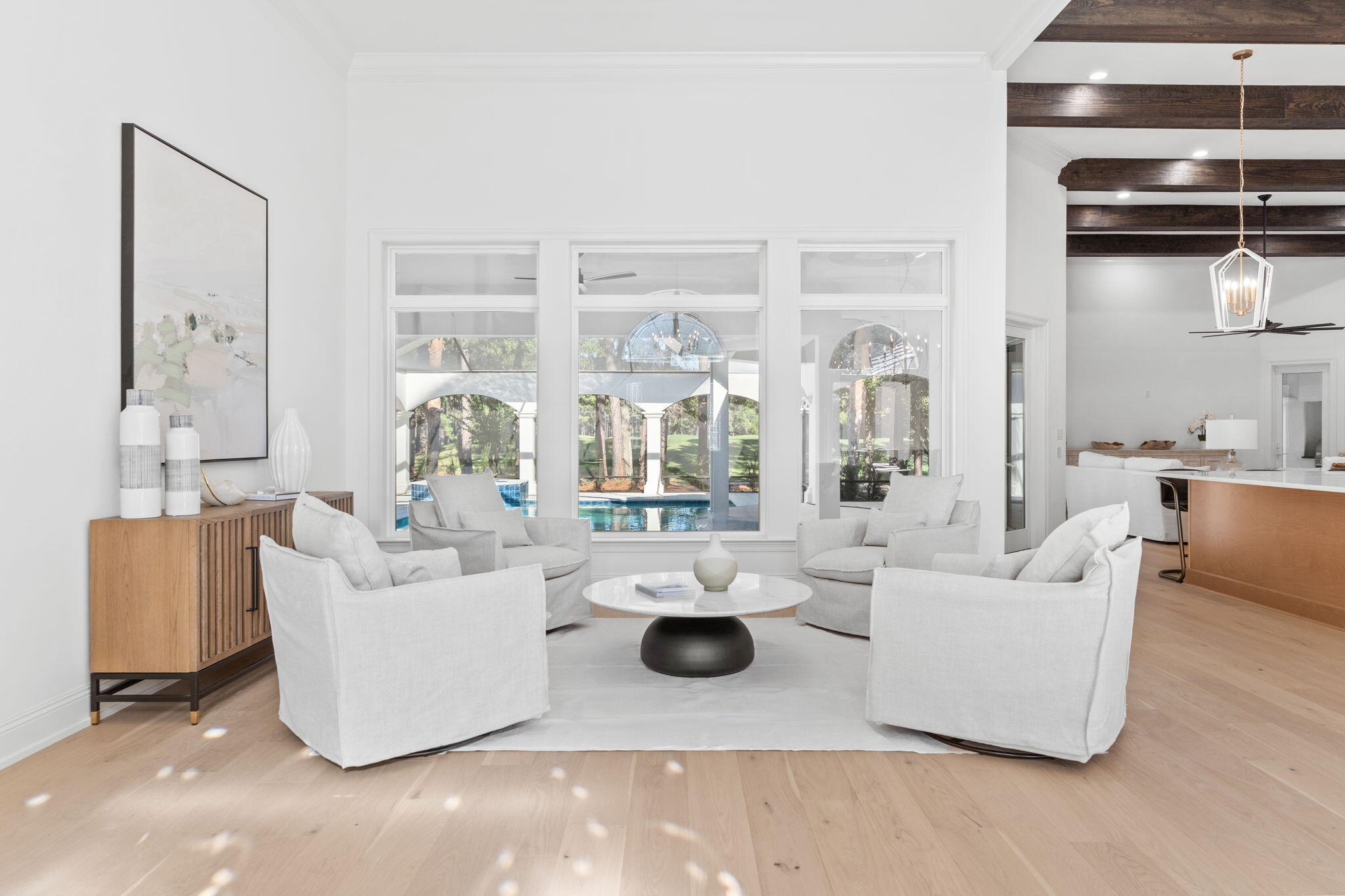 Welcome to 3104 Merion Drive, an extraordinary residence located in the exclusive Burnt Pine community within Sandestin Golf & Beach Resort. This elegant four-bedroom, four-and-a-half-bath home offers over 4,100 square feet of refined living space and an exceptional outdoor retreat overlooking the 8th fairway of the Burnt Pine Golf Course. Designed for both comfort and sophistication, this home embodies the essence of coastal luxury living along Florida's Emerald Coast.Step through the grand entryway into a light-filled interior where high ceilings, crown molding, and custom millwork create a timeless atmosphere. The open-concept layout seamlessly connects the main living areas, providing an effortless flow for entertaining and everyday living. The formal dining room and spacious living room feature large windows that frame golf course views, while the chef's kitchen is a culinary masterpiece equipped with premium appliances, a gas cooktop, double ovens, custom cabinetry, and an expansive center island. A cozy breakfast nook and adjoining family room provide the perfect gathering spaces for family and guests.