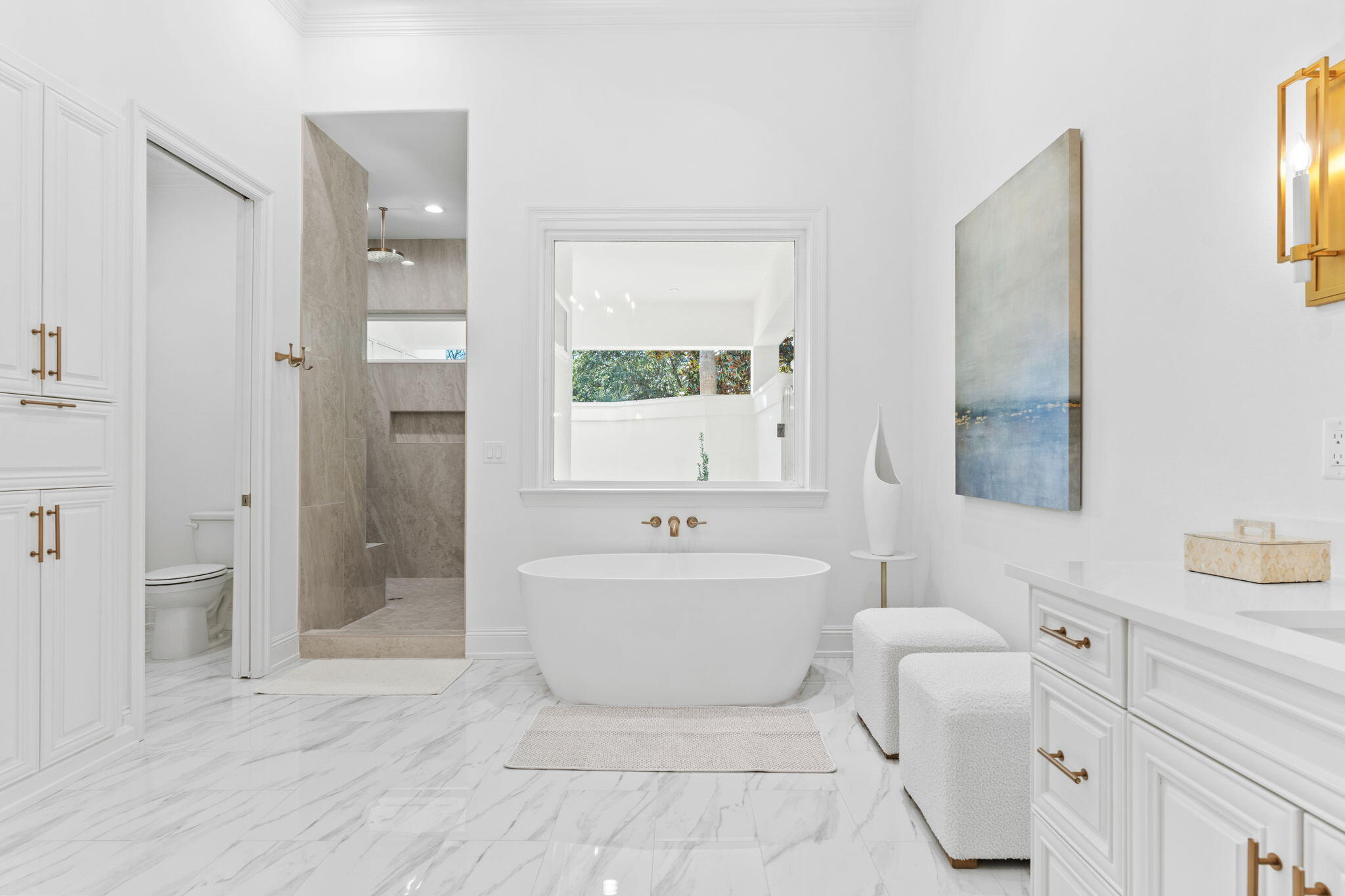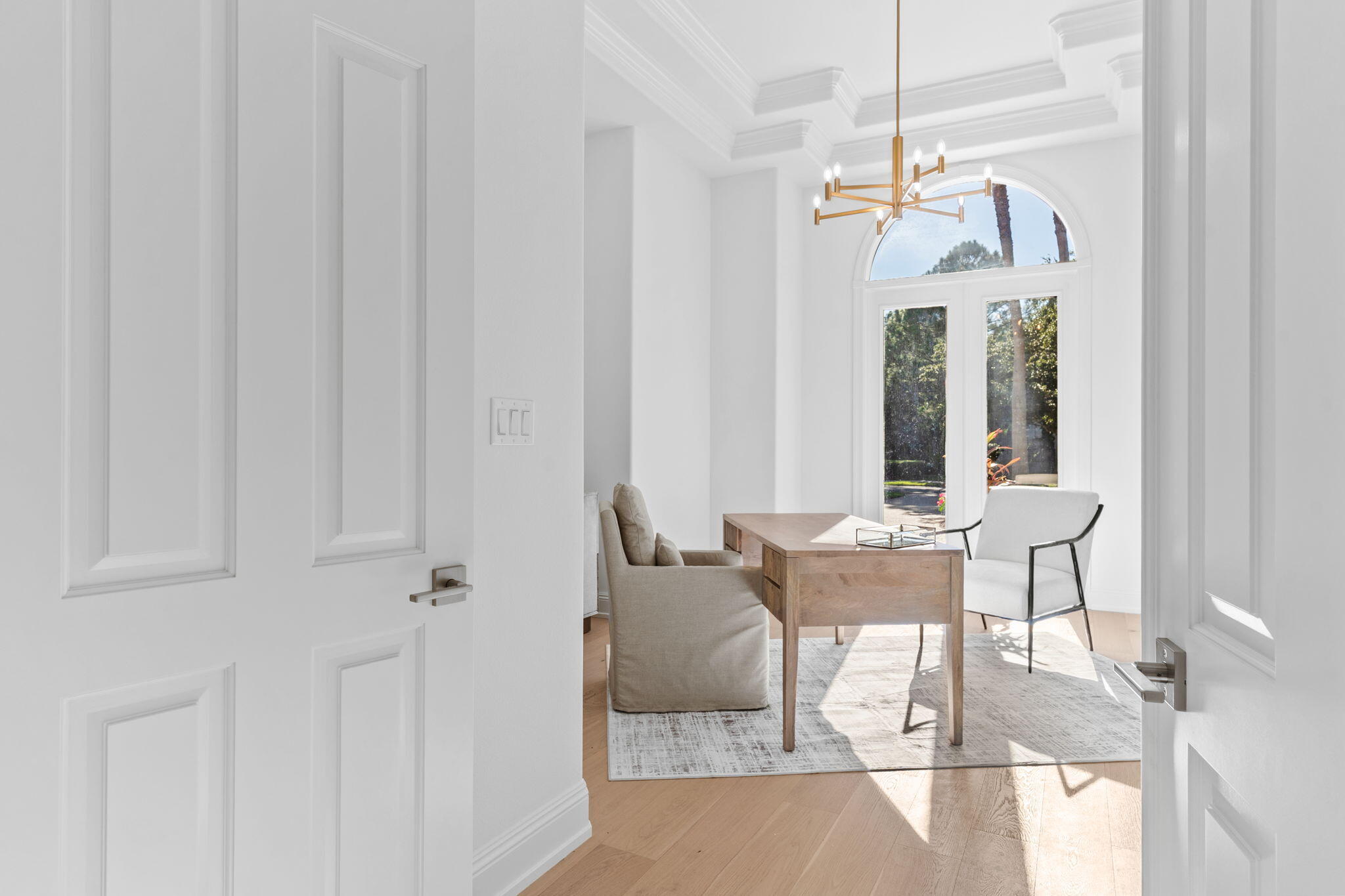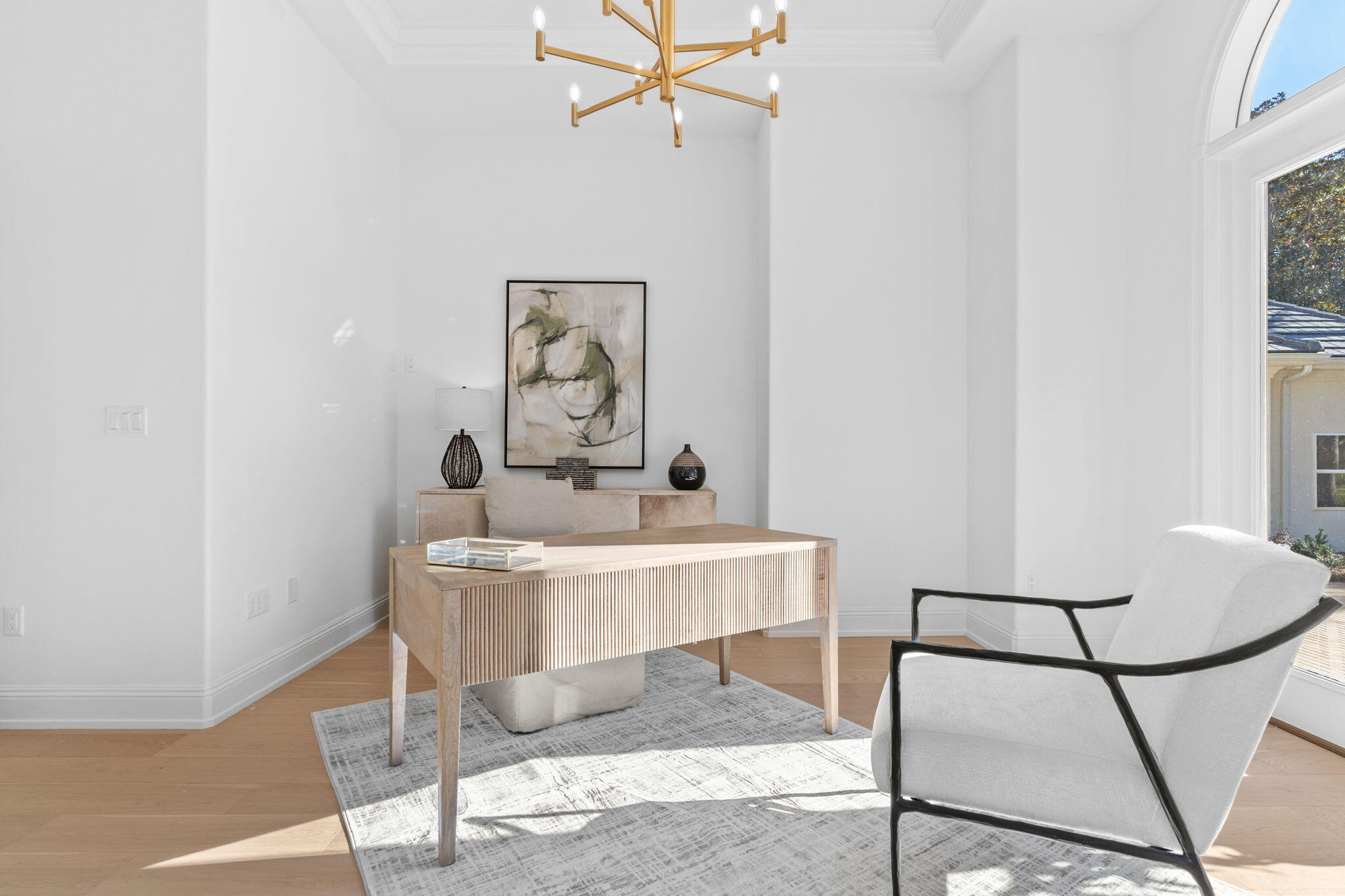 The primary suite serves as a true retreat, offering a private sitting area, dual walk-in closets, and a luxurious en suite bath with double vanities, a soaking tub, and a walk-through shower. Each of the three guest bedrooms includes its own full bathroom, ensuring comfort and privacy for visitors. Additional features include a dedicated office, ideal for remote work or study, and a versatile bonus/media room that can be tailored to your lifestyle.