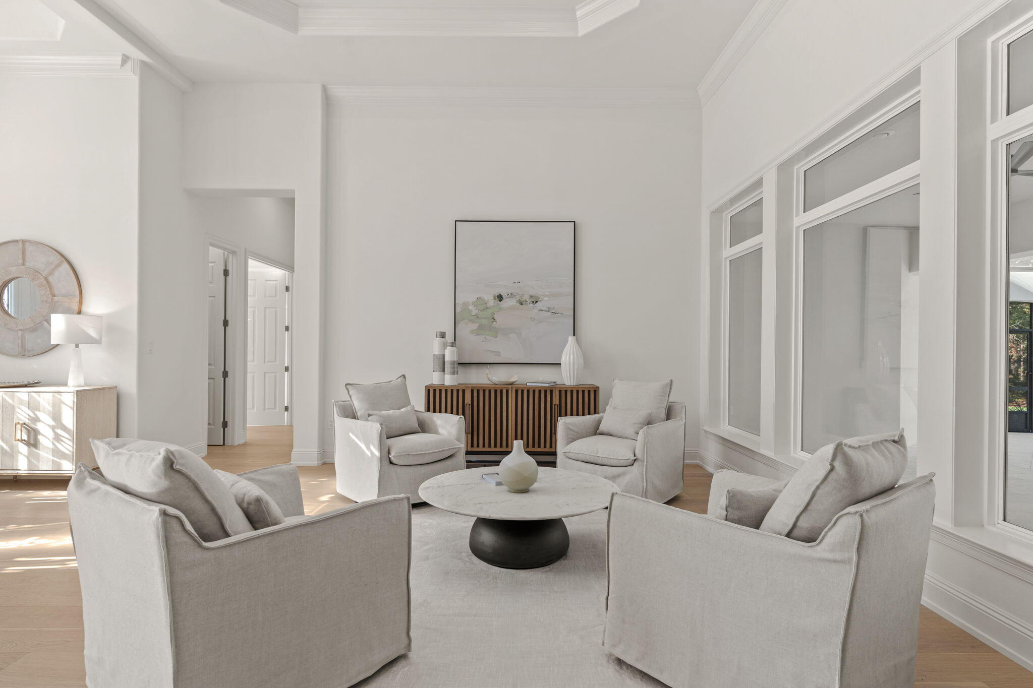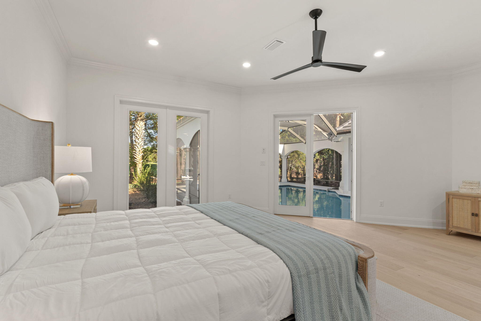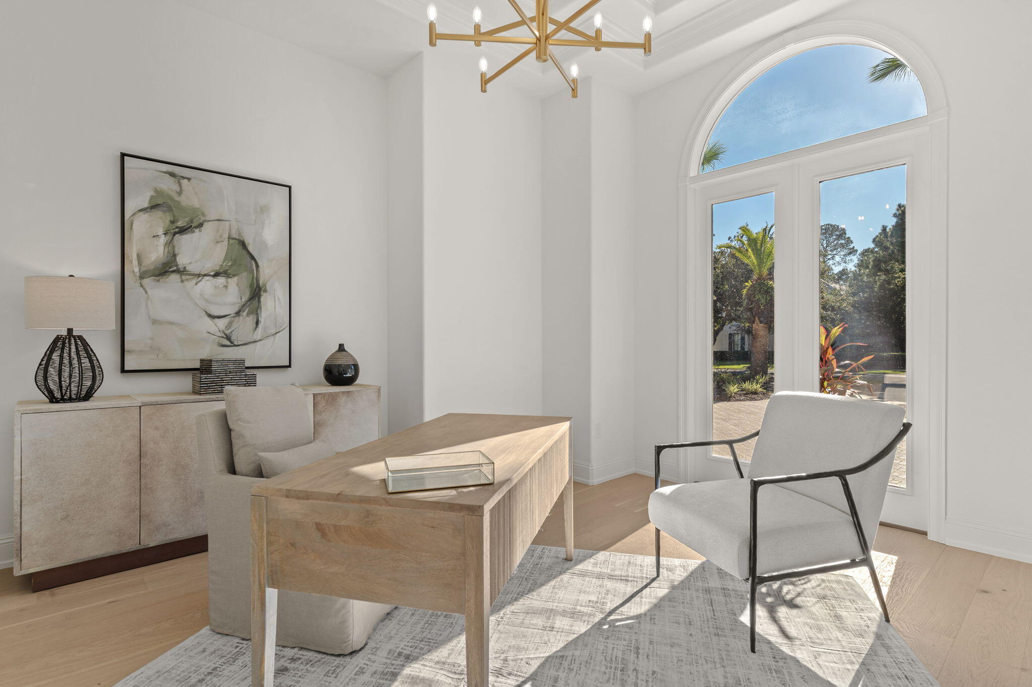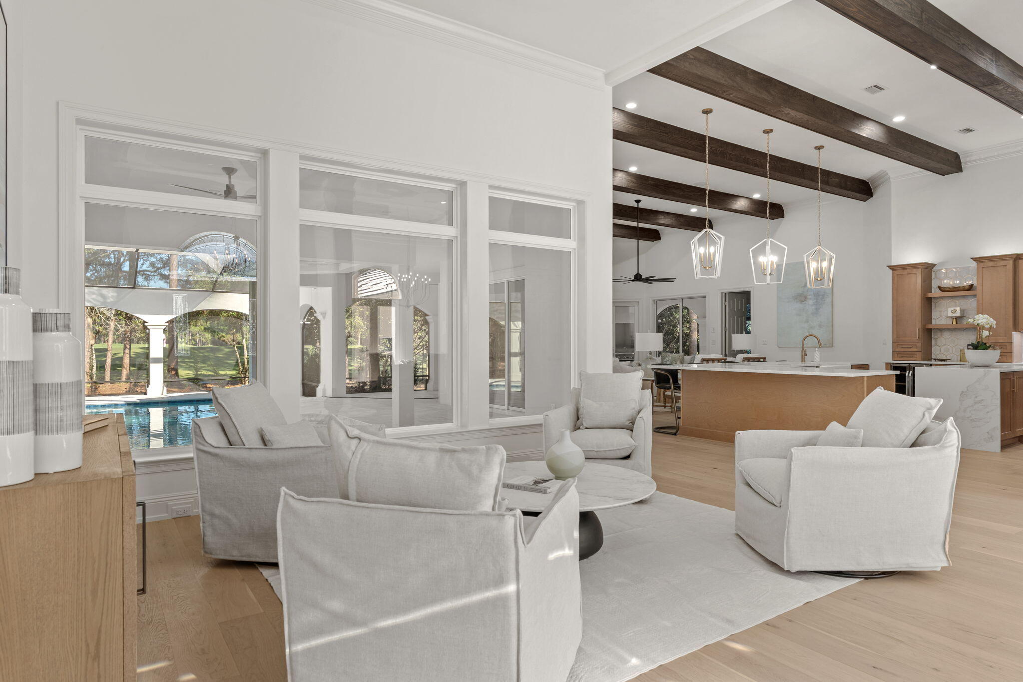 Welcome to 3104 Merion Drive, an extraordinary residence located in the exclusive Burnt Pine community within Sandestin Golf & Beach Resort. This elegant four-bedroom, four-and-a-half-bath home offers over 4,100 square feet of refined living space and an exceptional outdoor retreat overlooking the 8th fairway of the Burnt Pine Golf Course. Designed for both comfort and sophistication, this home embodies the essence of coastal luxury living along Florida's Emerald Coast.Step through the grand entryway into a light-filled interior where high ceilings, crown molding, and custom millwork create a timeless atmosphere. The open-concept layout seamlessly connects the main living areas, providing an effortless flow for entertaining and everyday living. The formal dining room and spacious living room feature large windows that frame golf course views, while the chef's kitchen is a culinary masterpiece equipped with premium appliances, a gas cooktop, double ovens, custom cabinetry, and an expansive center island. A cozy breakfast nook and adjoining family room provide the perfect gathering spaces for family and guests.