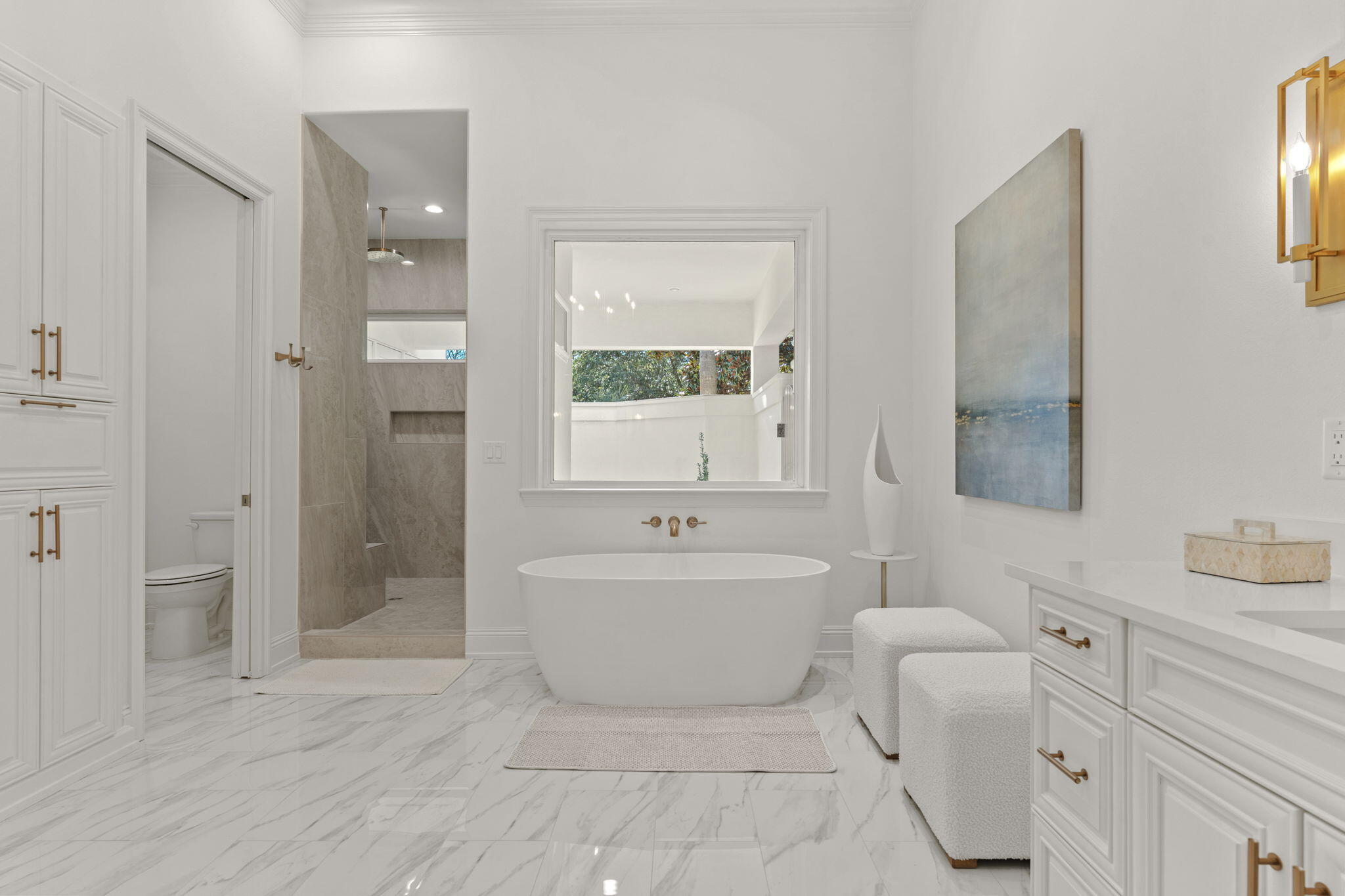 The primary suite serves as a true retreat, offering a private sitting area, dual walk-in closets, and a luxurious en suite bath with double vanities, a soaking tub, and a walk-through shower. Each of the three guest bedrooms includes its own full bathroom, ensuring comfort and privacy for visitors. Additional features include a dedicated office, ideal for remote work or study, and a versatile bonus/media room that can be tailored to your lifestyle.