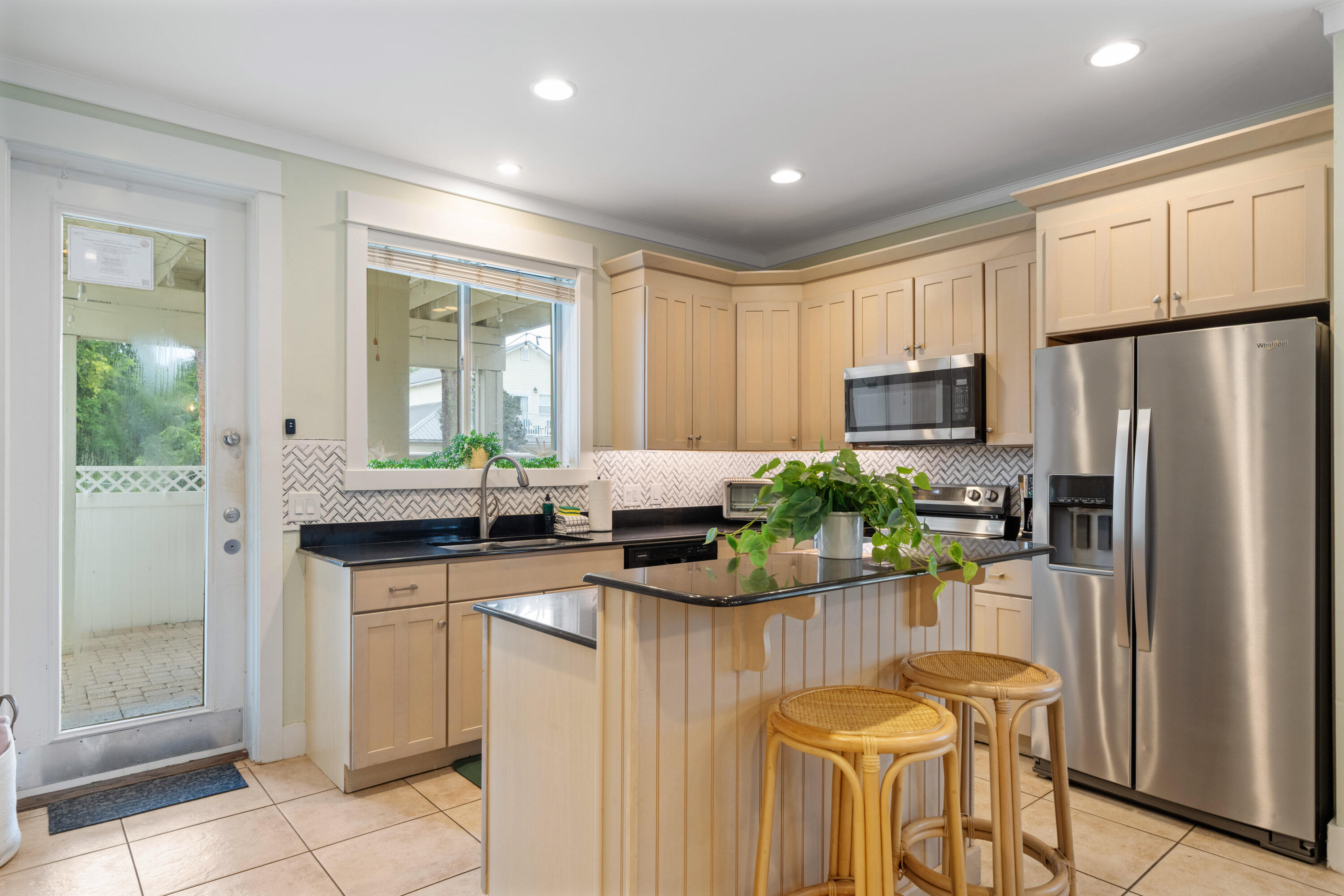 INTERIOR | Breakfast Bar,Ceiling Raised,Floor Tile,Floor Vinyl,Furnished - All,Kitchen Island,Lighting Recessed,Washer/Dryer Hookup,Window Treatment All |