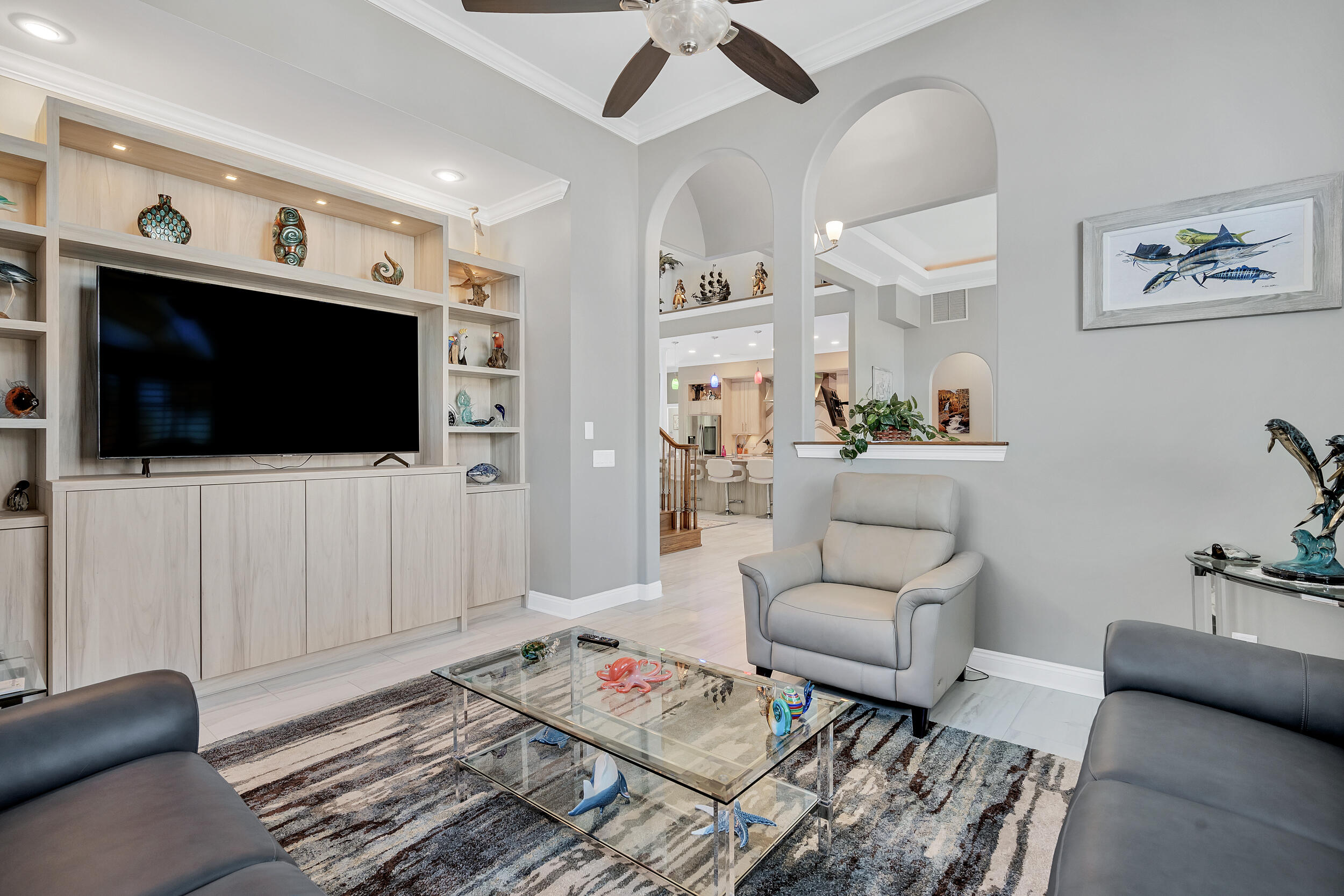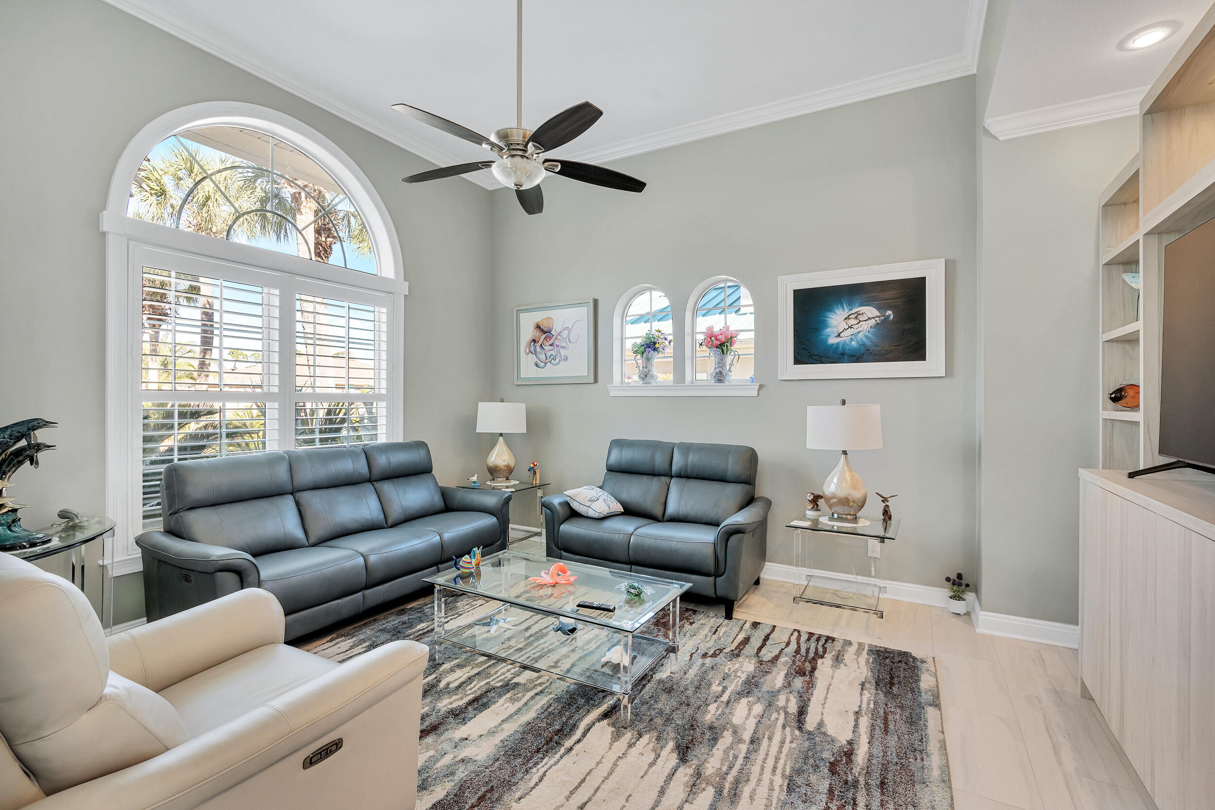 Outdoors, the property transforms into a private tropical escape. A saltwater pool is inviting for afternoons in the sun or evenings under the stars after a day on the boat. The boat dock offers composite wood decking for durability and a 7,000 LB boat lift.