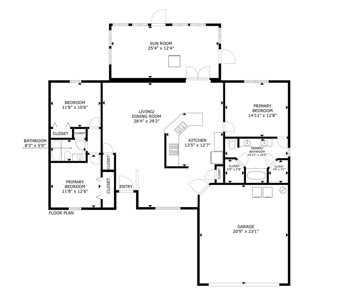 ROOM DIMENSIONS | Master Bedroom : 14 x 12 Bedroom : 12 x 11 Bedroom : 11 x 10 Florida Room : 25 x 12 Dining Area : 14 x 11 Kitchen : 13 x 12 Garage : 20 x 23 |