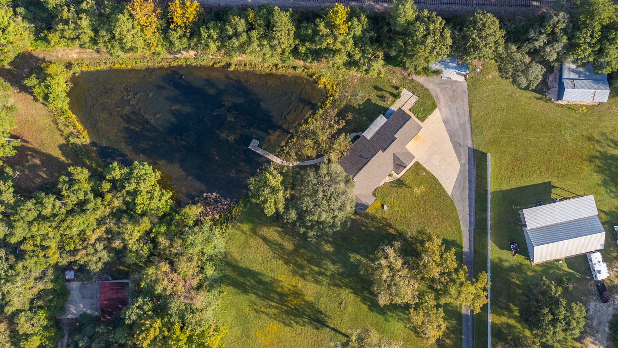 Experience the best of both worlds with this stunning all-brick 3-bedroom, 2-bath home offering peaceful country living just minutes from town! Enjoy county zoning with no city taxes on 4.65+/- beautiful acres surrounded by majestic oak and pecan trees. The property features a barn, workshop, covered storage areas, and even a crystal-clear pond stocked with bream and bass--perfect for relaxing afternoons or outdoor adventures.Inside, you'll find a spacious living area centered around a cozy wood-burning fireplace, ideal for gathering with family and friends. The home includes a main kitchen and an additional canning kitchen in the laundry area for extra convenience. The master bedroom offers a garden tub, walk-in shower, and double vanity, providing a peaceful retreat. Step outside to the screened-in porch or open grilling porch overlooking the pondan ideal space for entertaining or enjoying quiet country sunsets. Recent upgrades include a new roof, hot water tank, and updated A/C system.