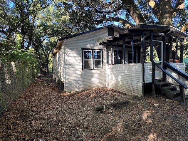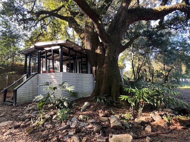 Navy Blvd to Lillian Hwy. Just before the overpass turn right into the drive way just past the mailboxes.