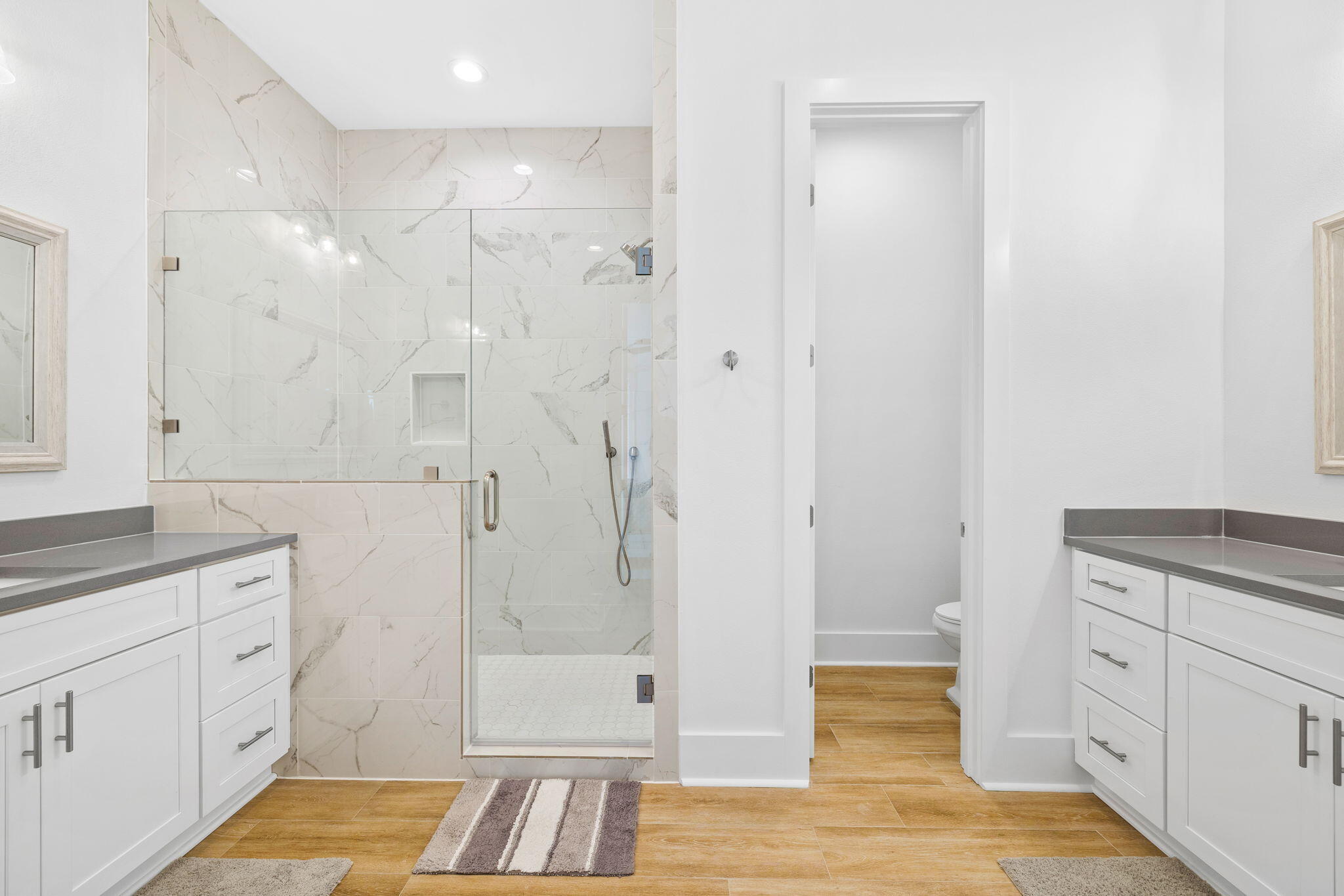 Furnished & turn-key! 6-Seater golf cart included! This 4-bedroom home boasts 2 master bedrooms (1 on each floor), 2 living areas and a separate sleeping space with custom built-in bunk beds. Once you enter the home you are welcomed with raised ceilings, shiplap walls and a resilient wood look tile flooring. As you progress through the open floor plan the kitchen is sure to catch your attention with a commercial grade 66in refrigerator/freezer, 6-burner gas cooking station and stainless-steel appliances. The first level master bathroom features a custom tile shower and standalone soaking tub. Upstairs you will find an additional oversized living area complete with beverage cooler, the 2nd master bedroom with access to the rear balcony, 2 guest bedrooms each with private bath and custom bunk area. Back downstairs once you open the sliding glass doors and step out onto the covered patio, this is an entertainer's dream with a built-in gas grill, outdoor lounge area and a private pool complete with a gas heater. While this home is a perfect primary or second home retreat, it is a strong investment opportunity with rental income projections exceeding $80K annually from a local management company. From Carefree Lane, you are just north of Gulf Place and the Ed Walline Beach access on 30A, with multiple restaurants (Shunk Gulley, Local Catch, etc.) coffee shops & entertainment venues within a short proximity.