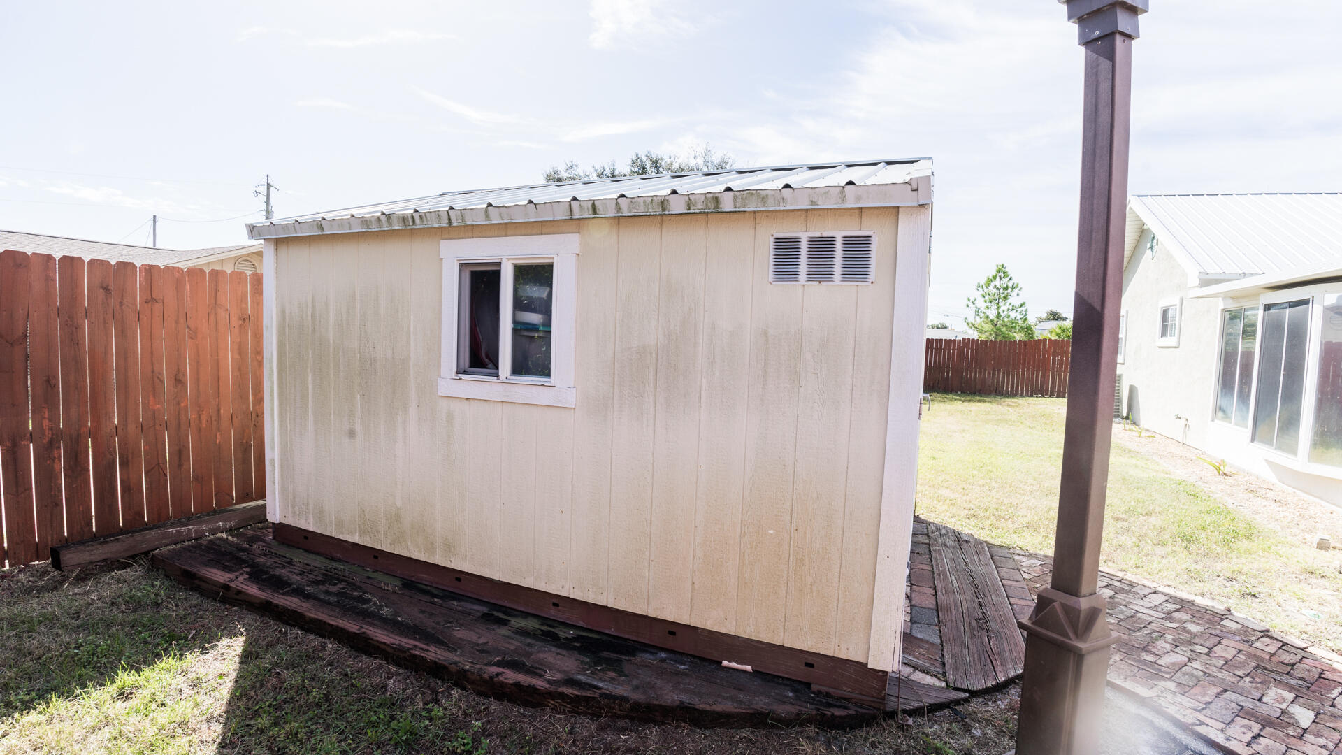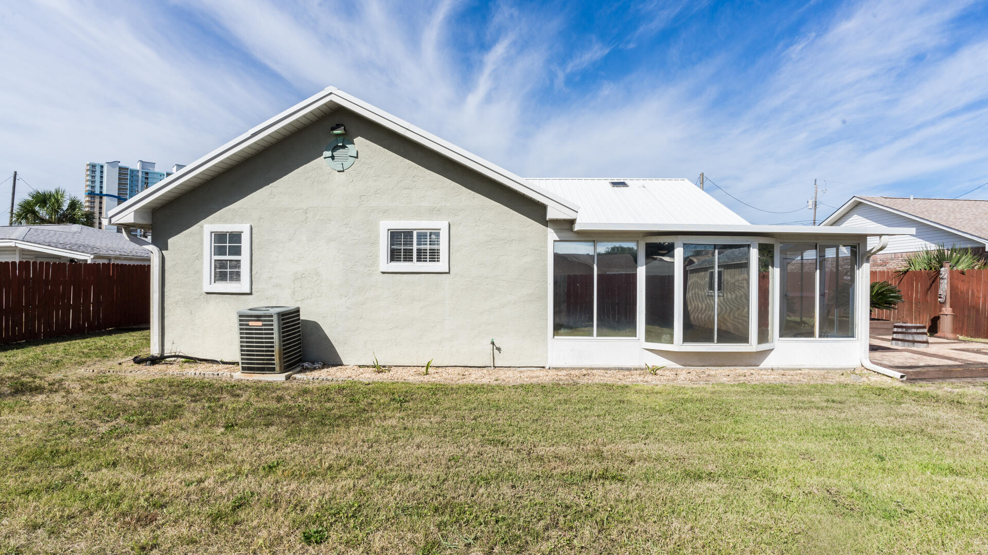 Looking for a Beach Home within walking distance to the beach and quiet east end 3912 Long John Drive is your new home. 3 Bedrooms 2 full baths with Heated and cooled sunroom make this a great primary home, weekly rental home or second home. Metal roof put on November 2018.Kitchen has granite countertops and nice Stainless Appliances ,2 small pantries and plenty of white shaker cabinets. The master bedroom opens onto the heated and cooled sunroom, has big walk-in closet and nice stand-up tiled shower. LVP floors except for 2 of the bedrooms with carpet. One car garage, private well for the sprinkler system. Home is on City Water and Sewer. HUGE 75 x 100 Lot. There is a 12 x 14 Storage Building (2024) where the Hurricane shutters are kept and great for those beach toys. Everything you need is nearby. Restaurants (local favorites Schooners, Captain Anderson's, Grand Marlin, Dat Cajun Place and Andy's Flour Power just to name a few), Grocery stores, shopping. Panamá City Beach has Top Golf, Dolly Pardons Pirates adventure and Pier Park with shopping, Movie Theatre and Restaurants galore. This Beach Home is waiting for its new owner. Call your realtor now.