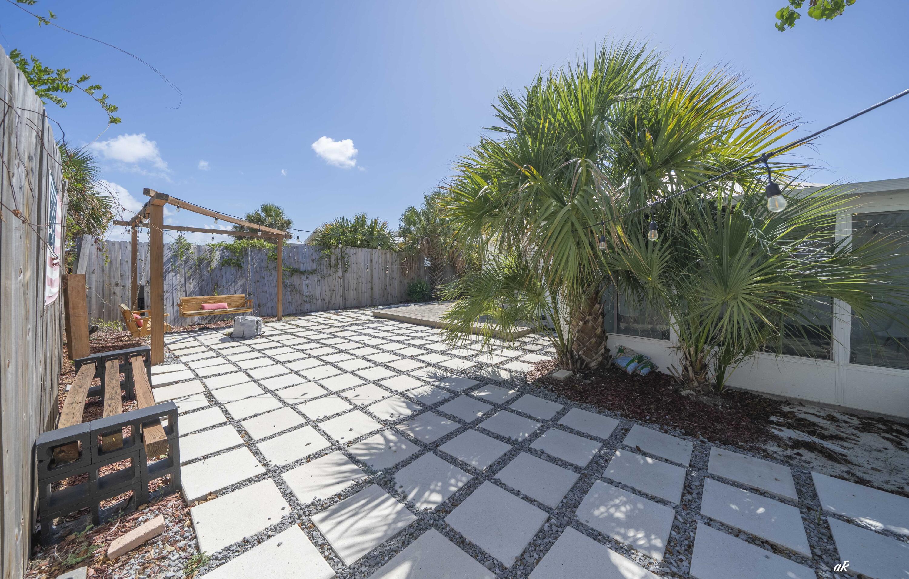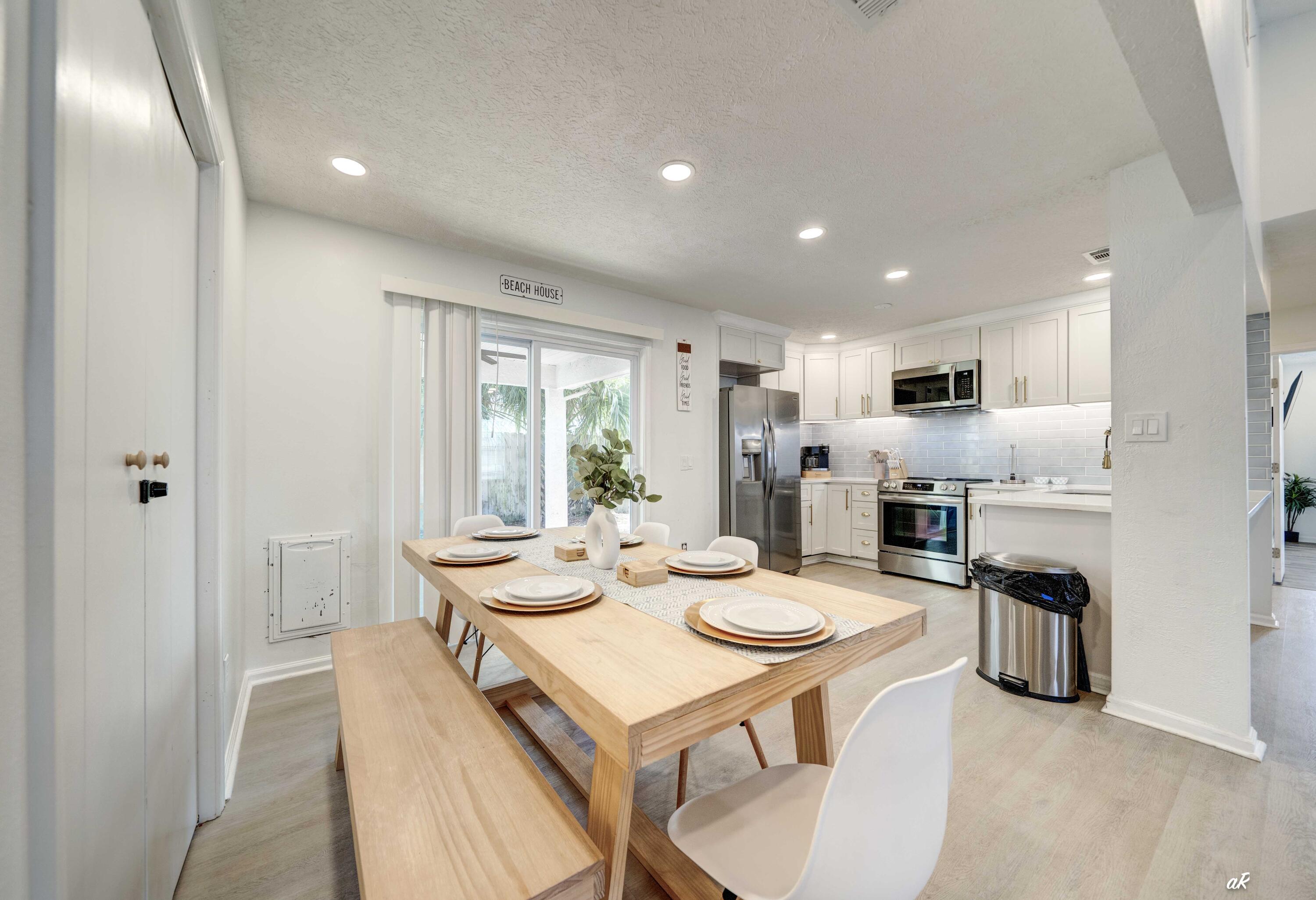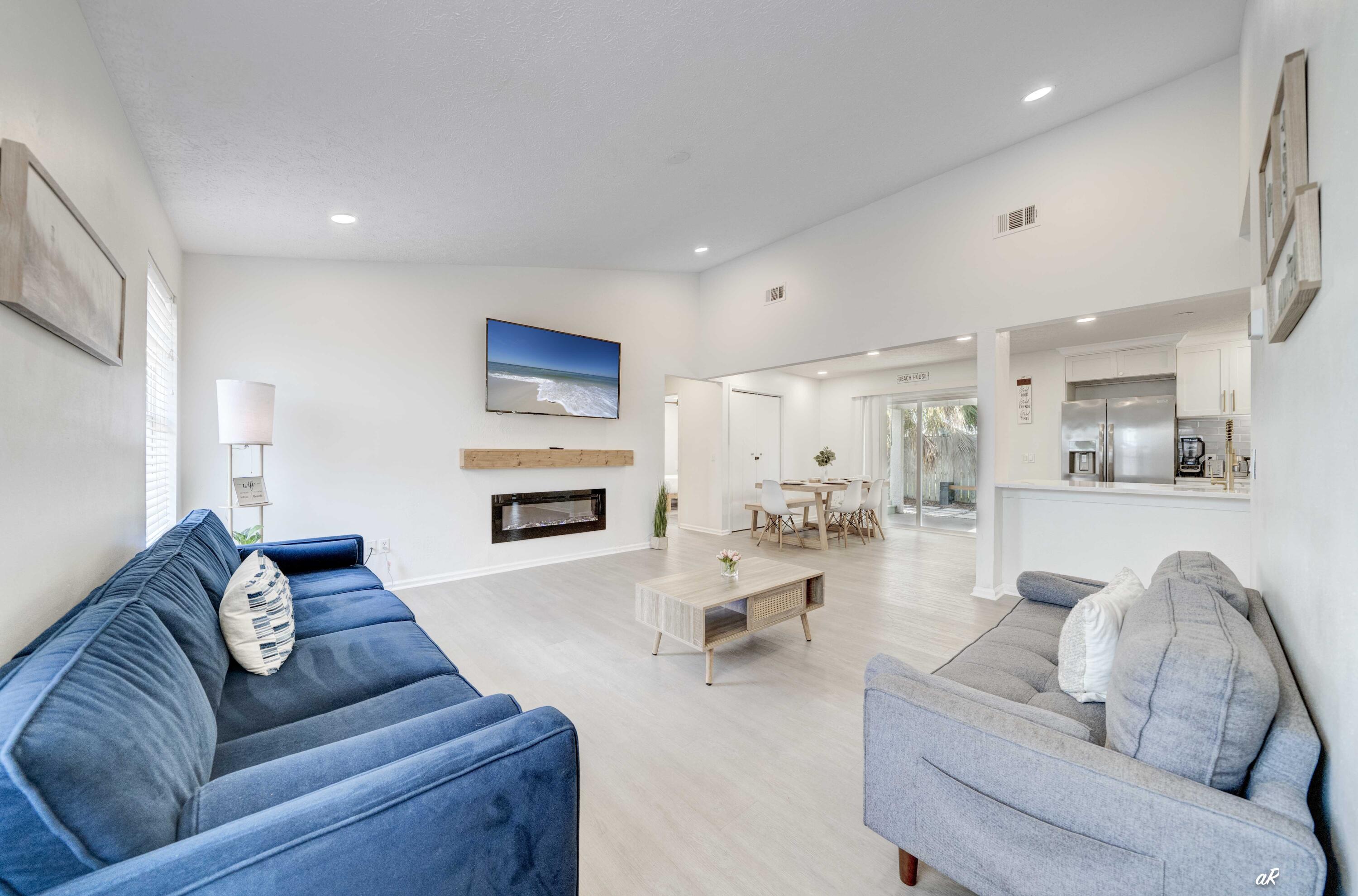 Just steps from the beach, this beautifully updated coastal home offers the perfect blend of comfort, style, and investment potential. Inside, you'll find a bright open floor plan with luxury vinyl plank flooring, modern fixtures, and an inviting layout ideal for entertaining or relaxing after a day by the water. The kitchen boasts sleek countertops, updated appliances, and plenty of storage, while each bedroom provides a peaceful retreat with beachy charm. Outside, enjoy the ocean breeze from your private patio or take a short stroll to the sand and surf. Whether you're looking for a full-time residence, a vacation getaway, or a high demand short-term rental opportunity, this property delivers it all. With its prime location, modern updates, and income producing potential, this home is truly a rare coastal gem.