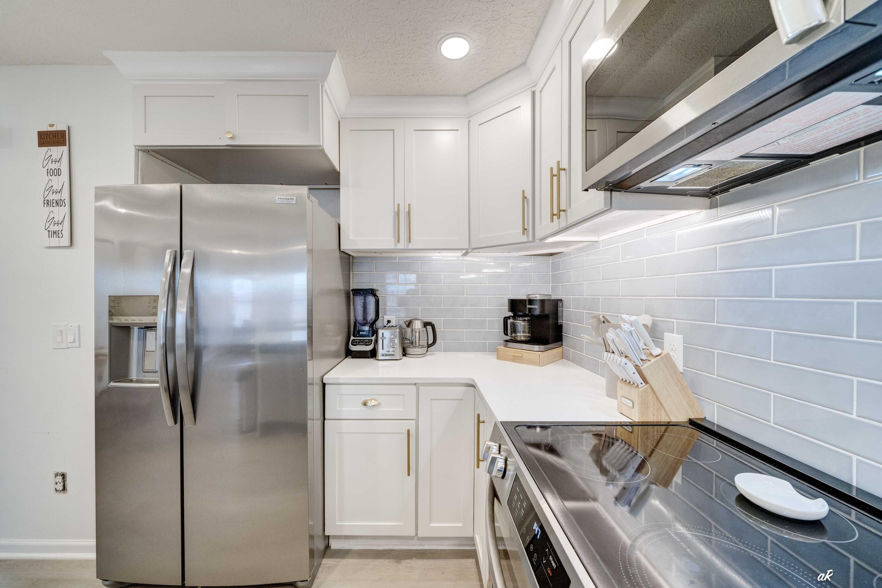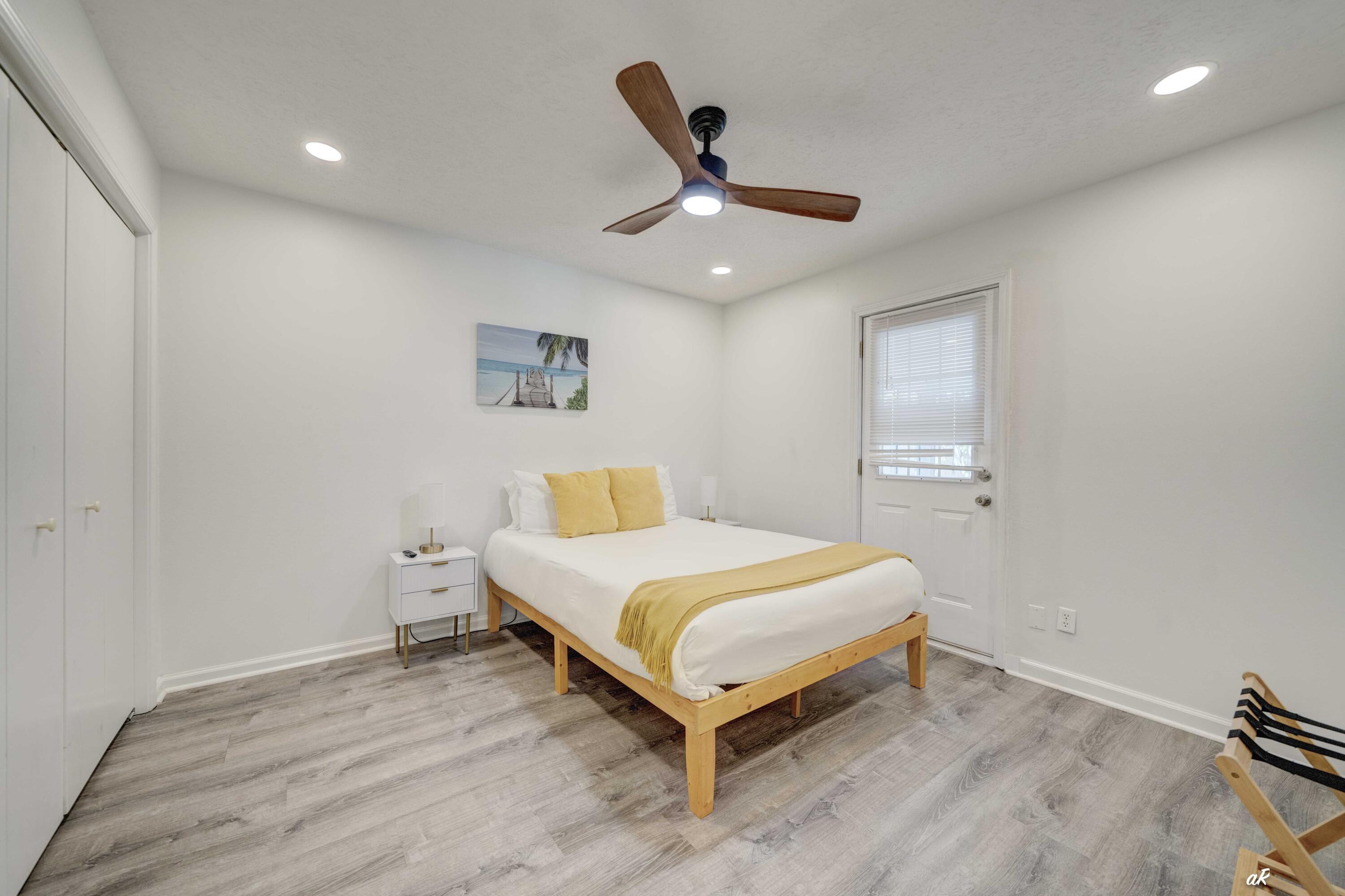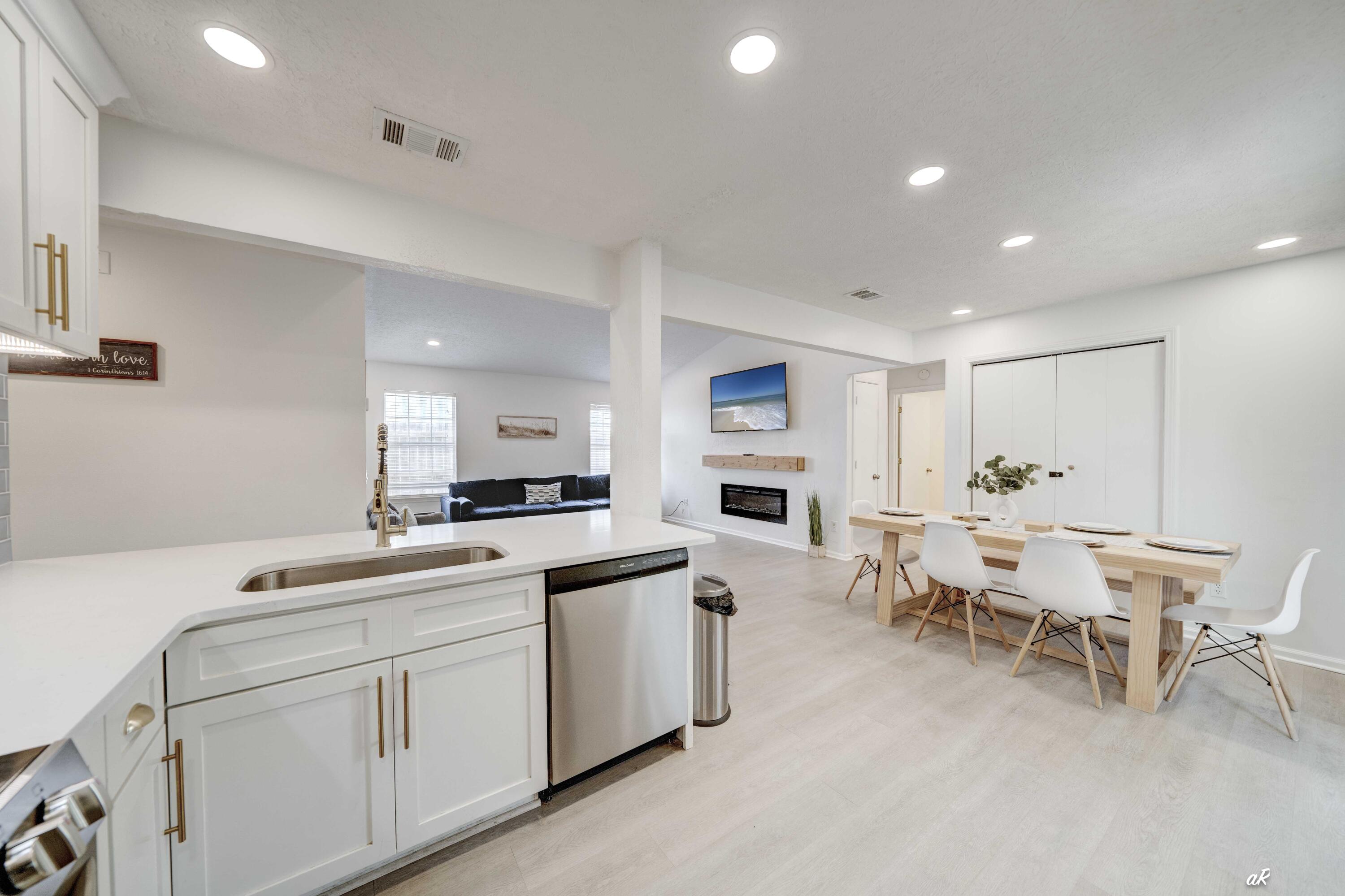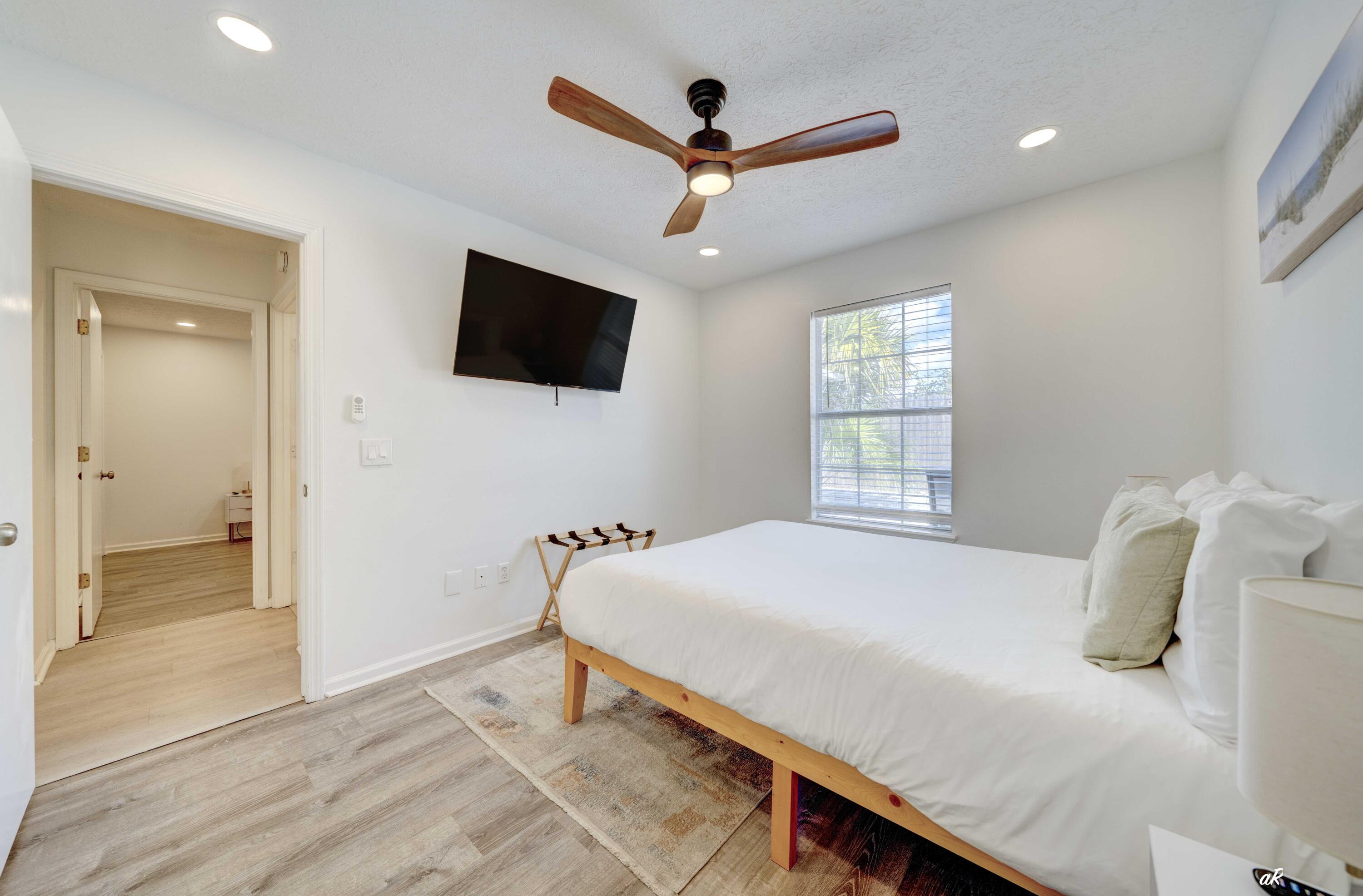 Just steps from the beach, this beautifully updated coastal home offers the perfect blend of comfort, style, and investment potential. Inside, you'll find a bright open floor plan with luxury vinyl plank flooring, modern fixtures, and an inviting layout ideal for entertaining or relaxing after a day by the water. The kitchen boasts sleek countertops, updated appliances, and plenty of storage, while each bedroom provides a peaceful retreat with beachy charm. Outside, enjoy the ocean breeze from your private patio or take a short stroll to the sand and surf. Whether you're looking for a full-time residence, a vacation getaway, or a high demand short-term rental opportunity, this property delivers it all. With its prime location, modern updates, and income producing potential, this home is truly a rare coastal gem.