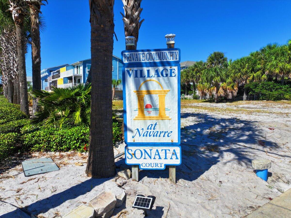 From Highway 98 go south to Navarre Beach, turn right on Gulf Blvd, then turn left on Sonata Court, veer to left, property is on the left