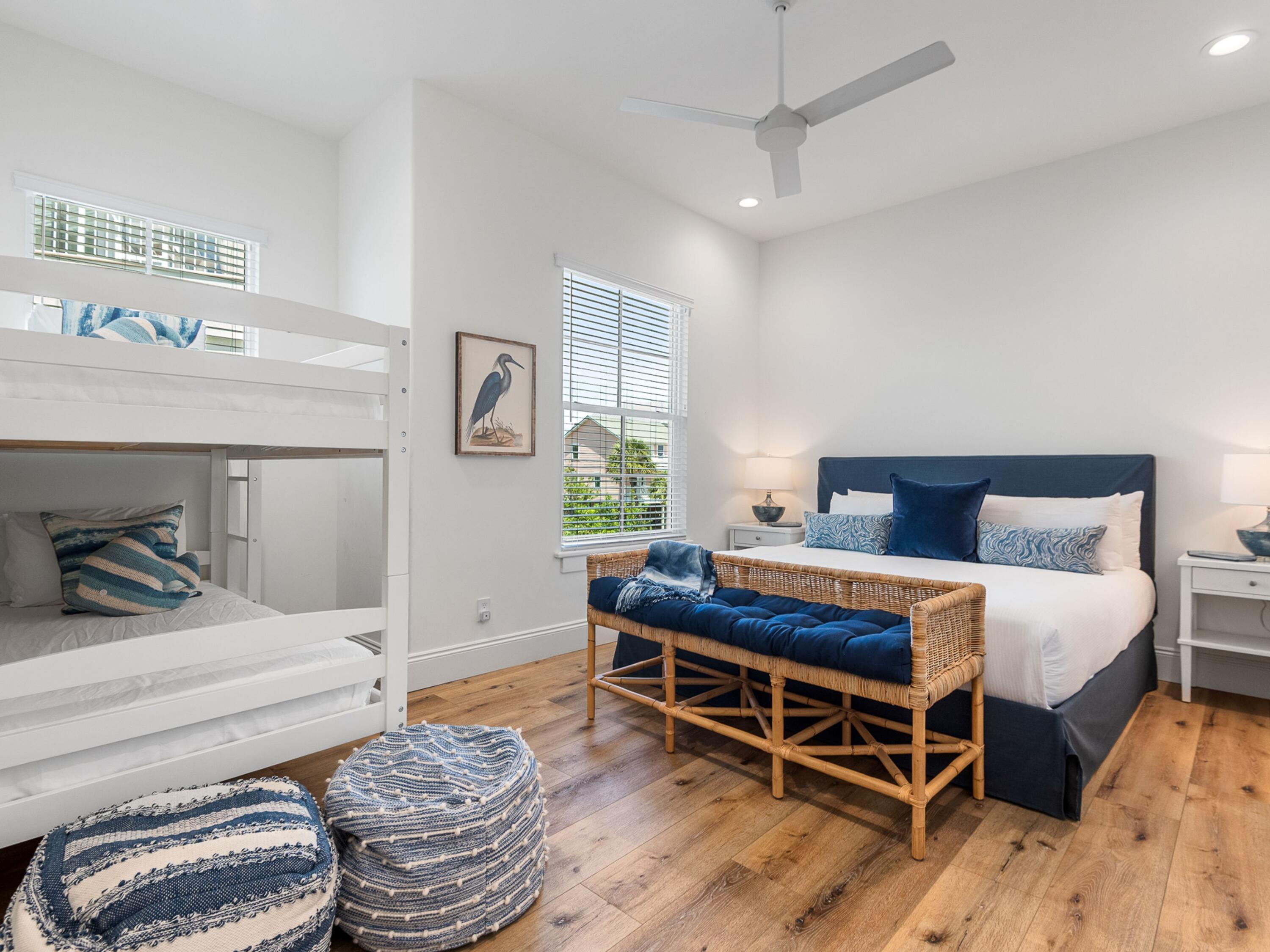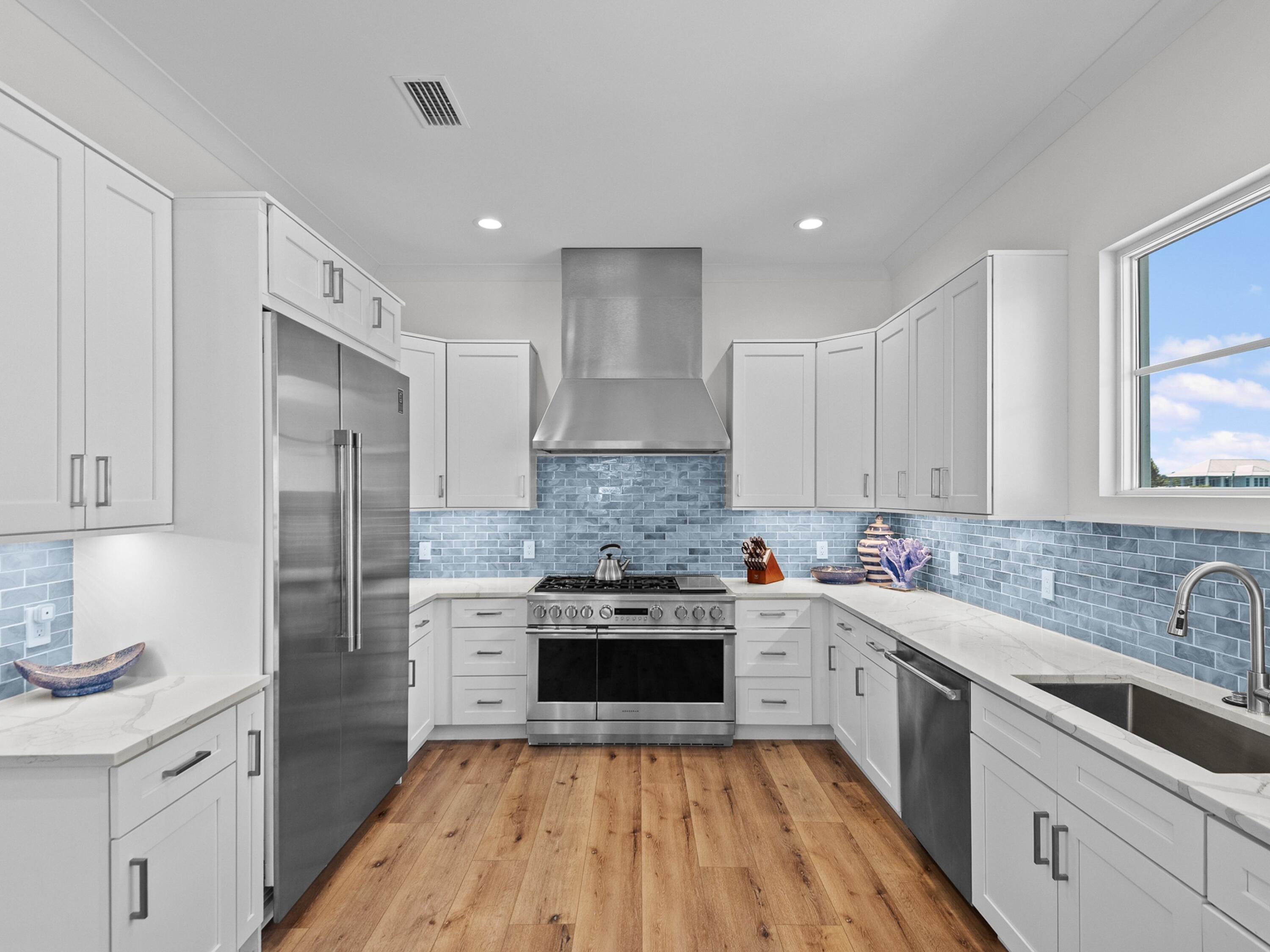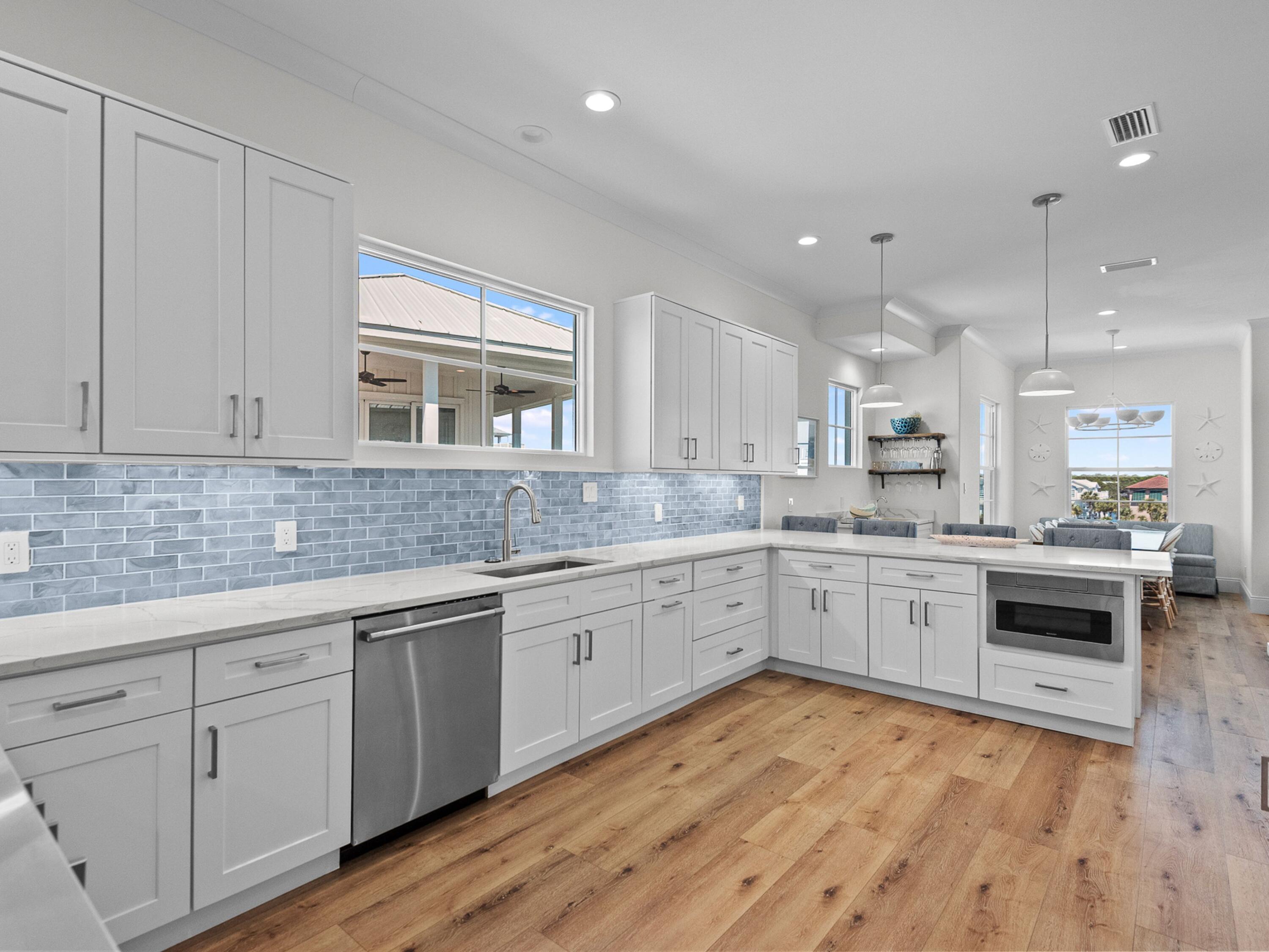 Welcome to 50 Camelot Lane, a masterfully designed four-story coastal sanctuary nestled south of 30A within the exclusive Dalton Place enclave. Completed in 2023, this home offers five spacious bedrooms and five-and-a-half baths ideal for both entertaining and relaxed coastal living. Ascending to the fourth-floor terrace, you're met with panoramic vistas of the Gulf of Mexico and Eastern Lake, a perfect backdrop for sunset soirees or morning reflections. Inside, an elevator serves the first three floors, and the open-plan layout is filled with natural light, enhancing the modern finishes and thoughtful craftsmanship. Dalton Place invites an elevated lifestyle, complete with a private pool and clubhouse ideal for leisure and connection to a vibrant community. Located just moments from the famed 30A corridor, this property offers both serene seclusion and convenient access to world-class dining, white-sand beaches, and the cultural allure of east 30A.