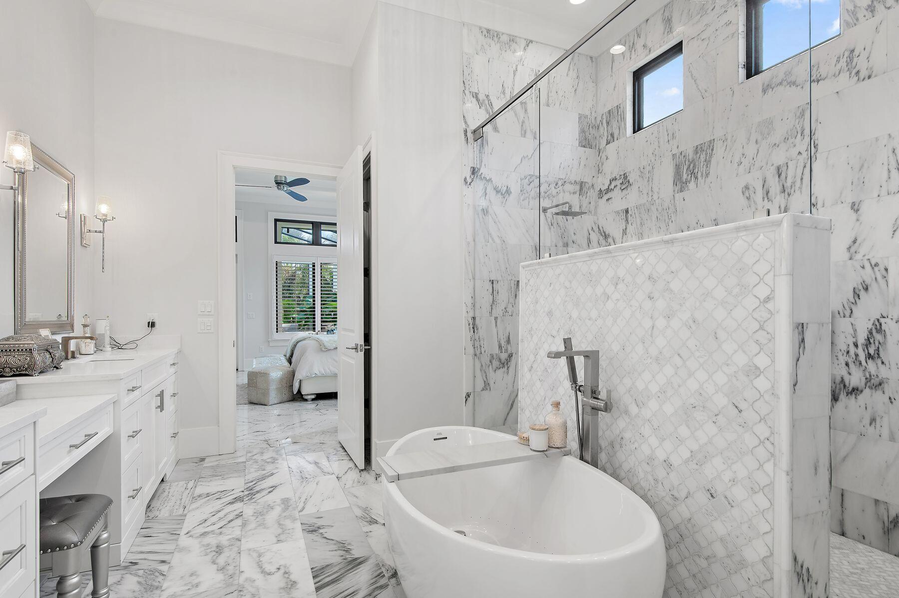 This remarkable Burnt Pine residence offers an unparalleled lifestyle of space, luxury, and comfort. Designed for both entertaining and everyday living, the home is distinguished as the only property in the community with a five-car garage, complete with air conditioning and custom flooring -- ideal for a car enthusiast or collector.From the moment you step inside, your eyes are drawn directly to the sparkling pool and sundeck framed by sliding glass doors, creating an immediate sense of arrival into your own private oasis. The main living area features soaring ceilings, new tile flooring, and a fireplace that anchors the room with warmth and elegance. The gourmet kitchen is equipped with a Wolf stove, Sub-Zero refrigerator, Bosch dishwasher, wine fridge, wet bar, and new quartz island, making it a chef's dream. Every bedroom enjoys the privacy of an ensuite bath, while the primary suite offers a fireplace and a spacious walk-in closet. A newly added mother-in-law suite enhances the home's versatility, making it perfect for extended family or guests.