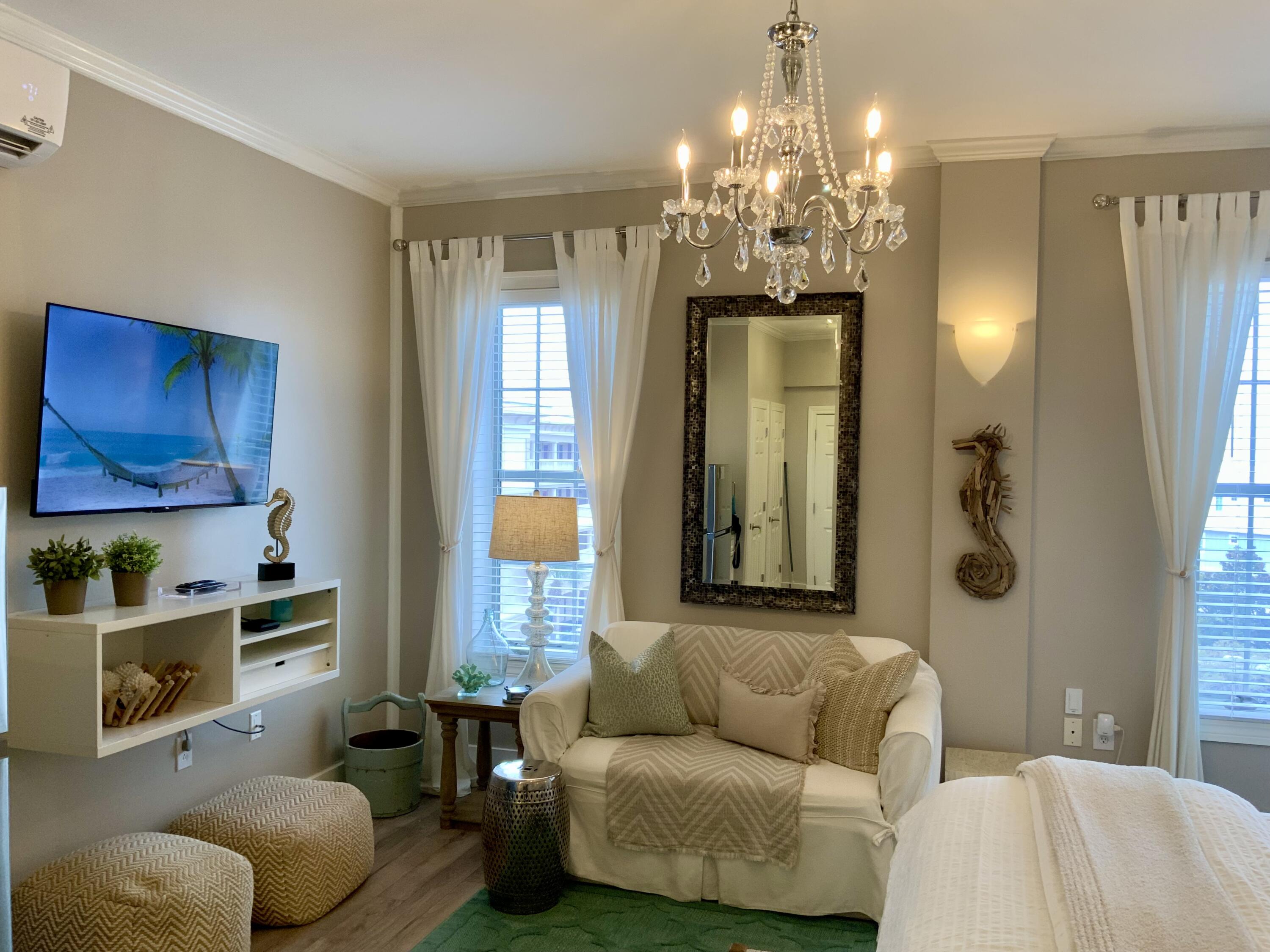 Discover the perfect blend of coastal charm, prime location, and proven income potential with this beautifully maintained top-floor studio, ideally situated along scenic Highway 30A between Rosemary Beach and Alys Beach. Generating nearly $50,000 in annual gross rental income, this property is a turnkey investment and a luxury beach retreat in one. The bright, open floor plan with 10ft ceilings, is thoughtfully designed for comfort and style, featuring a full bath, a kitchenette with a new refrigerator, dishwasher, and microwave, and coastal-inspired finishes throughout.Located in the Village of South Walton, residents and guests enjoy deeded beach access, a seasonal beach tram, and resort-style amenities including two sparkling pools and relaxing hot tub. The area's vibrant dining, boutique shopping, and entertainment are all within easy walking or biking distance, making this one of the most desirable and convenient spots on 30A.