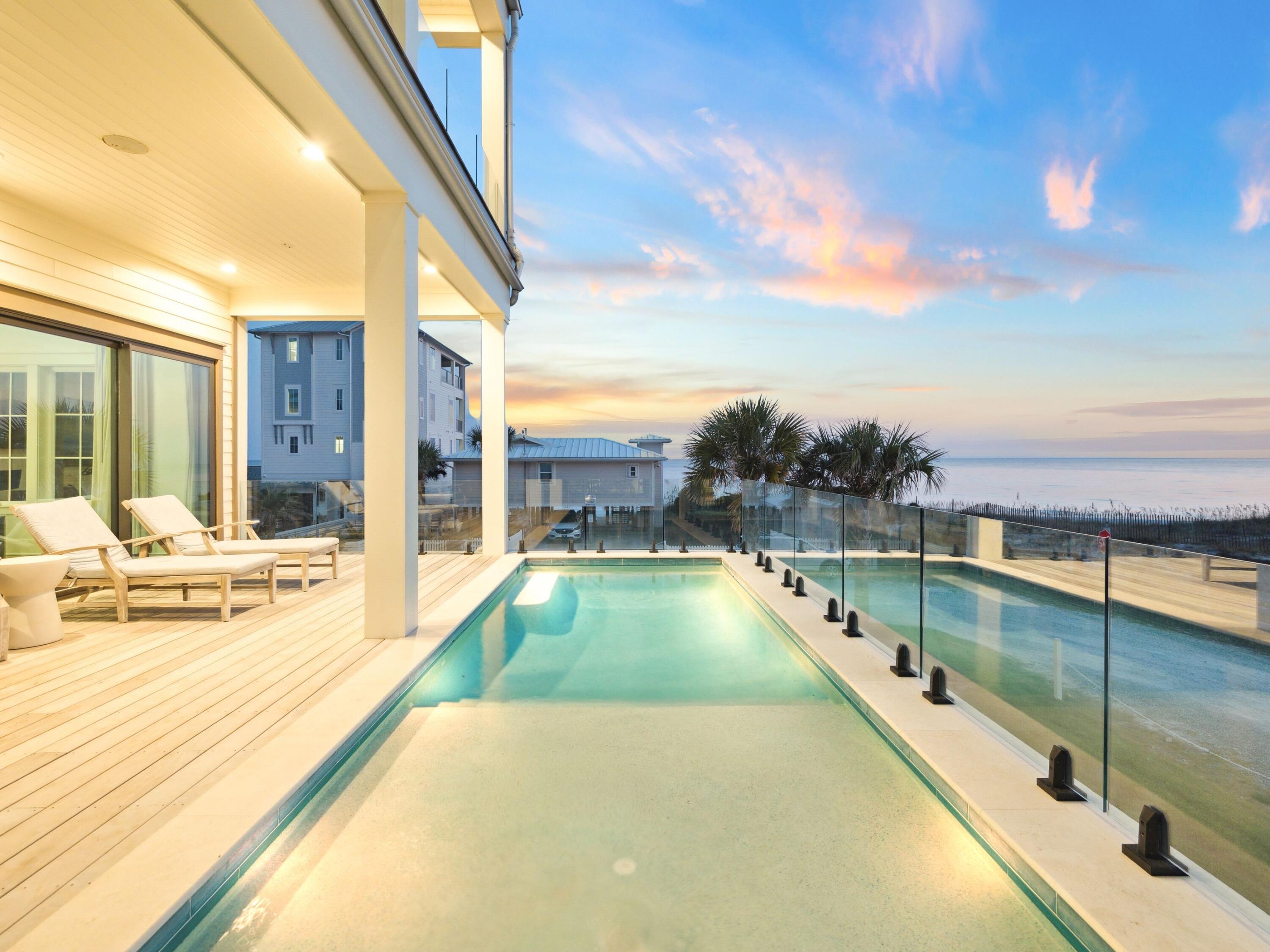 Nestled in an idyllic location overlooking protected dunes with stunning forever Gulf views, 91 Emerald Cove Lane presents an unparalleled opportunity for luxury living. Thoughtfully positioned on a prime corner lot in Inlet Beach, this residence ensures unobstructed vistas of the Gulf from every level, with sweeping views enjoyed from all living spaces. Spanning more than 7,600 square feet across four levels, the home is designed for both grand entertaining and private retreats. A welcoming foyer introduces the main level, featuring a spacious primary suite, a billiard and game room, and a private owner's lockout. The second floor serves as the heart of the home, where expansive living and dining areas flow seamlessly to a resort-style pool terrace. A gourmet kitchen with crisp white cabinetry, a statement island, state-of-the-art appliances, and custom lighting anchors the space, while a full laundry room adds convenience.