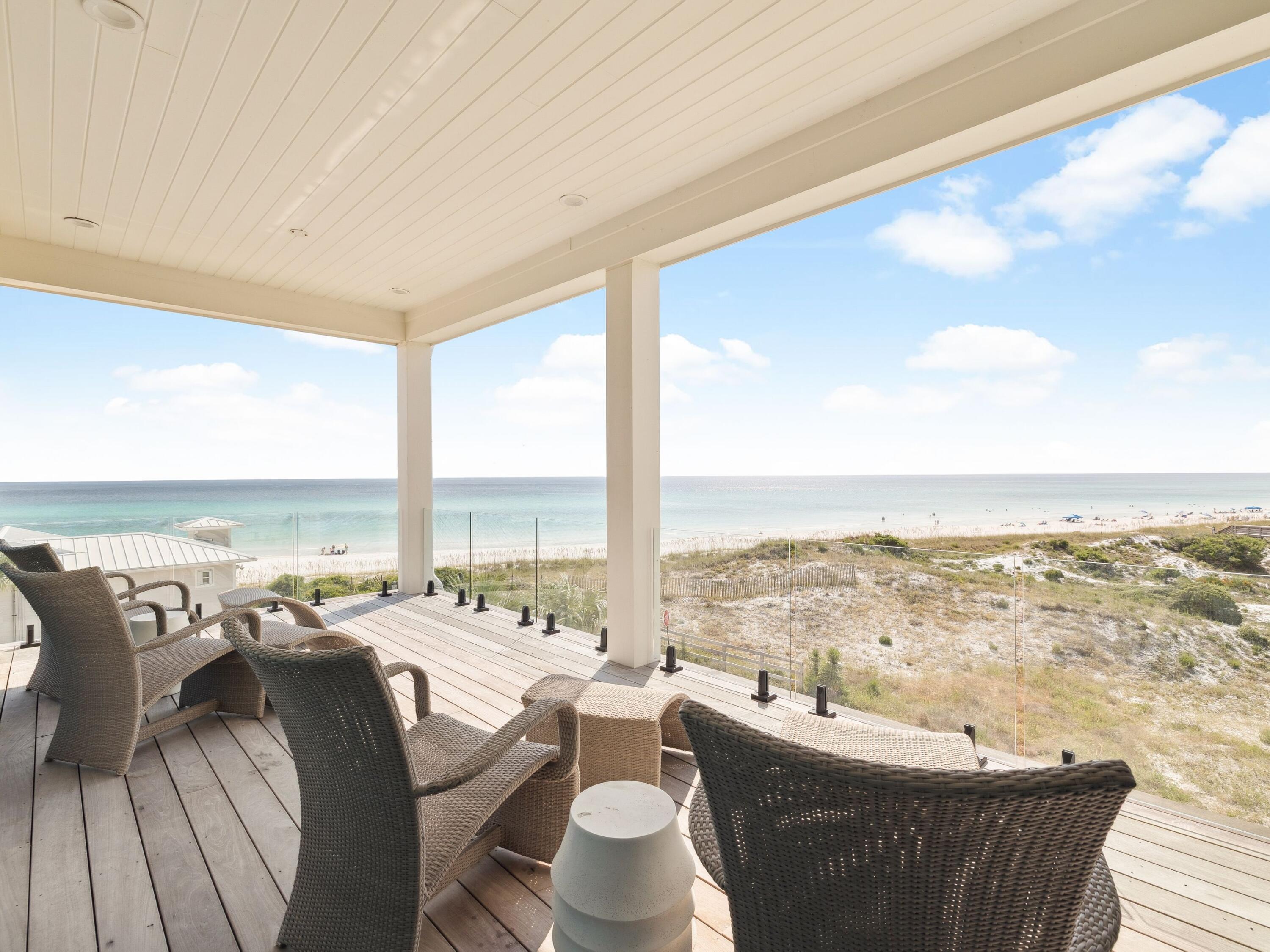 With six bedrooms, six and a half baths, covered balconies on every floor, and refined details such as crown molding and wood flooring throughout, this home blends modern luxury with timeless coastal beauty. Just steps from the beach walkover and moments from 30A's best dining, boutique shopping, and entertainment, 91 Emerald Cove Lane defines the pinnacle of Gulf-front living.
