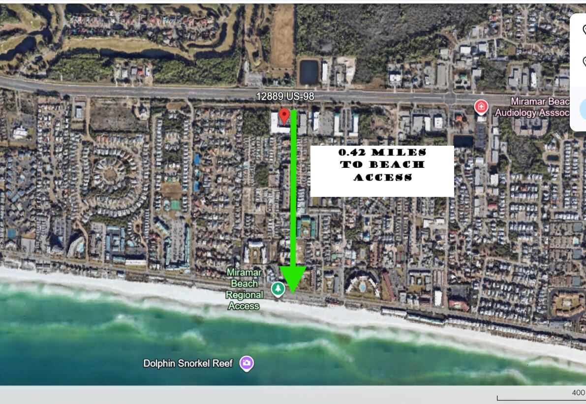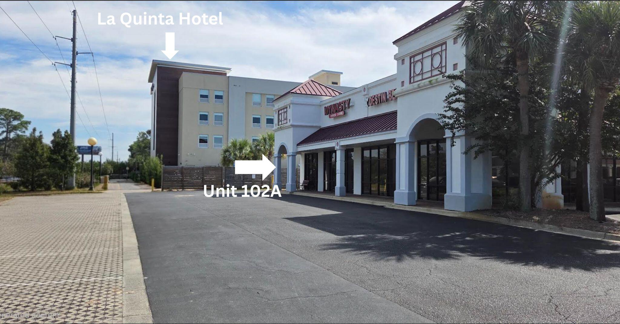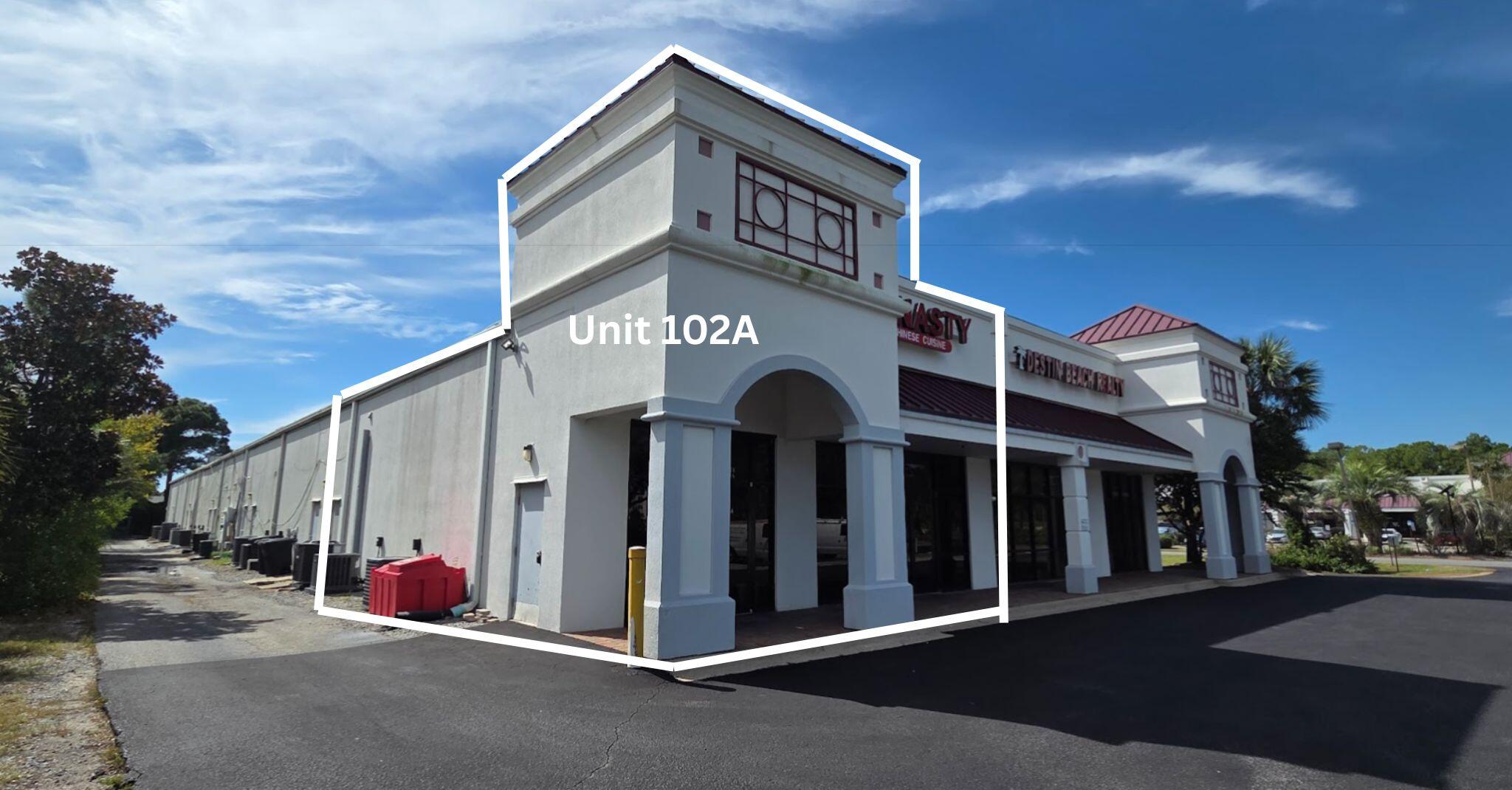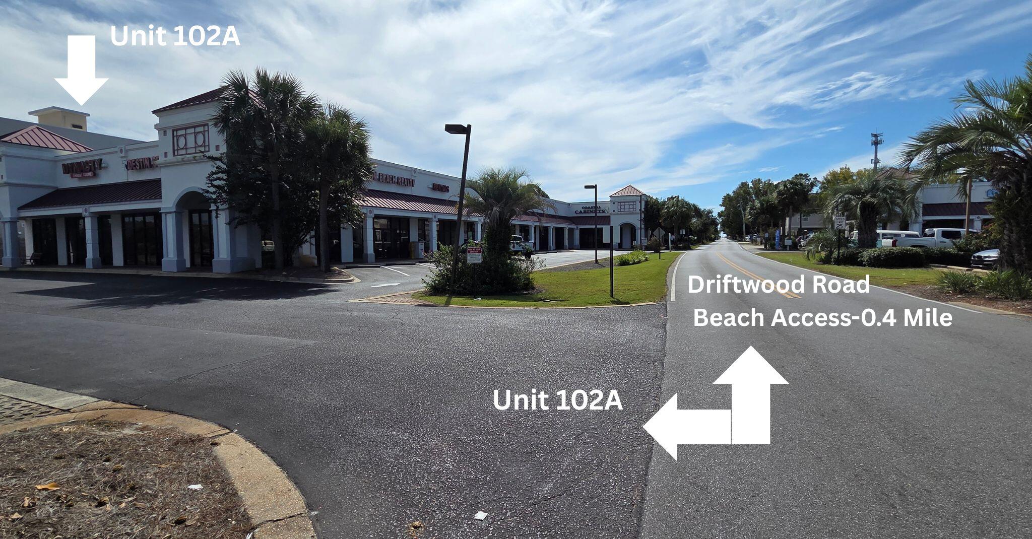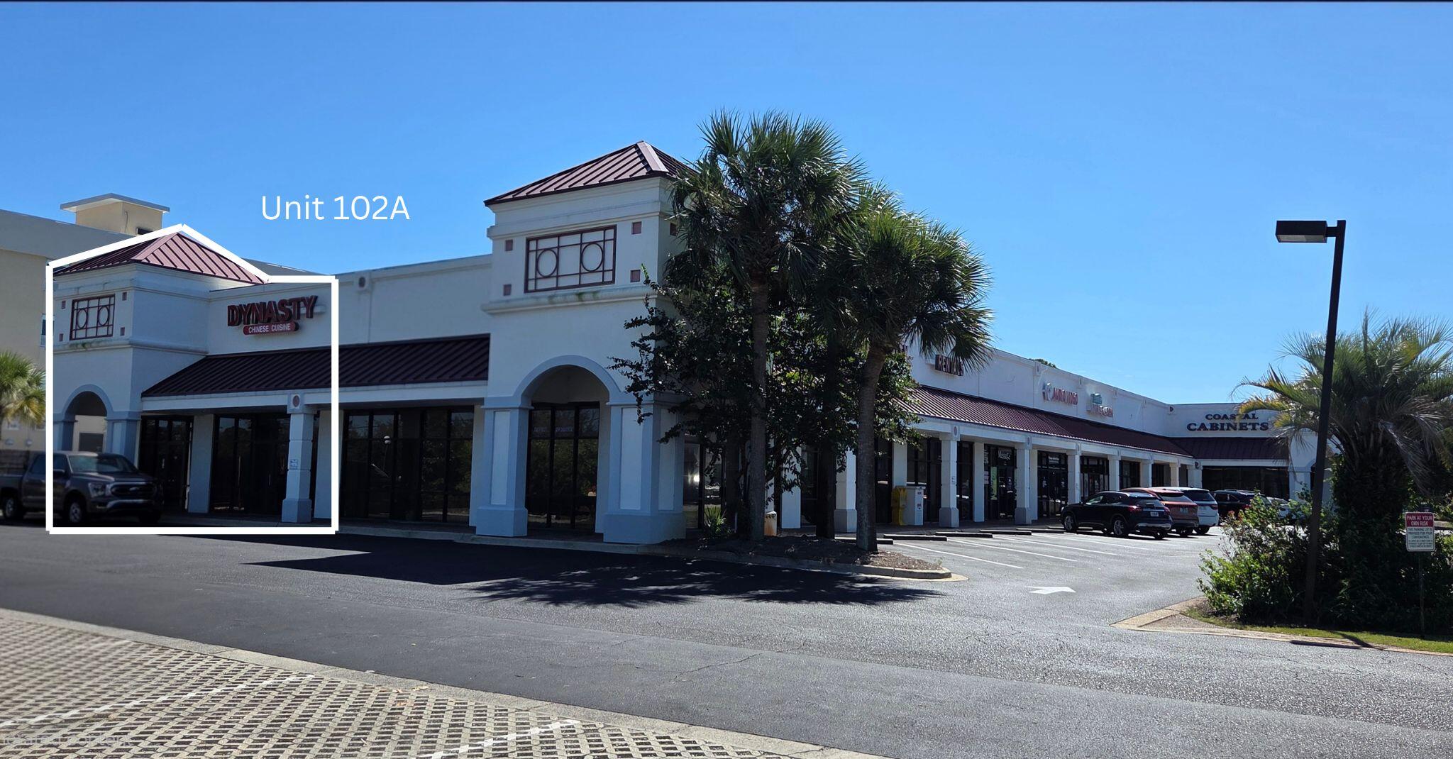From Destin Commons, travel approximately 2.5 miles east on Highway 98 to Miramar Beach. Miramar Plaza is located on the south side of US Highway 98, directly across from McDonald's and the new Botanic Apartments. Unit 102A is the highway-facing unit, currently occupied by Dynasty Chinese Cuisine, located on the left side within Miramar Plaza.