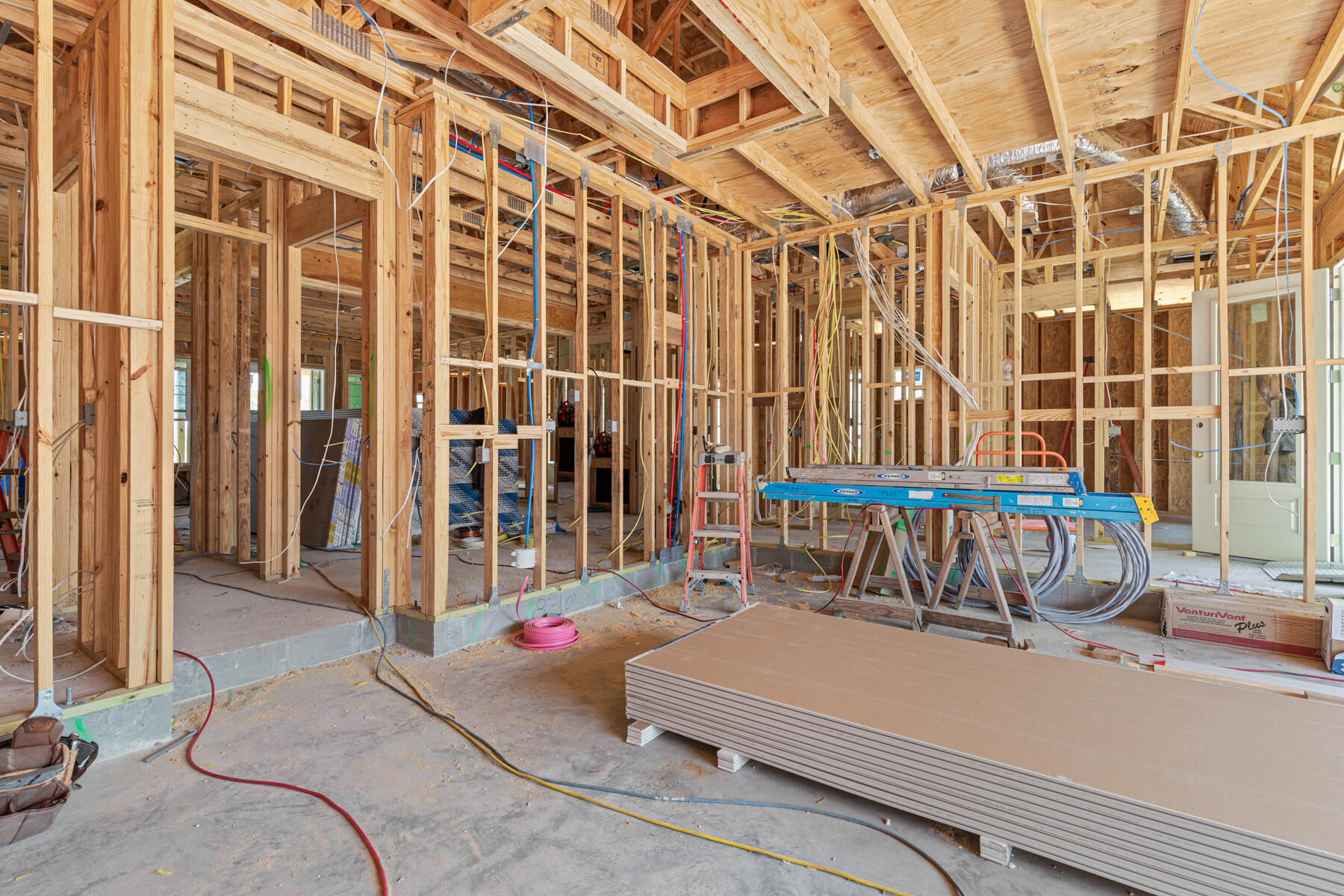 This expanded Brigette plan by Huff Homes is a beautifully designed 4-bedroom, 3.5-bathroom home offering 2,090 square feet of single-story living and estimated to be complete end of Nov-2025.This home seamlessly blends style, comfort, and modern convenience. The open-concept kitchen and living area is thoughtfully appointed with an upgraded Bosch appliance package, including a gas range, vent hood, and microwave drawer. A long kitchen island with additional cabinetry on the back provides ample storage and bar seating, while quartz countertops, luxury vinyl plank flooring, and tiled showers enhance the home's sophisticated aesthetic. Upgraded melamine closet shelving and extra cabinetry in the laundry room offer practical storage solutions throughout. A screened porch with heirloom brick flooring creates the perfect outdoor retreat, while a gas stub just outside the porch makes grilling effortless.