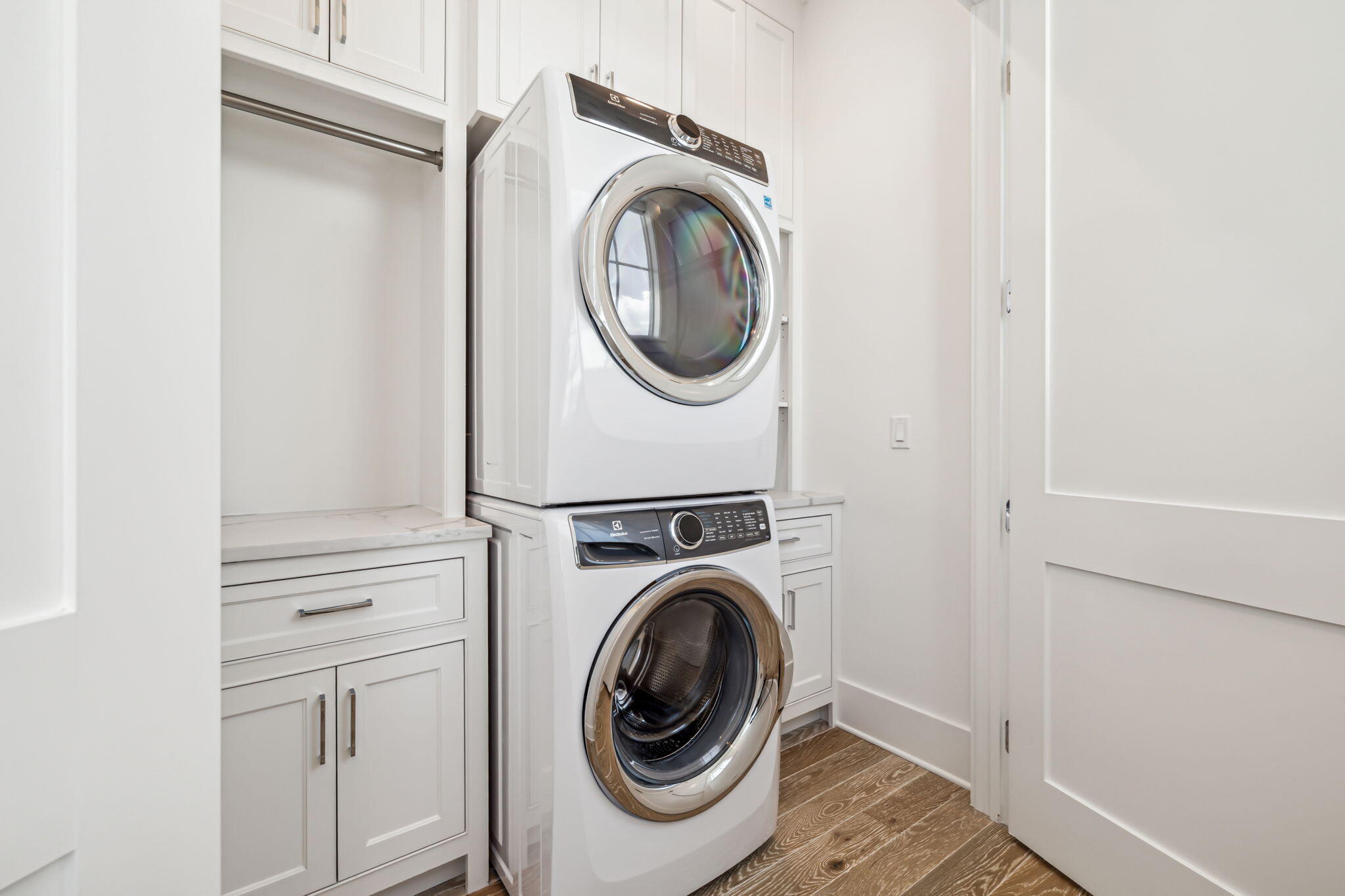 The primary suite is a serene retreat, featuring two large custom closets, a washer and dryer conveniently located within the suite, and a spa-inspired bath. Beverage coolers, powered window treatments, and premium finishes are thoughtfully integrated throughout the home.