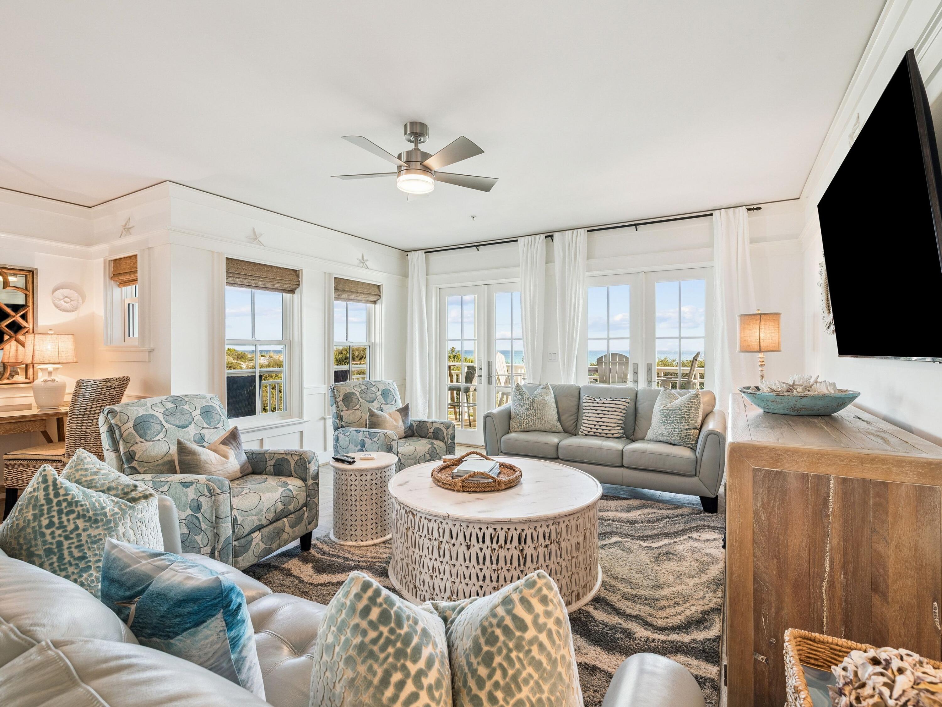 Perched above the dunes with panoramic gulf views from every second-floor window, this two-story WaterColor residence offers an extraordinary coastal lifestyle. One of only 22 exclusive beachfront homes in Town Center Beachside, it combines privacy and convenience beside the WaterColor Inn and Beach Club.Fully furnished and fully renovated, the three-bedroom, three-and-a-half-bath home features designer decor, updated bathrooms, and a refreshed entryway that sets a tone of understated sophistication. Natural light floods the open living areas, where elegant finishes and gulf vistas create a serene, inspiring atmosphere. Owners enjoy two dedicated parking spaces, including one enclosed garage, as well as private access to a beachfront pool reserved solely for Town Center Beachside residents.