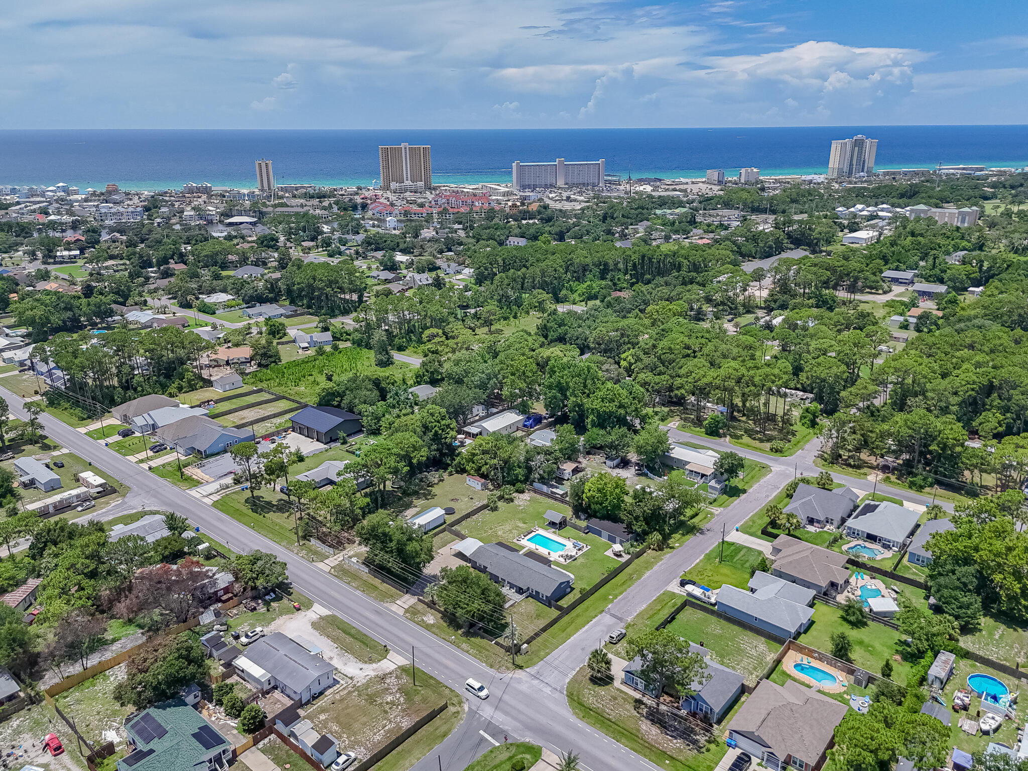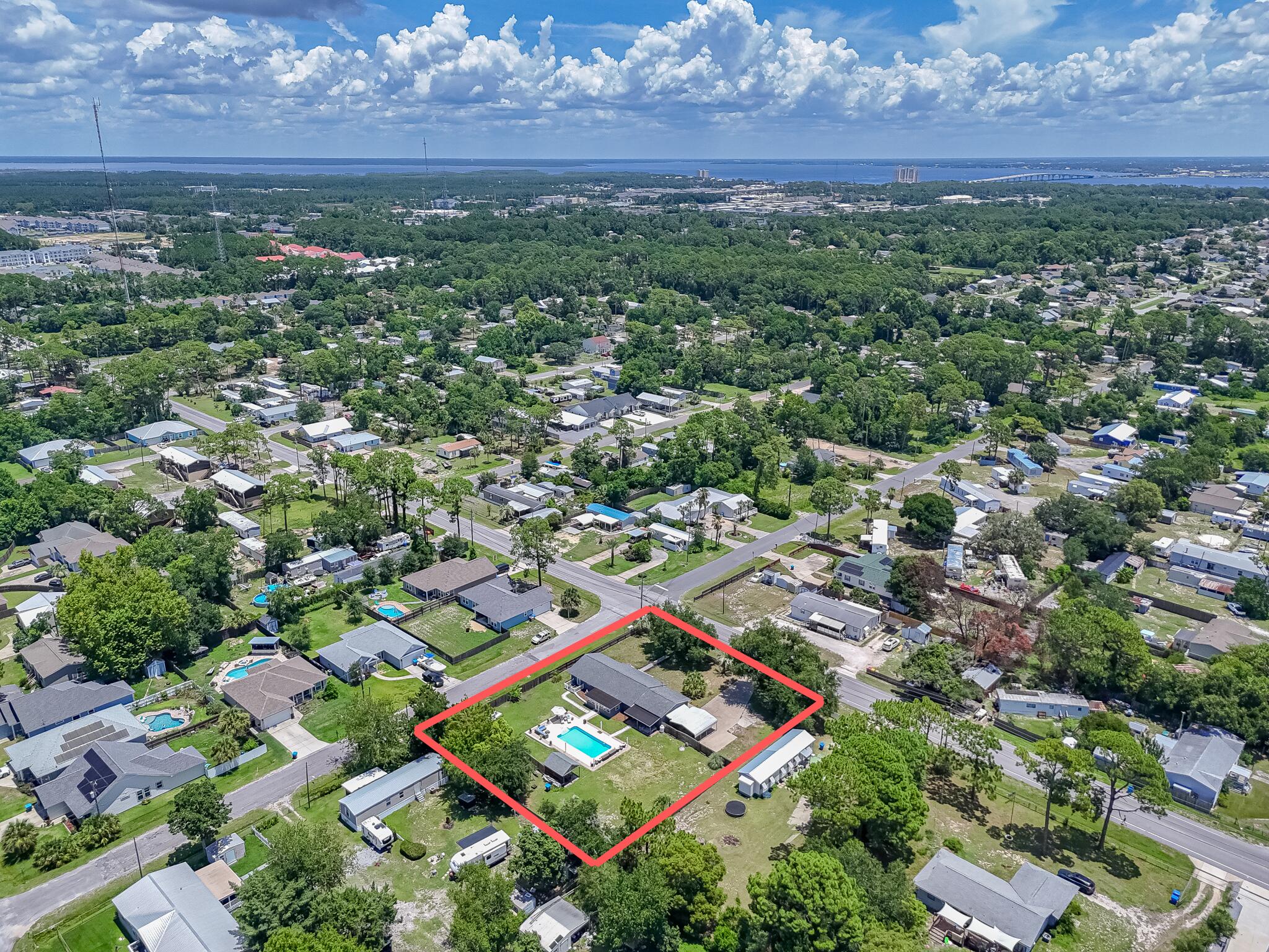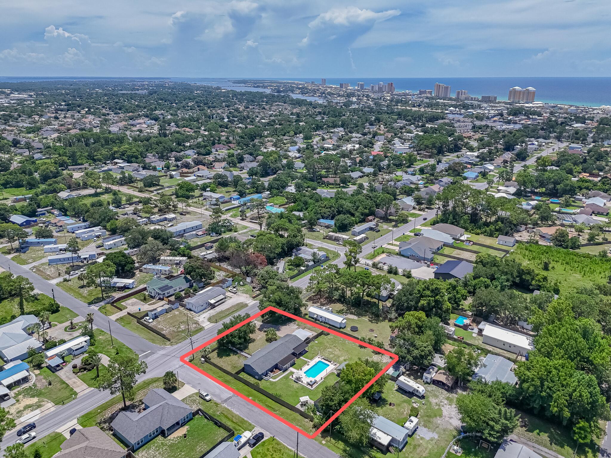 Looking for an updated, single story home with impact windows on over 1/2 acre, close by the beach and move-in or rental ready? Keep reading! No Homeowner Association (HOA), a 20,000 gallon saltwater pool with Glacier cooler to keep you swimming all Summer, tankless hot water heater for those long hot showers, and plenty of room to park your boat or RV, this home is a Panama City Beach oasis! Less rules, more flexibility (no HOA)! There is even enough space for a pickleball court! Included in the property is a 1BR/1BA In-law suite with full kitchen attached to the home with its own entrance, and a massive 800 sqft detached storage building. The backyard is both your private sanctuary and an entertainer's delight with its own grilling pavilion, plenty of room to lounge by the pool, or set up cornhole or a volleyball net for a BBQ with family and friends. A 2nd power pole also services the property and is ready to install your Tesla or RV charging station, or build your own invention, dream, or addition!