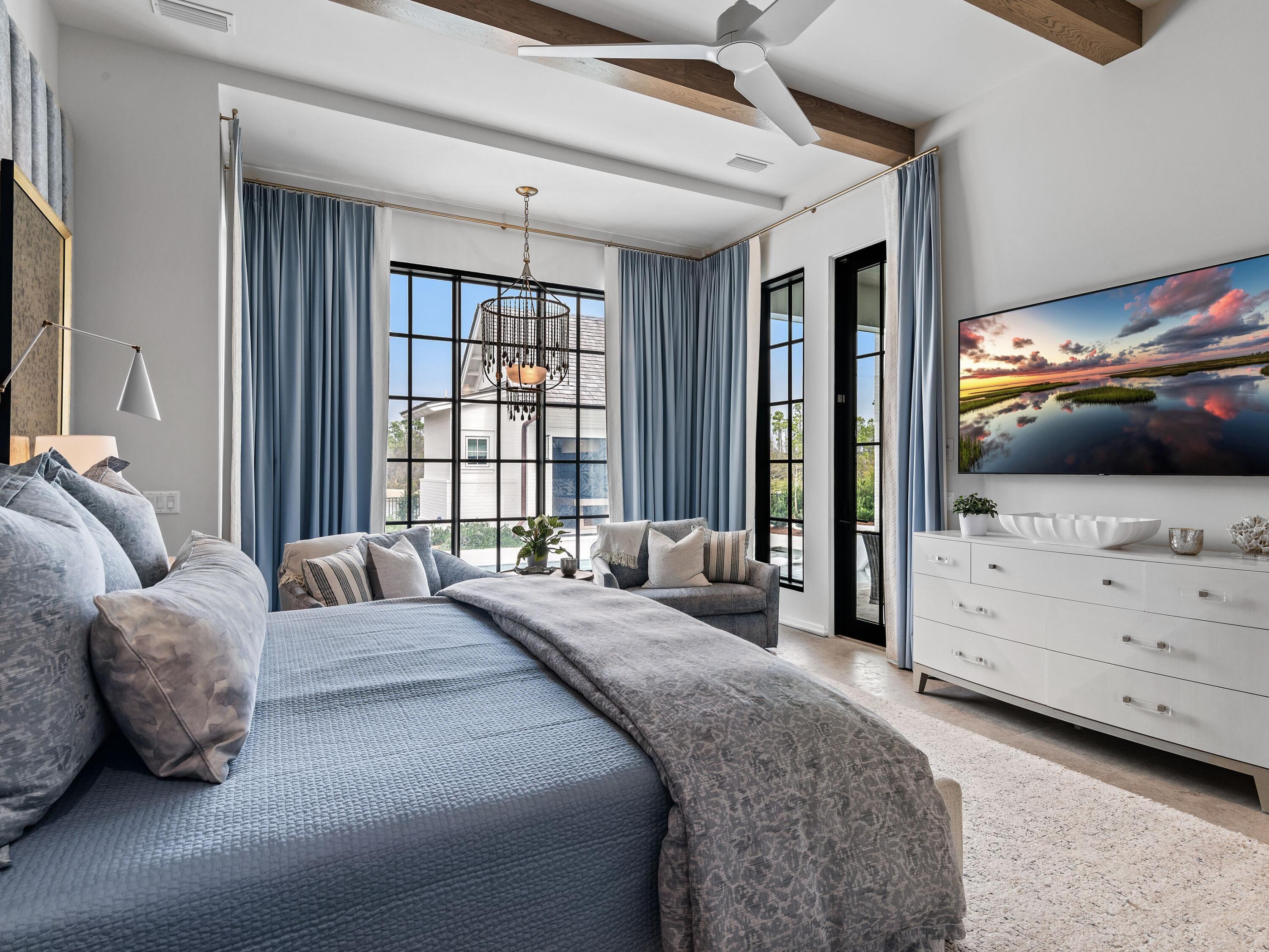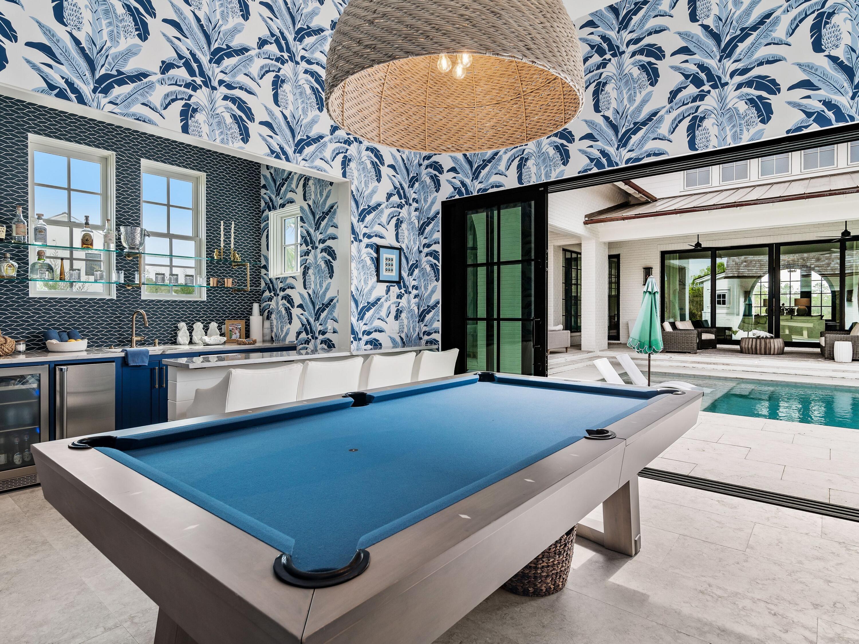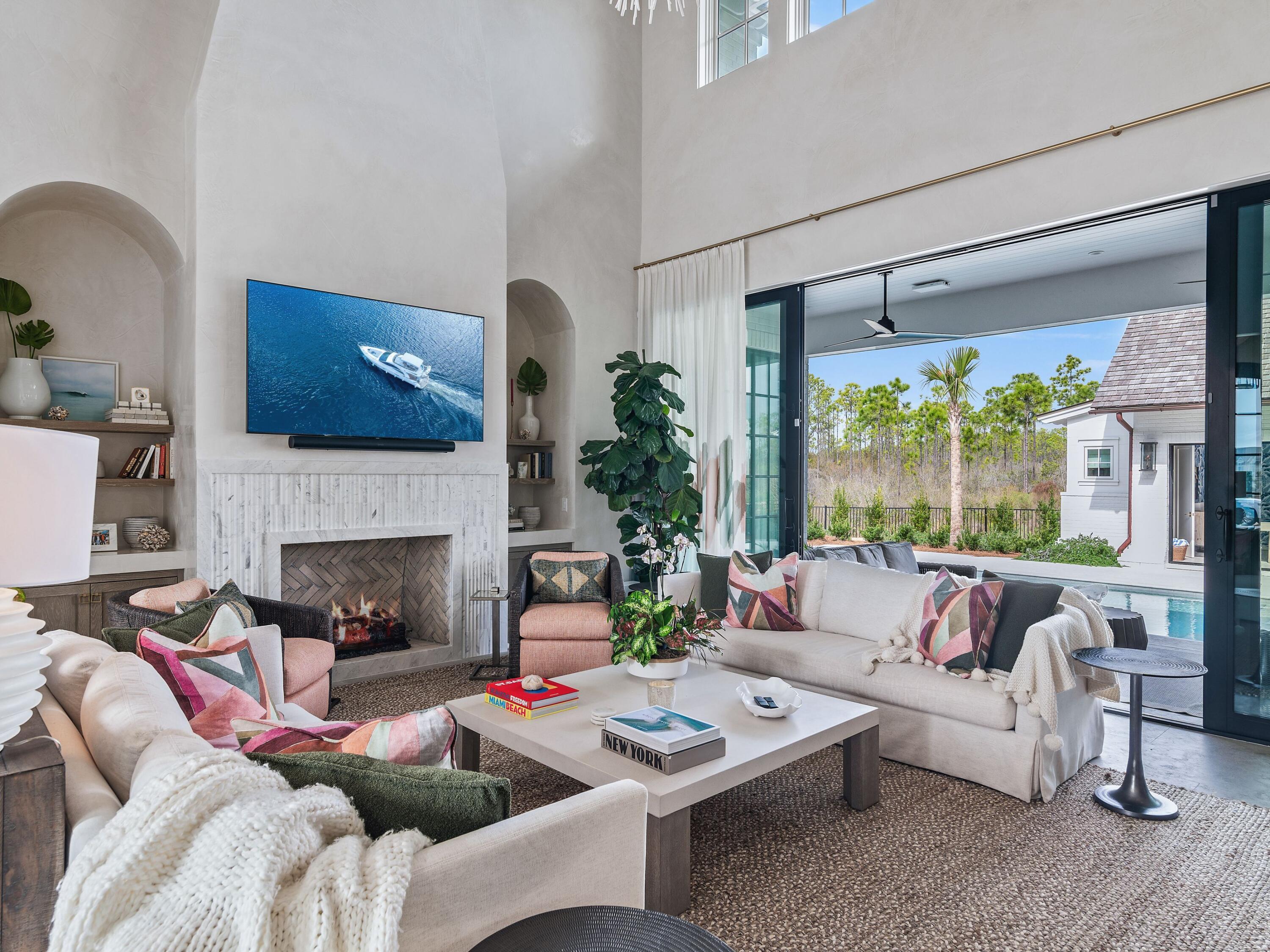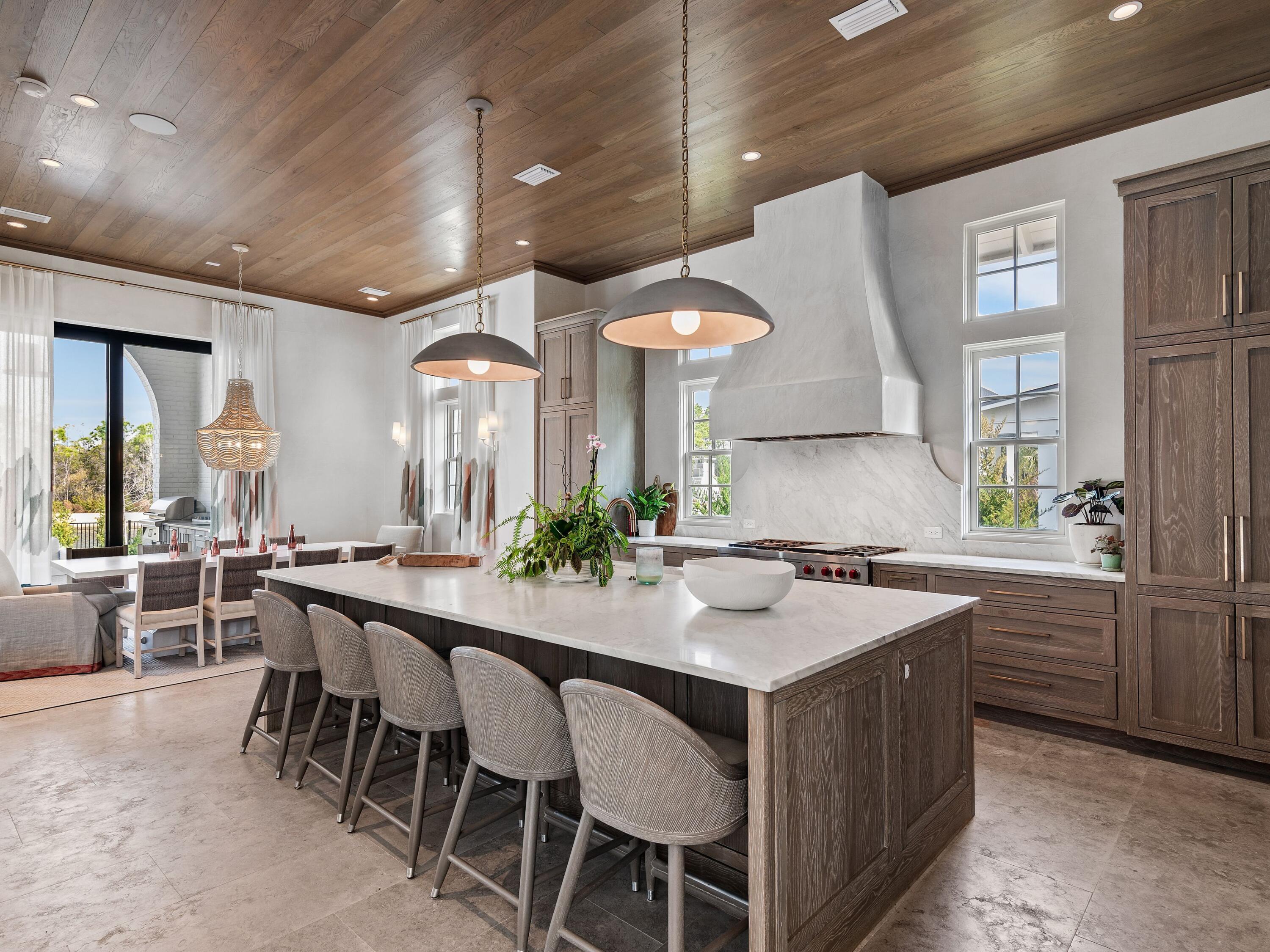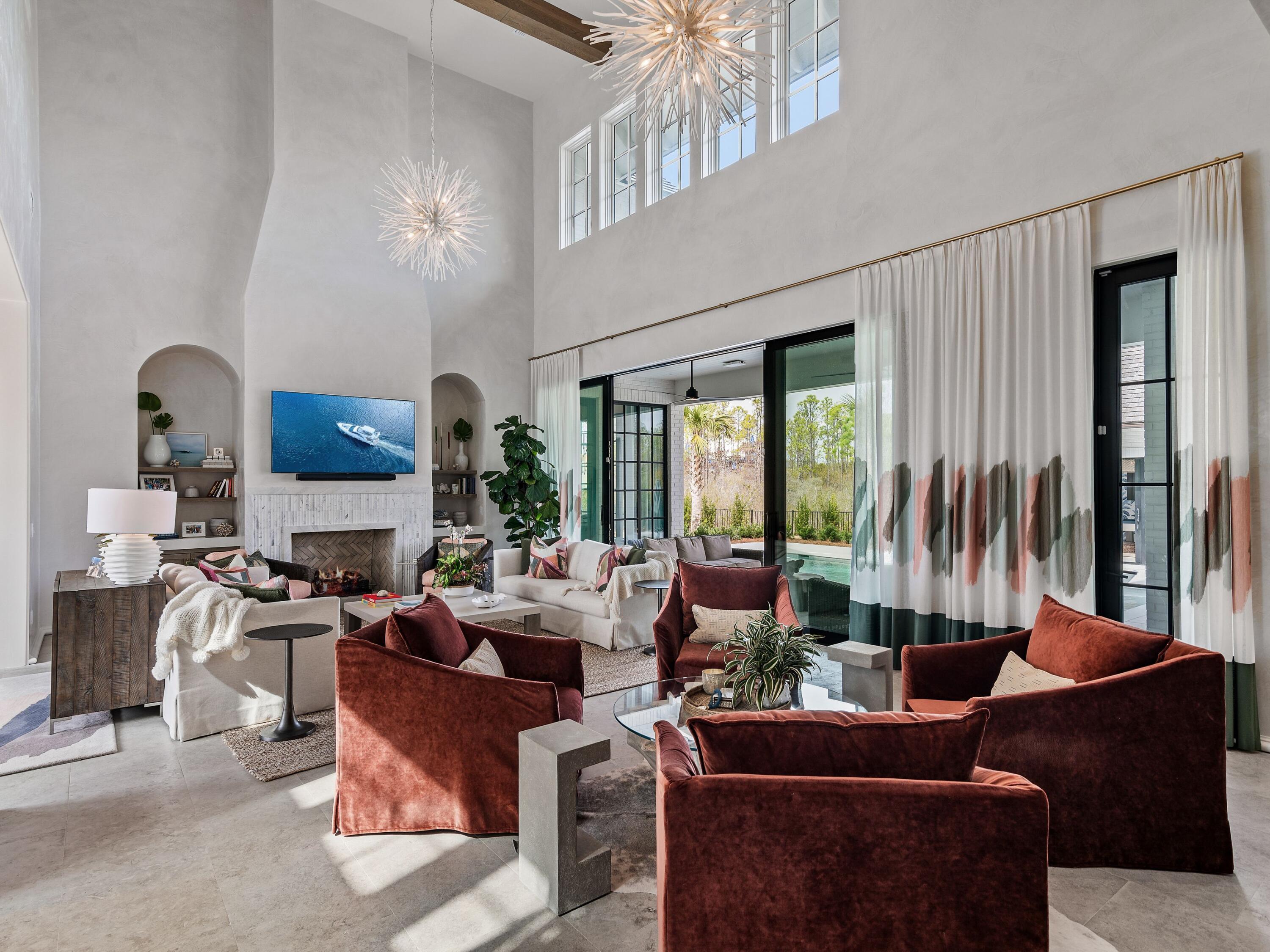 Thoughtfully designed by Greg Jazayeri, expertly built by Regal Stephens, and exquisitely finished and furnished by Tracery Interiors, this four-bedroom, five-and-a-half-bath custom home in Watersound Camp Creek embodies craftsmanship at its highest level. From the moment you enter, every detail reflects artistry and intention -- from the coral stone floors that flow seamlessly indoors and out to the natural marble and quartzite countertops and handcrafted Grimes cabinetry.The primary suite is located on the main level, creating an easy rhythm between private retreat and open gathering space. Expansive sliders blur the line between the living room and the outdoor entertaining area, where dual grills, a spa, and a cabana with pool table set the tone for relaxed sophistication. Distinctive architectural features include all-brick construction with custom Hardie accents, a wood shingle roof, eight Bevolo gas lanterns, and custom steel windows and doors that flood the home with natural light.