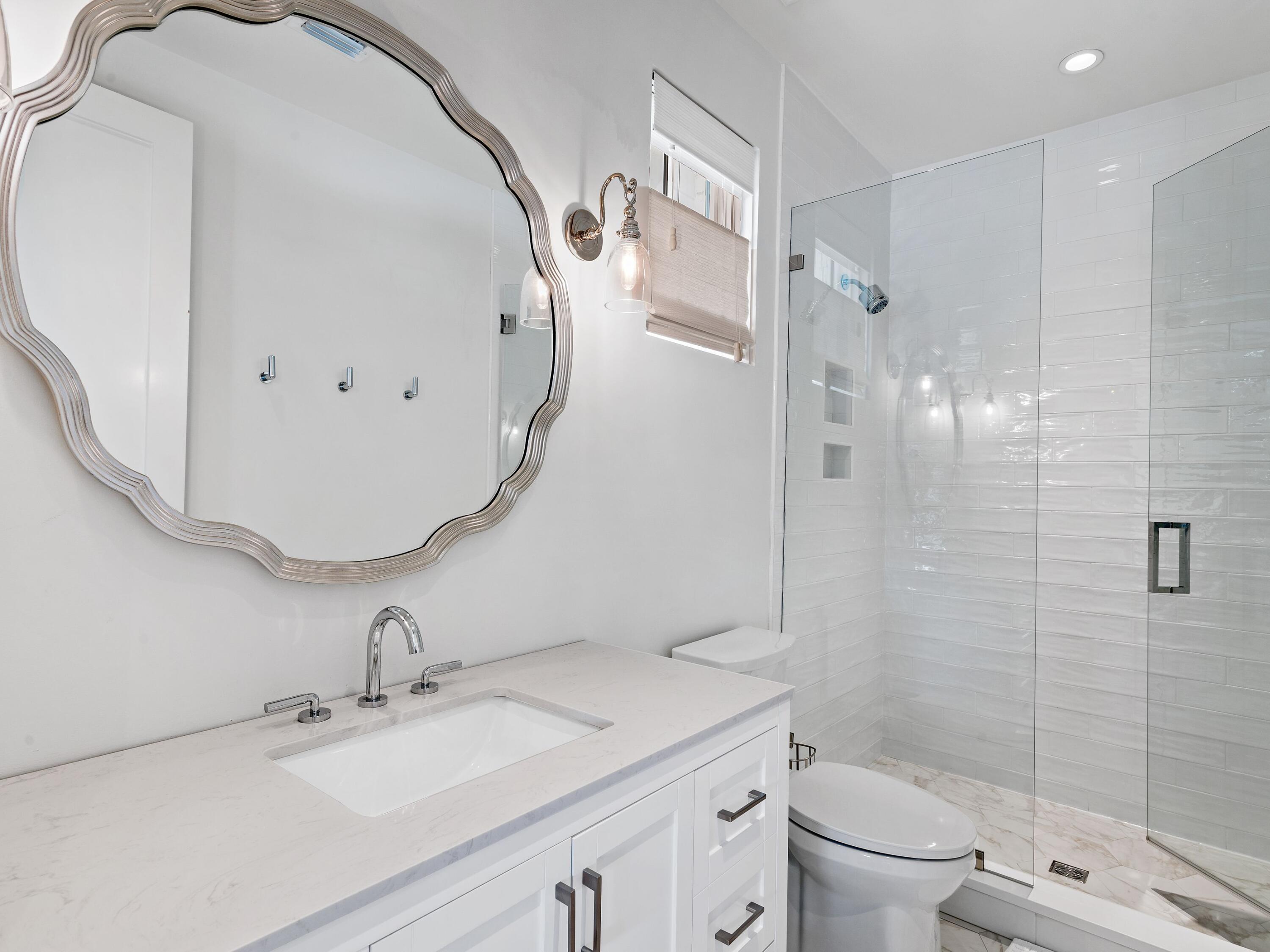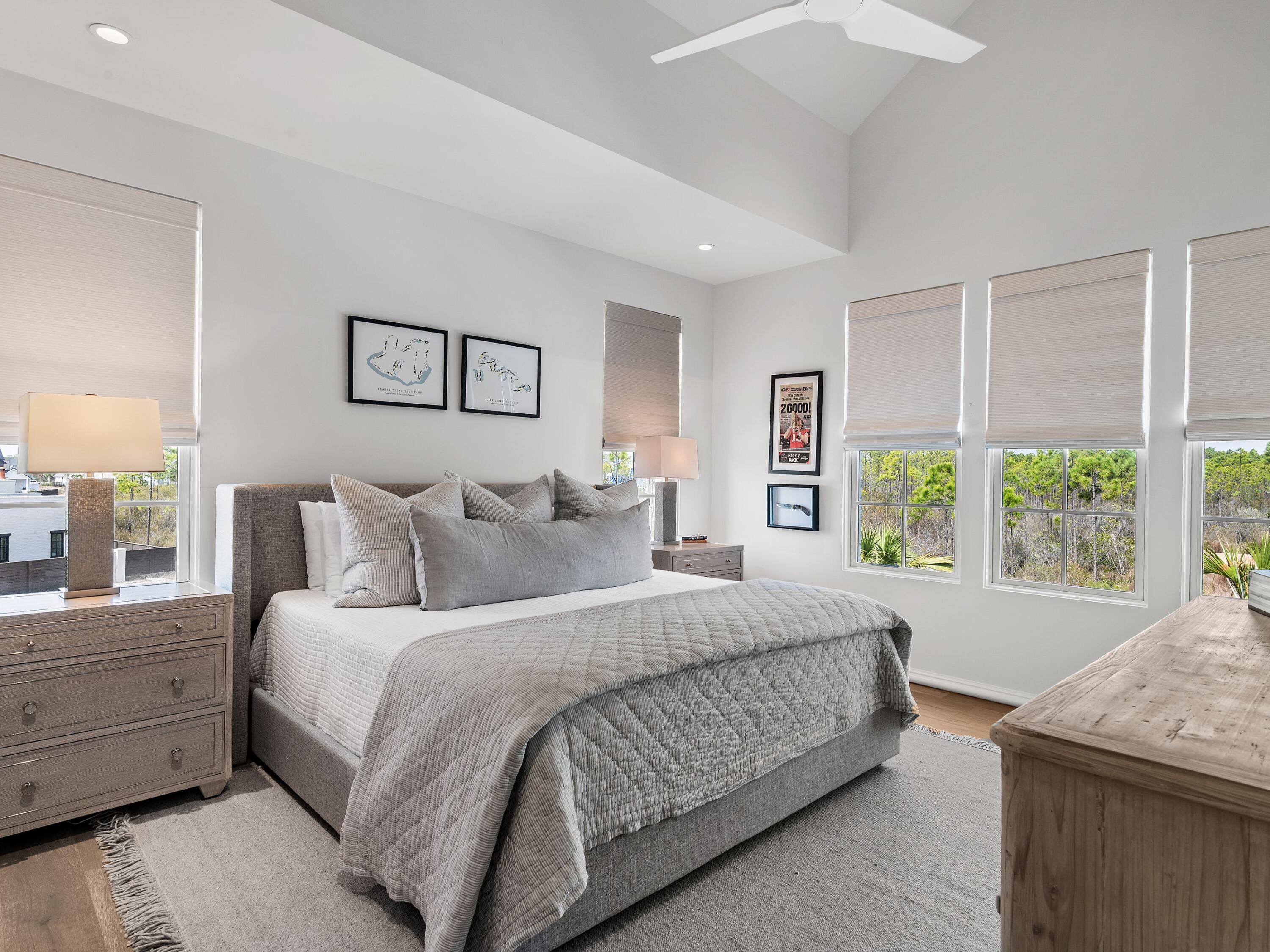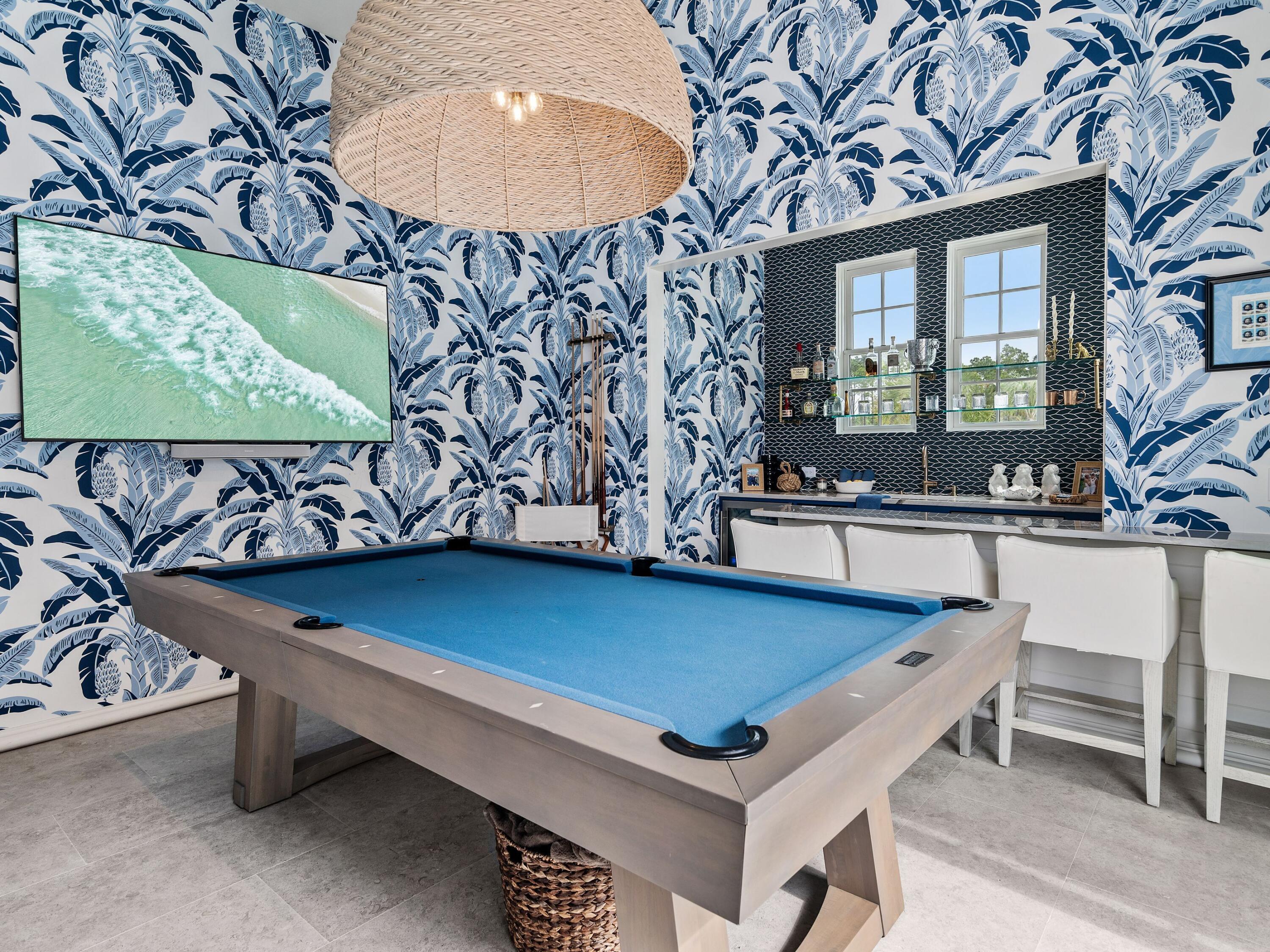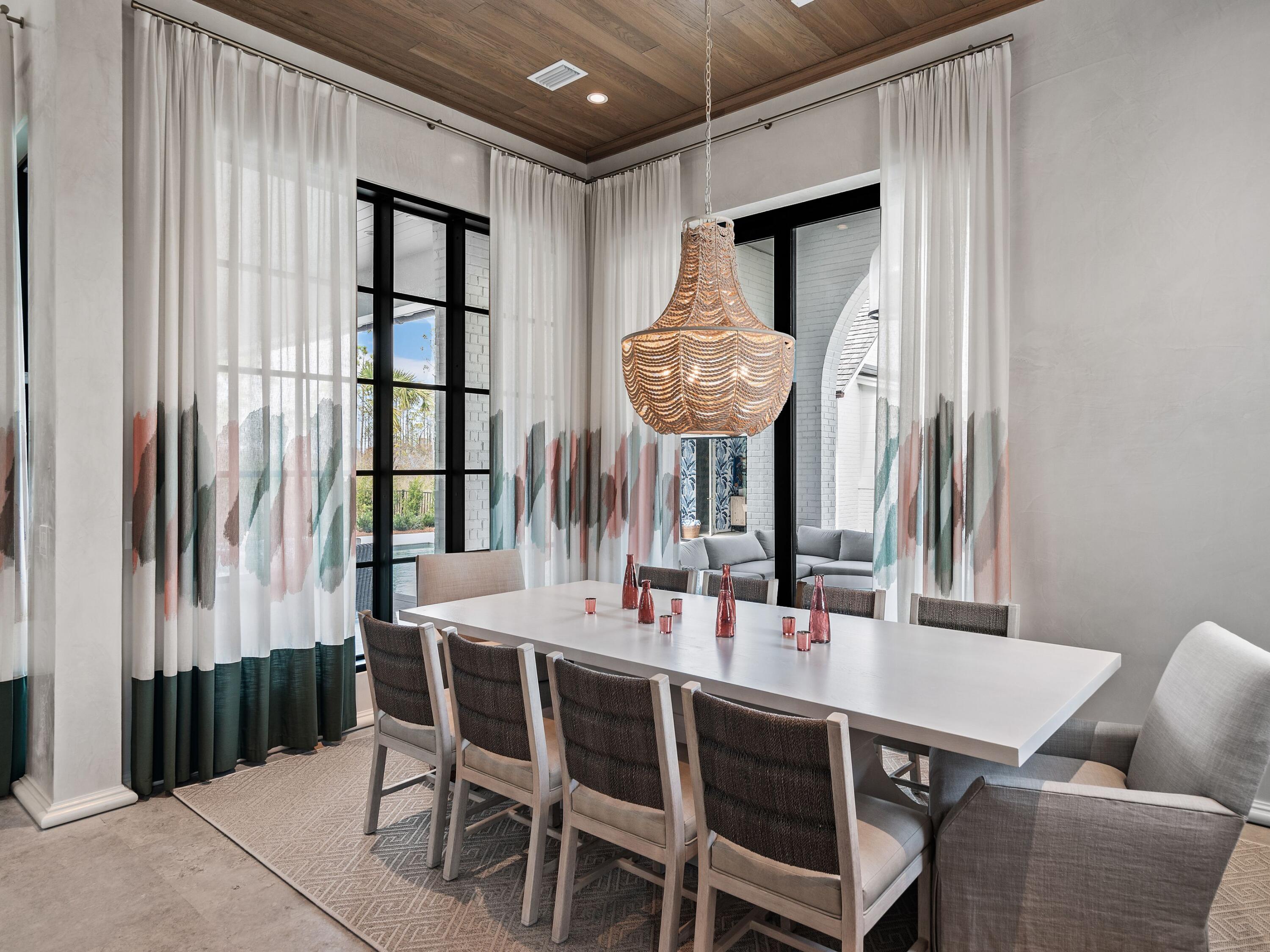 Thoughtfully designed by Greg Jazayeri, expertly built by Regal Stephens, and exquisitely finished and furnished by Tracery Interiors, this four-bedroom, five-and-a-half-bath custom home in Watersound Camp Creek embodies craftsmanship at its highest level. From the moment you enter, every detail reflects artistry and intention -- from the coral stone floors that flow seamlessly indoors and out to the natural marble and quartzite countertops and handcrafted Grimes cabinetry.The primary suite is located on the main level, creating an easy rhythm between private retreat and open gathering space. Expansive sliders blur the line between the living room and the outdoor entertaining area, where dual grills, a spa, and a cabana with pool table set the tone for relaxed sophistication. Distinctive architectural features include all-brick construction with custom Hardie accents, a wood shingle roof, eight Bevolo gas lanterns, and custom steel windows and doors that flood the home with natural light.