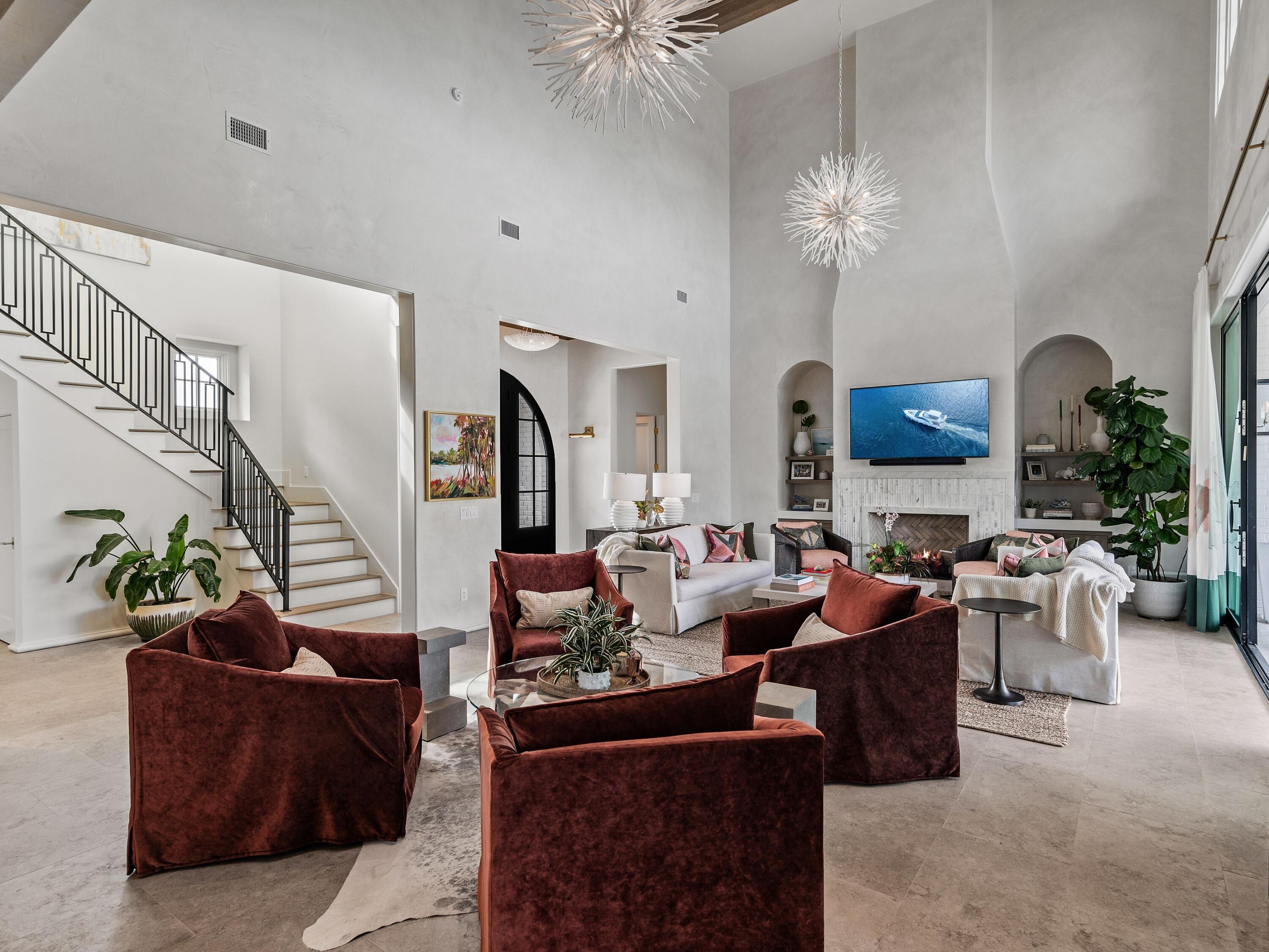 Designed for effortless entertaining, the kitchen offers two Sub-Zero refrigerators, three dishwashers, two ice makers, and a wine and beverage center. Nearly $500,000 in furnishings, electronics, and custom window treatments are included, creating a turnkey experience that is as luxurious as it is livable.