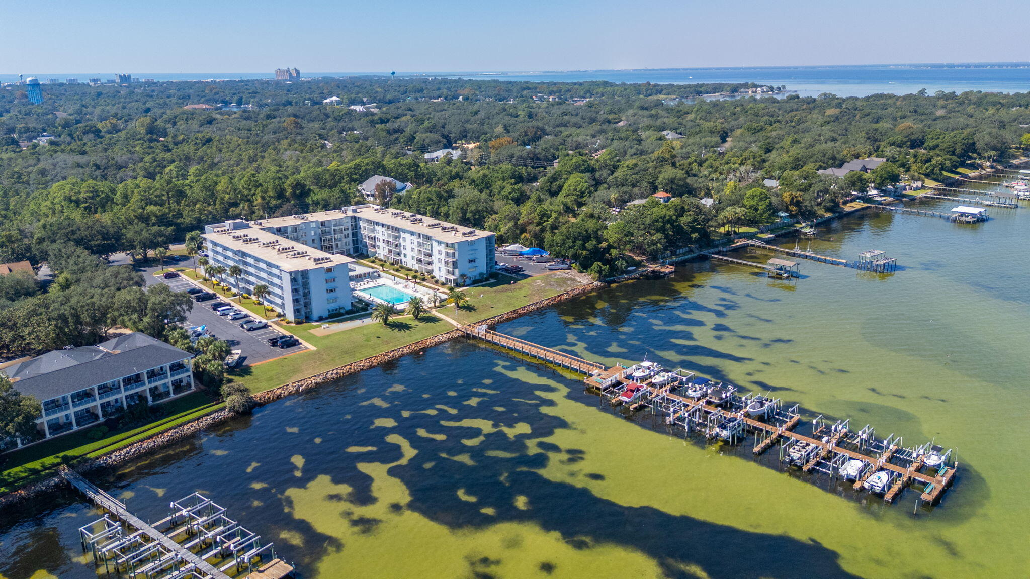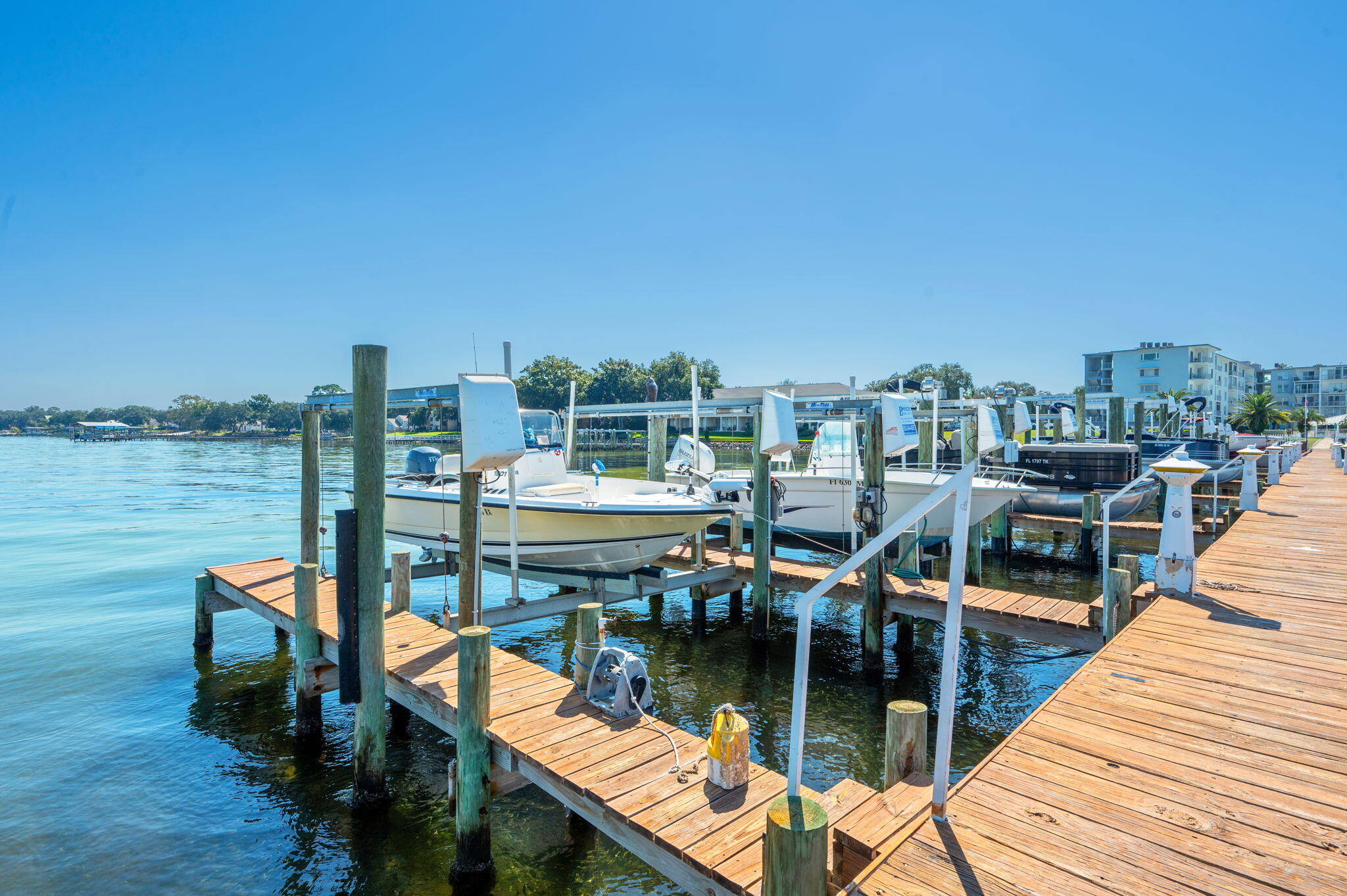 BACK ON THE MARKET NO FAULT OF THE SELLER-With your own private boat slip just steps away, this fully remodeled 2-bedroom, 2-bath condo on the beautiful Choctawhatchee Bay lets you experience waterfront living at its finest. Just steps from your door, enjoy access to a large clubhouse and a bayfront pool, perfect for relaxing or entertaining. The dock offers even more with a fishing bench, picnic areas, and so much more to enhance your coastal lifestyle. Inside, every detail has been thoughtfully updated, including a modern kitchen with elegant white cabinetry, quartz countertops, and built-in appliances that are only three years old. Both bathrooms feature new tile shower surrounds, stylish vanities, and updated fixtures. New flooring runs throughout, highlighted by an upgraded porcelain tile herringbone pattern in the kit and new recessed lighting adds a bright, welcoming feel. With an HVAC system less than four years old, this move-in-ready condo offers comfort, style, and unbeatable access to the bay.
