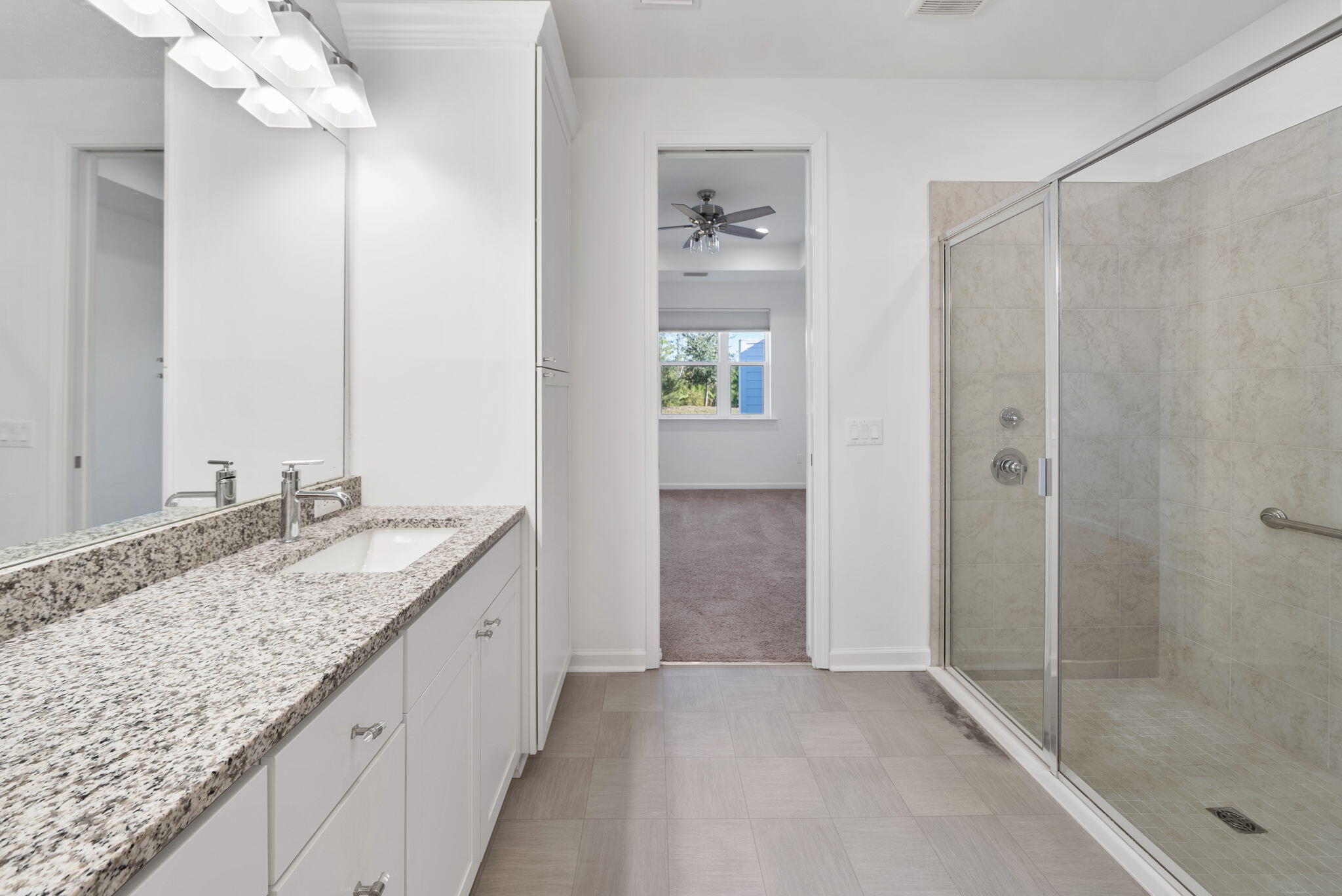 This home offers the following as upgrades: hurricane rated impact windows and doors, impact hurricane rated garage door, window coverings, granite countertops, tiled showers, glass shower enclosure in rear primary suite, undermount sinks, 8' doors, recessed lighting throughout and white shaker cabinetry.
