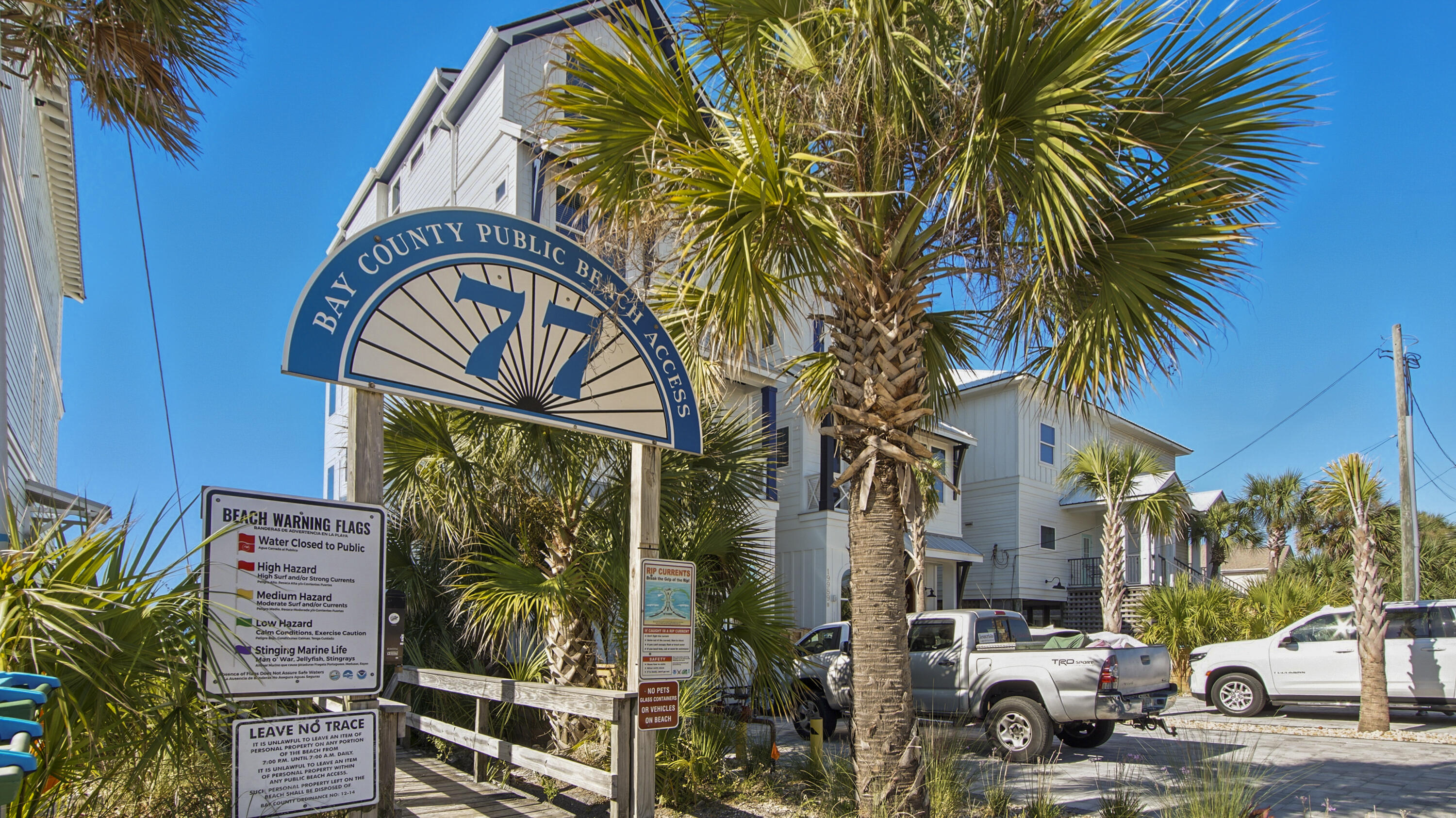 Heading west on Front Beach Road and turn right onto 12th Street. House is on the curve with a sign in the yard.