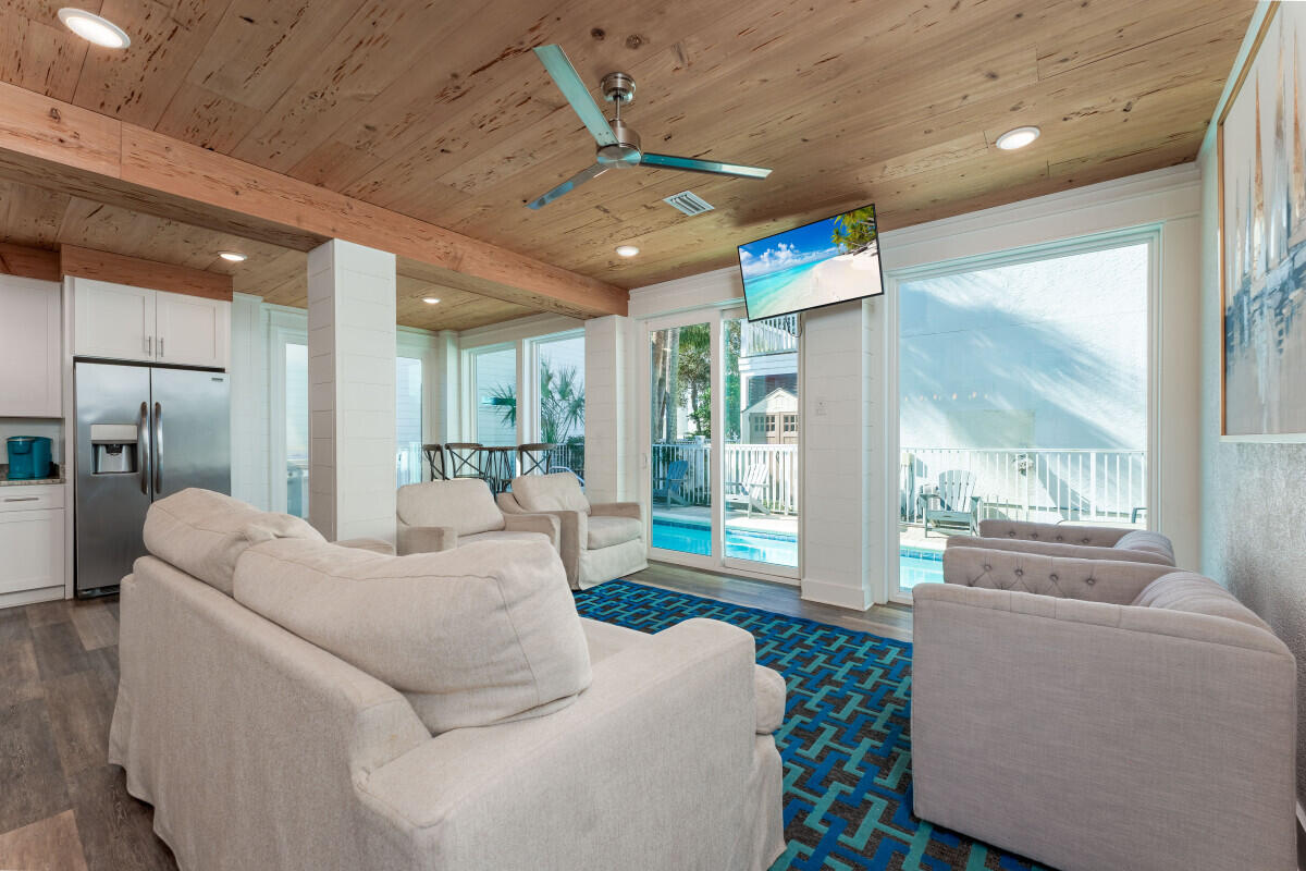 Welcome to ''Chasing Seagulls'', a 6 bedroom 5 bath. Located on the south side of 30A, at 3426 East 30A, No streets to cross to the beach, exceptional location near the Santa Clara Rd beach access allows for forever beach access. Whether your looking for your primary residence, secondary home, or active short term vacation rental, this home will please!3 Story construction, with heated pool, multiple decks on both the east and south sides of the home. The first level features a large multi use/bedroom, which currently features 2 king beds, and a queen bunk bed. Additional king bedroom on the first level. As well as full sized kitchen/dining/living room that leads out poolside.The second story features another full sized kitchen, dining, and living area. An additional king bedroom as well as laundry area complete this level.