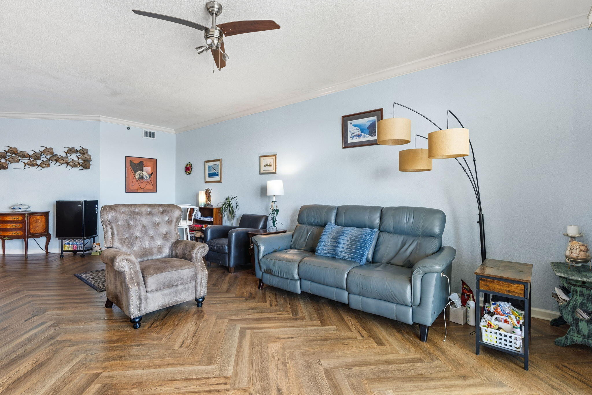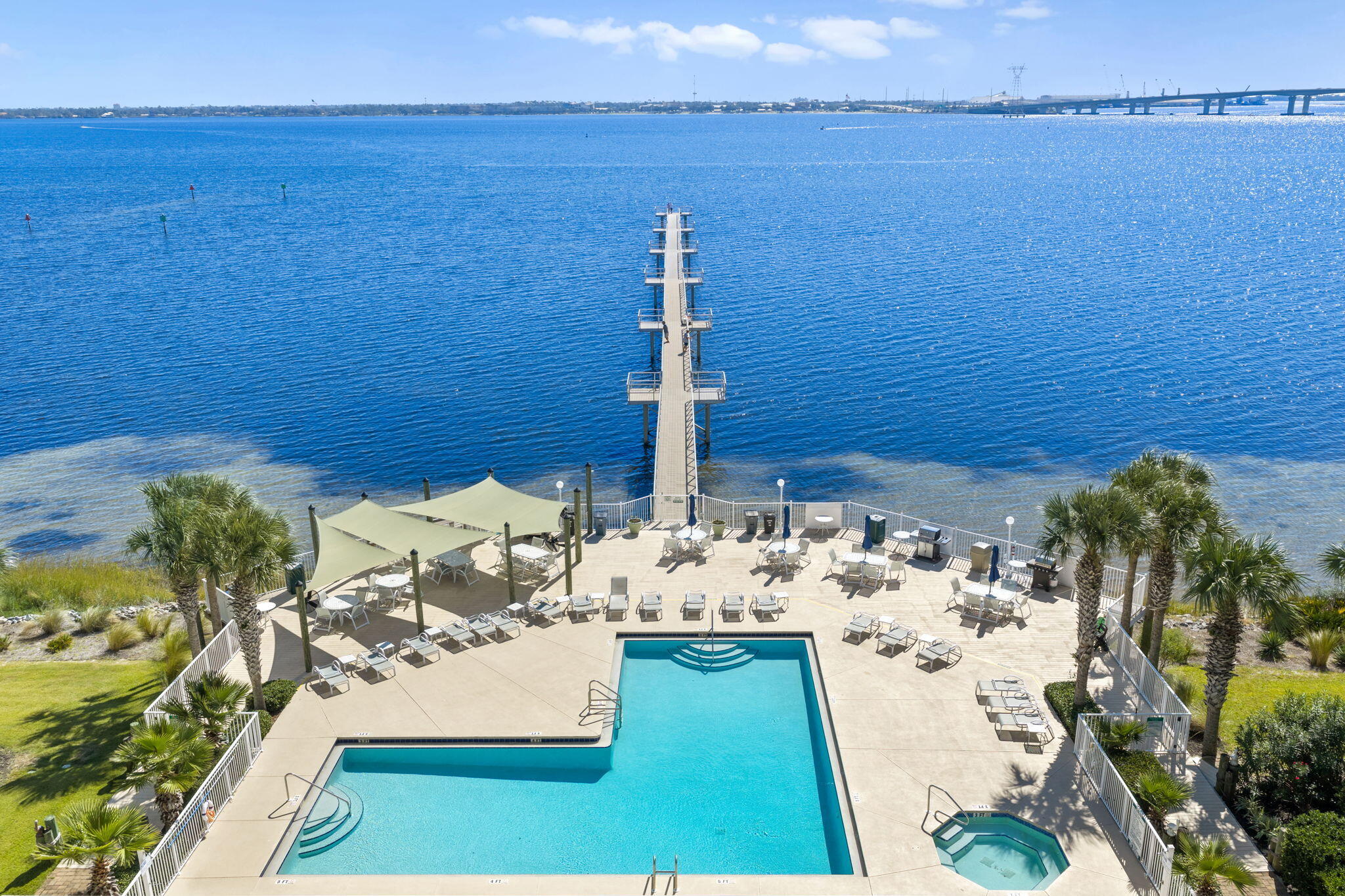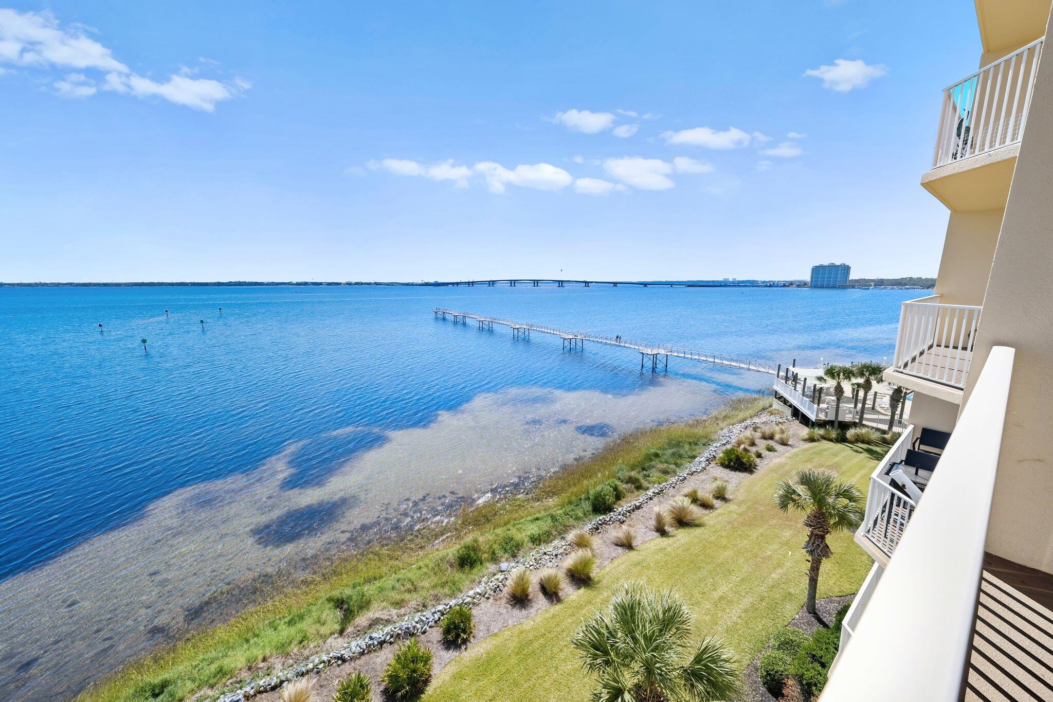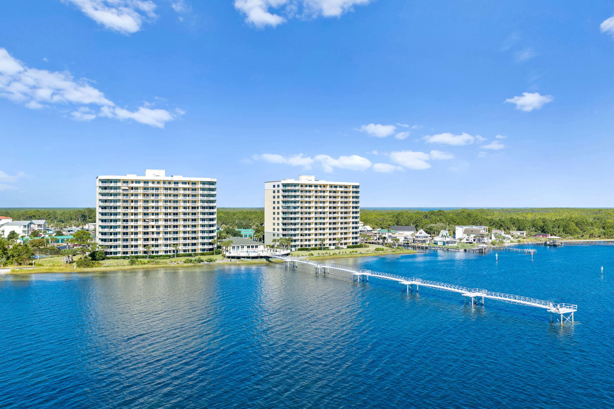 This beautifully furnished 5th-floor condo at Hibiscus by the Bay captures breathtaking views of St. Andrew Bay and the Hathaway Bridge. Positioned perfectly for sunrise, both the living room and primary suite face east and open to a spacious 200 sq. ft. balcony through brand-new hurricane-rated sliding glass doors--the ideal spot for morning coffee or evening relaxation. Inside, the condo blends comfort and style with crown molding, and updated flooring throughout. The kitchen features granite countertops, stainless steel appliances (2021), and abundant cabinetry. The primary suite overlooks the bay and offers a fully remodeled bath complete with a step-in shower, jetted tub, double vanity, and walk-in closet. Additional recent upgrades include a new HVAC (2023), hot water heater (2023), and washer/dryer (2024) for worry-free ownership. Set within a gated 10-acre peninsula with a private marina, Hibiscus by the Bay delivers resort-style living without the short-term rental turnover. Amenities include two pools, tennis and basketball courts, dog-walking areas, a fire pit, 500-ft fishing pier, and a clubhouse. Nearly $7 million in community improvements and reduced HOA fees have solidified Hibiscus as one of Panama City Beach's most desirable bayfront addresses. A peaceful retreat just minutes from the Gulf of America.