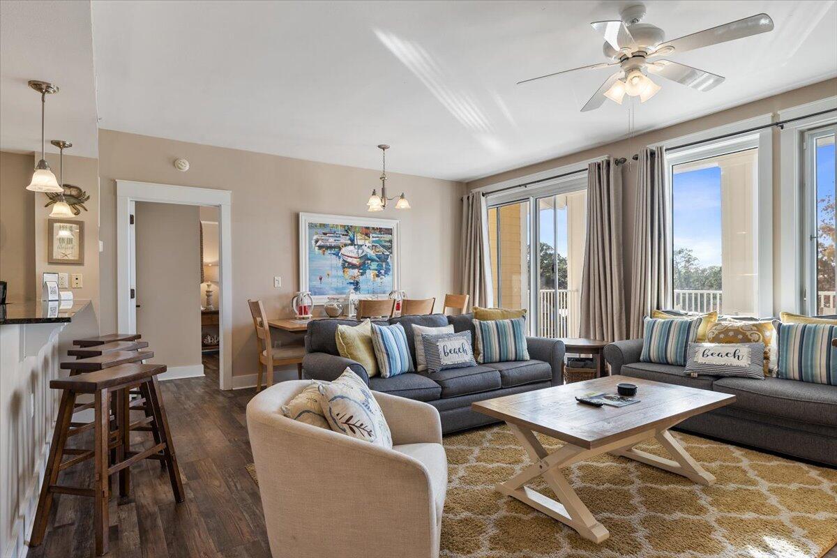 Prime Village, Stage and Bay Harbor View! Stunning Top Floor Corner Unit 3-Bedroom / 3 Bath Lockout Condo with huge deck in Observation Point South. This is the most perfect spot to relax after enjoying our private beach, playing golf on our 3 beautiful championship golf courses, or whatever your heart's desire. Be right up above and steps away from where all the night life is. Yet, have peace and quiet if you prefer. This unit has probably the best location to view the fireworks show. If you don't want to drive everywhere for entertainment, breakfast, lunch, dinner, fun shopping, and great outdoor activities, this is the spot to be! Just take a walk downstairs! And the grounds are maintained like the gardens at DisneyWorld.