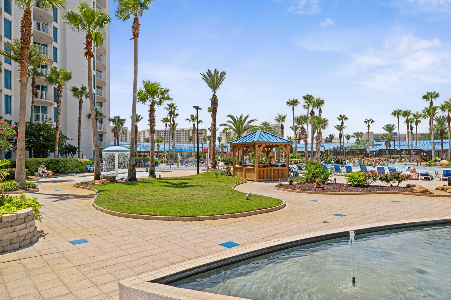 Residents and guests at The Palms of Destin enjoy a true resort experience with access to and amenities including the following: a spectacular 11,000 sq ft lagoon-style pool surrounded by lush tropical landscaping, heated pool, children's splash zone, and oversized hot tub, fitness center, tennis, basketball, and pickleball courts (indoor and outdoor), on-site full restaurant, coffee bar, tiki bar, and grill area, full-service spa and event spaces for private gatherings, EV charging stations conveniently located on-site.
