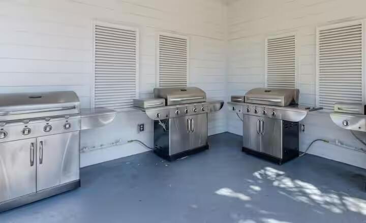 >A 4,300 sq. ft. lagoon-style zero-entry pool surrounded by lush tropical landscaping(> A heated beachfront pool with tiki bar and grill(> A state-of-the-art fitness center and on-site theater room(> 400 feet of private deeded beach access with seasonal chair service