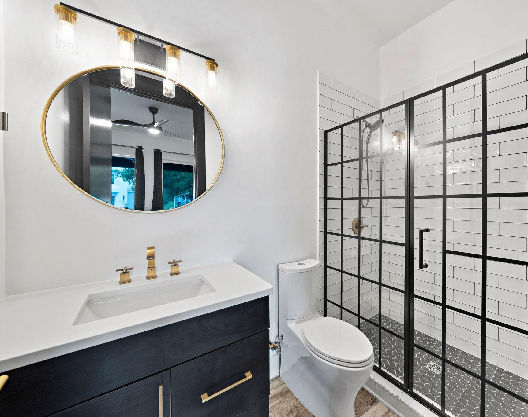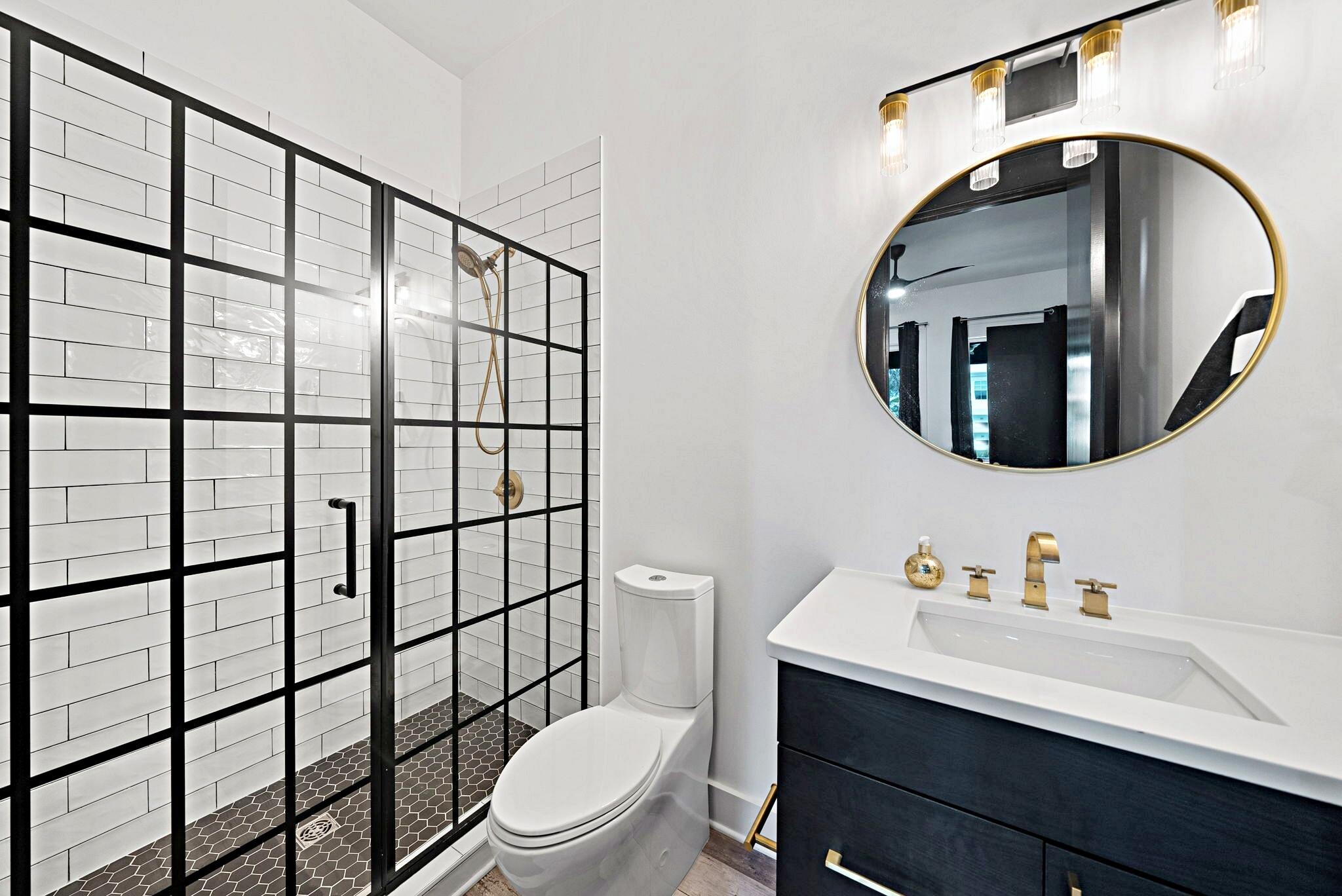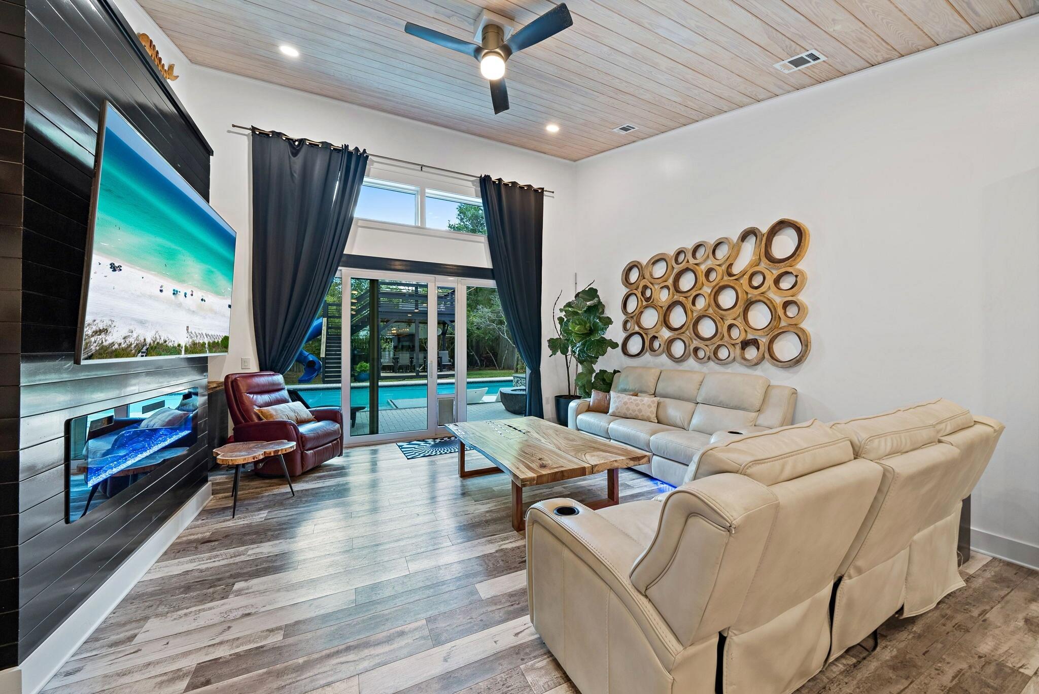 Located in the highly sought-after Seagrove Beach community with no HOA, 94 S Gulf Drive is an impeccably designed, custom-built modern masterpiece offering refined single-level living and total privacy. The chef's dream kitchen features a 12-foot island, Italian-made range & oven, butler's pantry, quartz countertops, and custom cabinetry. Light fills the open, airy floor plan with soaring ceilings and designer finishes. The primary suite delivers a spa experience with a 7-foot soaking tub and aromatherapy steam shower featuring eight shower heads and a rain feature. Every bath is fully tiled and wheelchair accessible. Outdoor living includes a screened-in porch, resort-style pool with 10-person hot tub, and gas fire pit, all within a completely private backyard sanctuary.