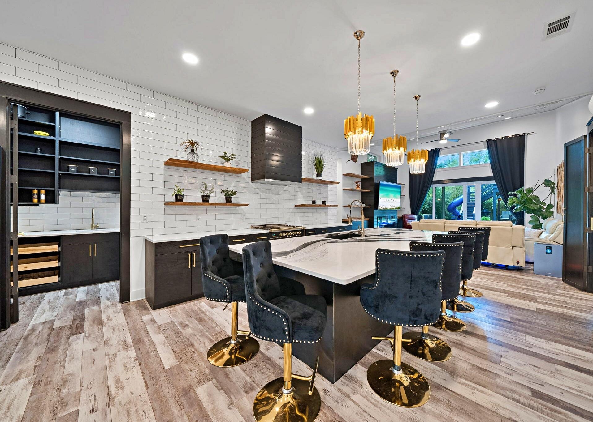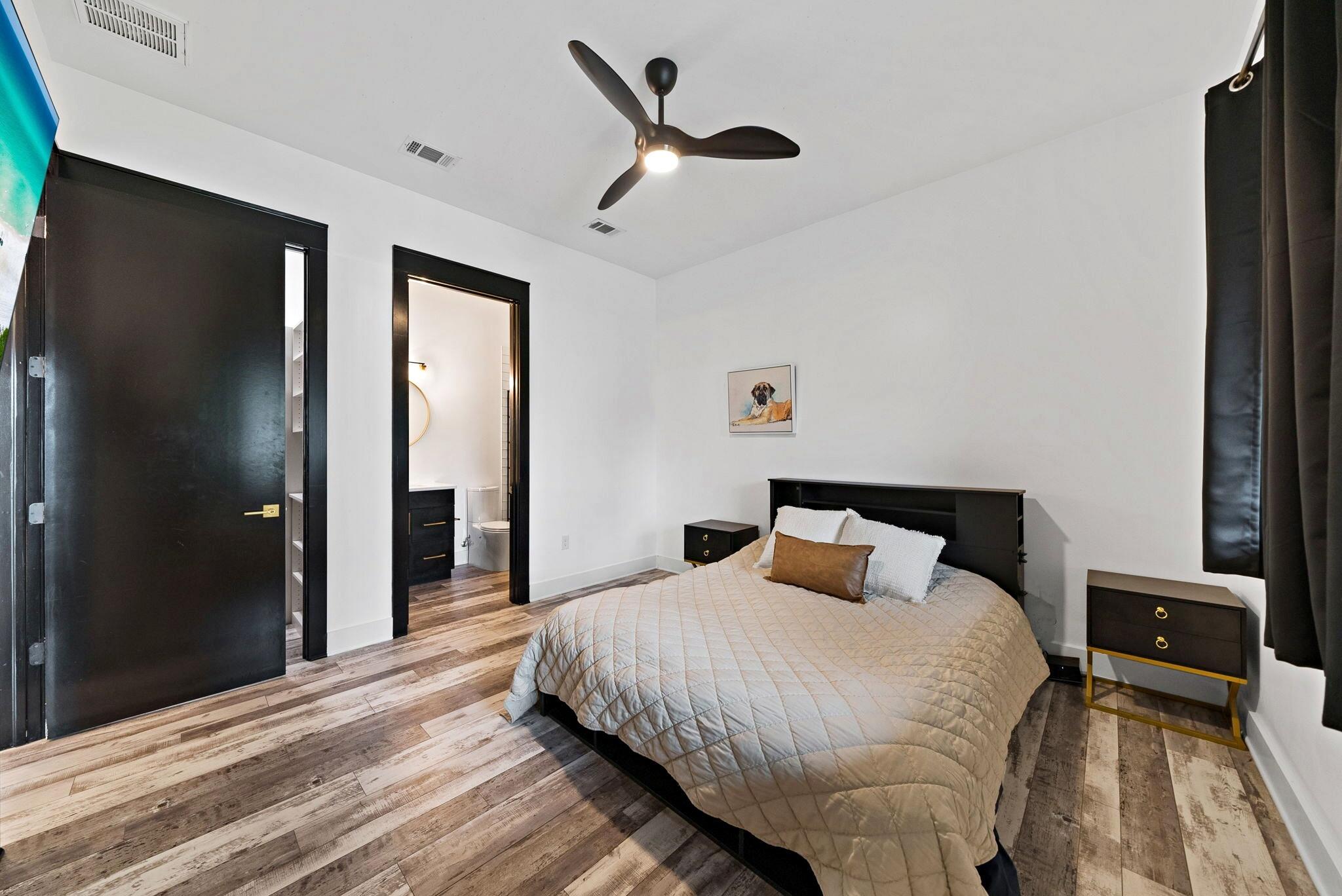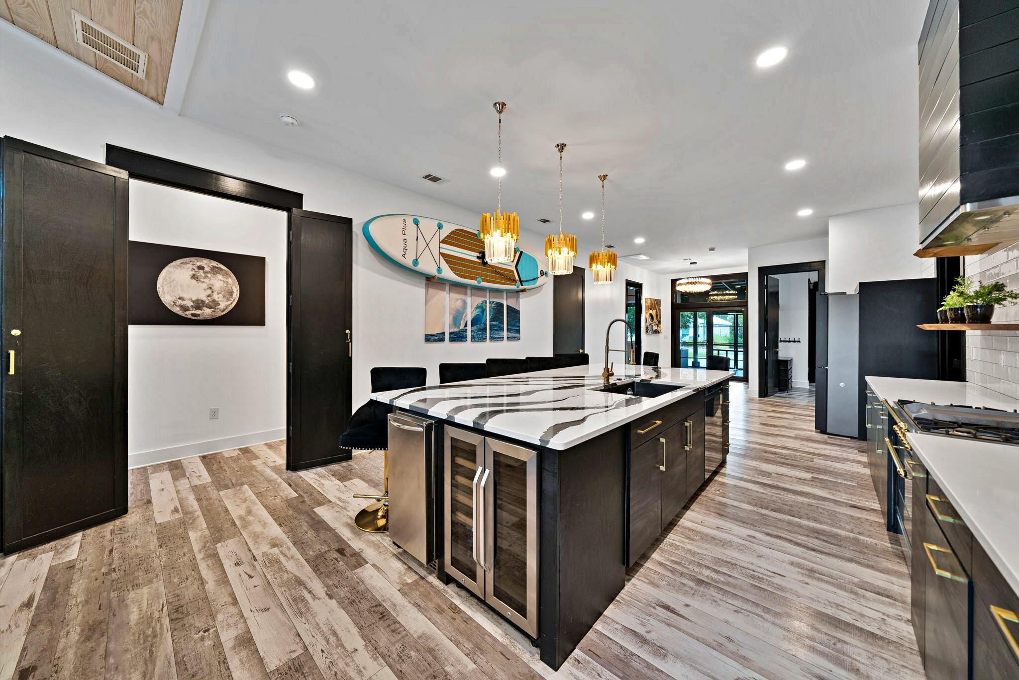 Located in the highly sought-after Seagrove Beach community with no HOA, 94 S Gulf Drive is an impeccably designed, custom-built modern masterpiece offering refined single-level living and total privacy. The chef's dream kitchen features a 12-foot island, Italian-made range & oven, butler's pantry, quartz countertops, and custom cabinetry. Light fills the open, airy floor plan with soaring ceilings and designer finishes. The primary suite delivers a spa experience with a 7-foot soaking tub and aromatherapy steam shower featuring eight shower heads and a rain feature. Every bath is fully tiled and wheelchair accessible. Outdoor living includes a screened-in porch, resort-style pool with 10-person hot tub, and gas fire pit, all within a completely private backyard sanctuary.